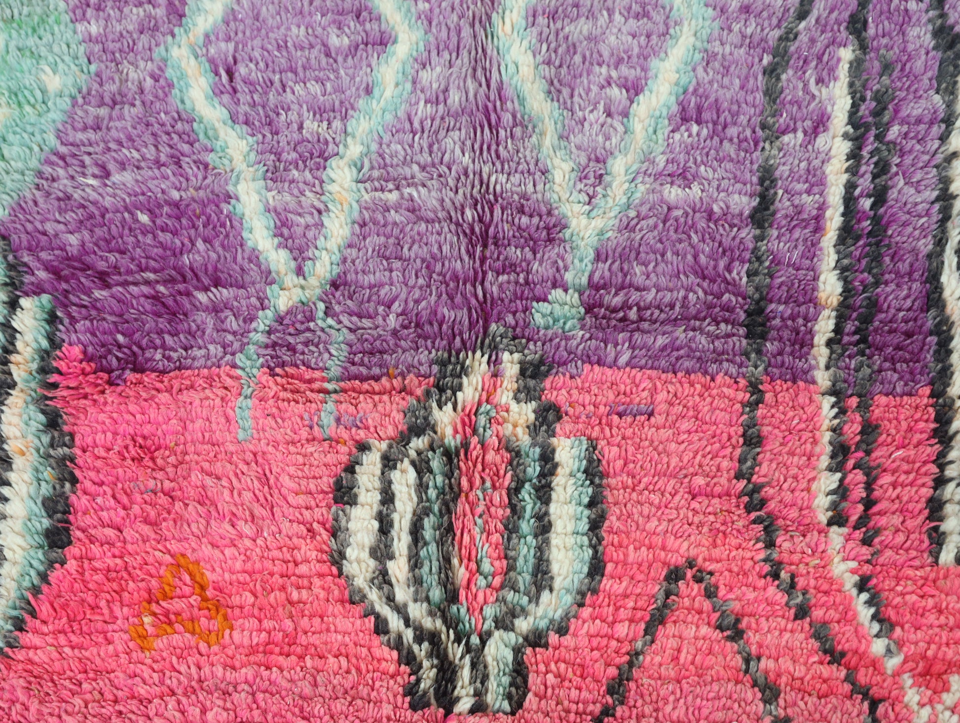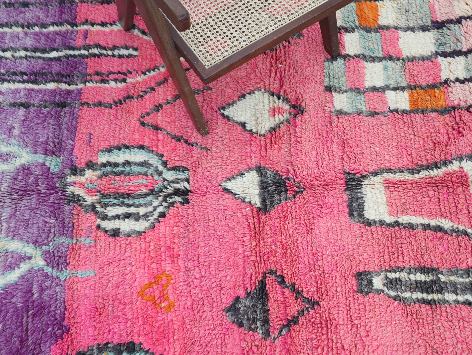 A singular moroccan rug, meticulously woven in the small city of Boujaad in Morocco's Chaouia-Ouardigha region. Size: 5'4" x 8'9" (165 cm x 270 cm).