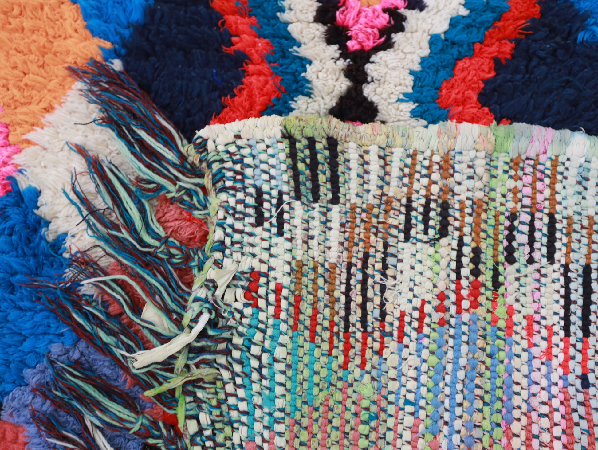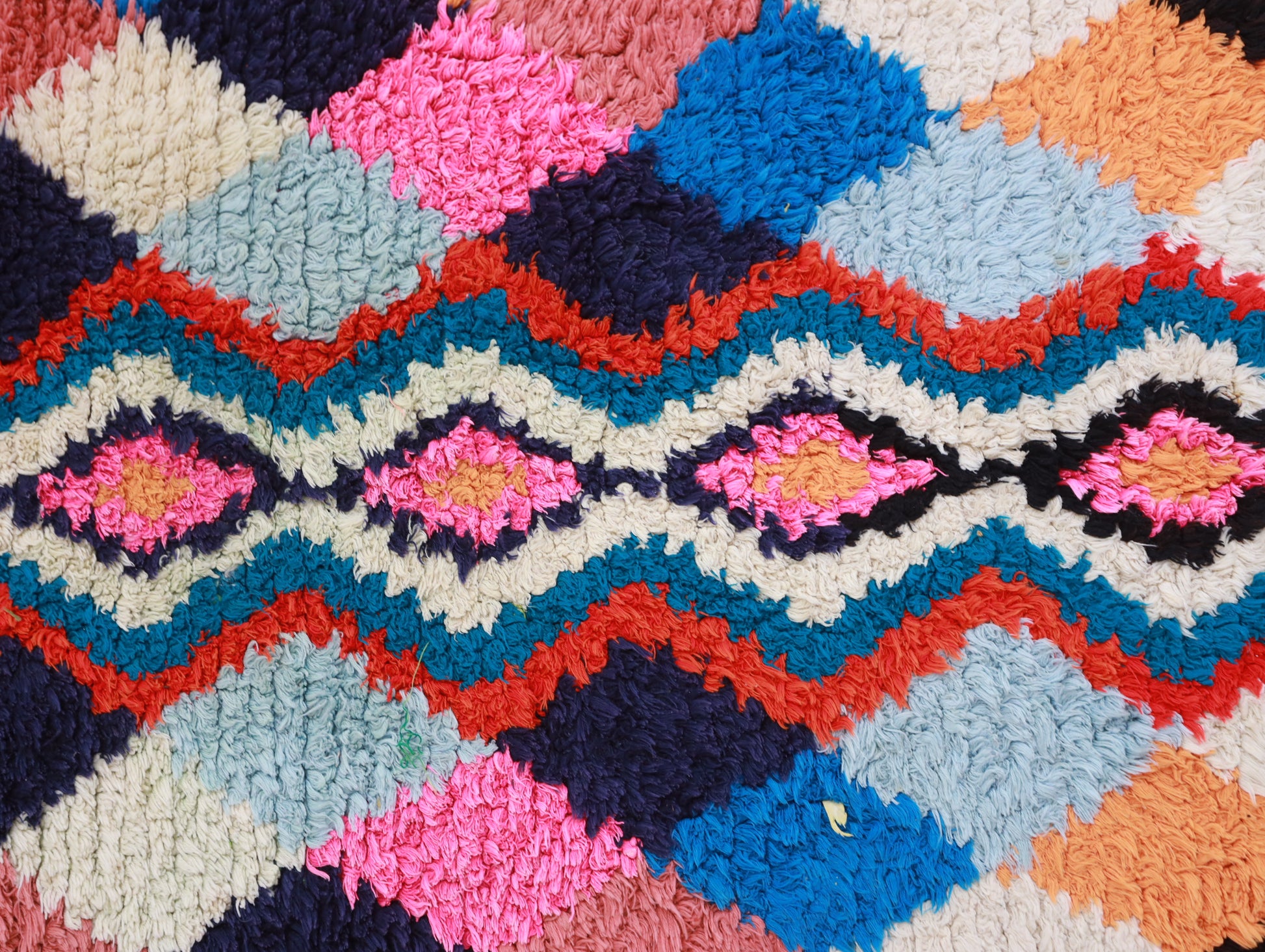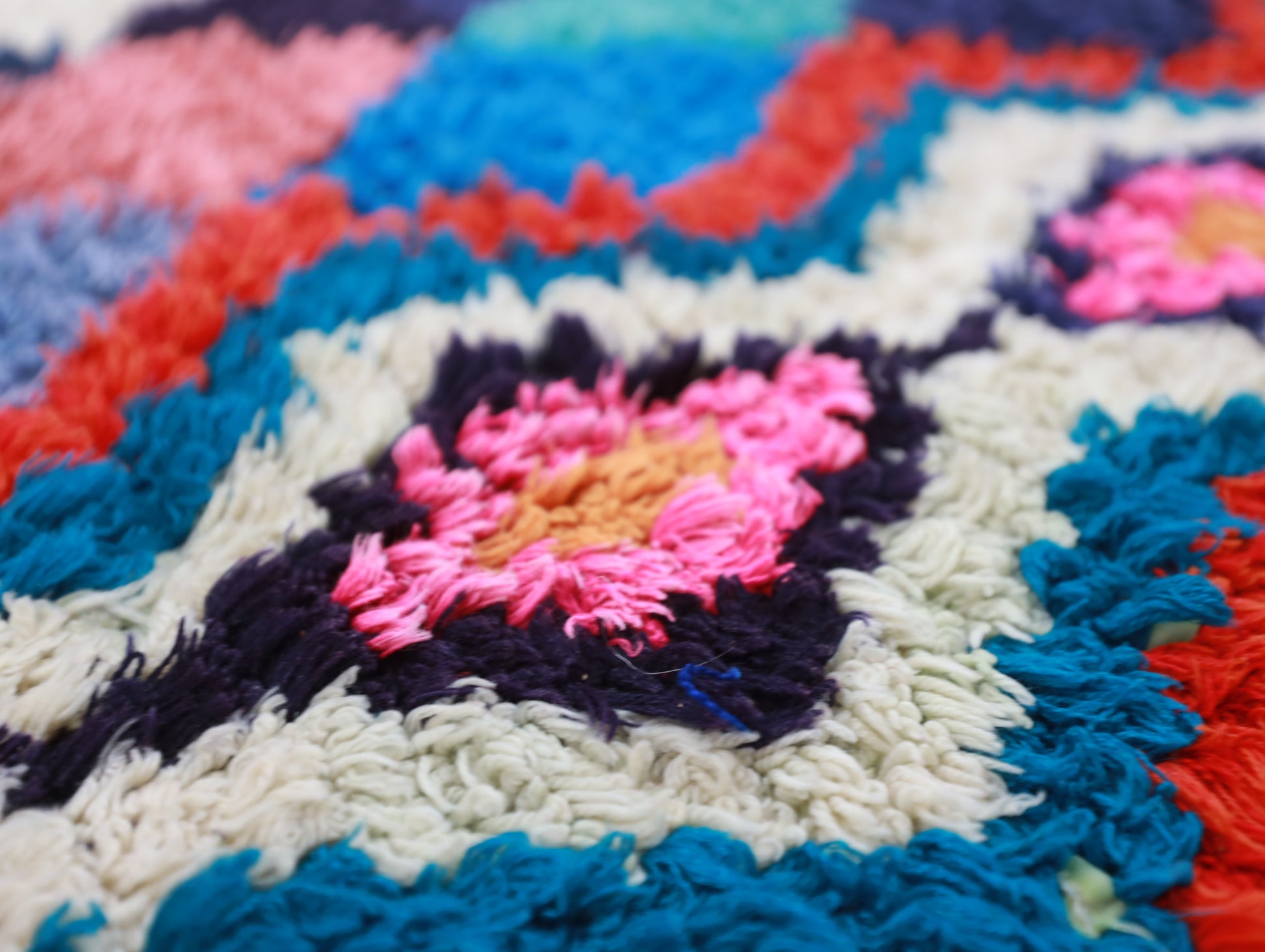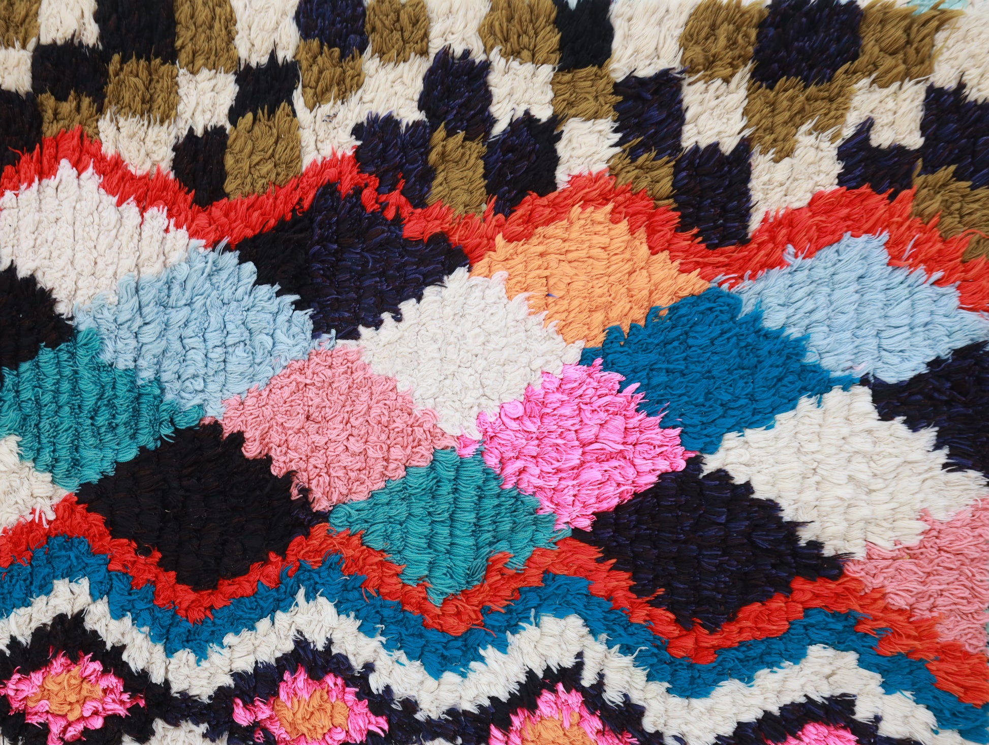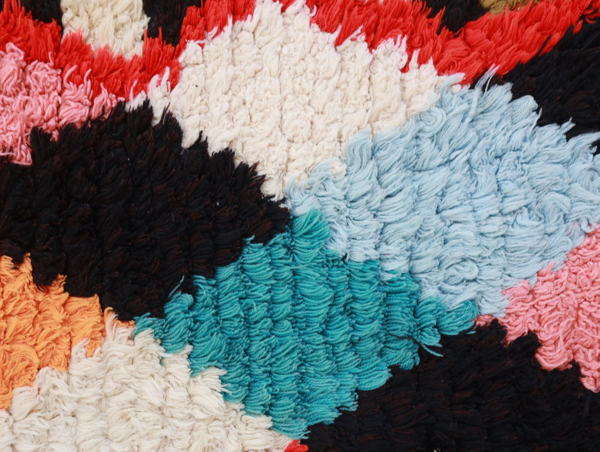 Sourced locally, Moroccan wool produces a dense, sturdy pile that feels soft and fluffy underfoot. While a touch of shedding is natural, it's a small price to pay for the cherished wild, tousled texture of the high pile—a comfort beloved for its durability, longevity, and the soft embrace it offers with every step.