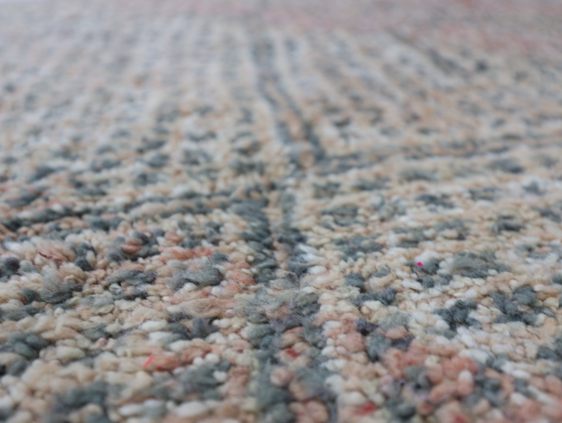 Locally sourced Moroccan wool produces a thick, strong pile with a soft feel underfoot. Having weathered time, this hand-processed wool exudes an untamed, nubby appearance, a testament to its journey through diverse environments.