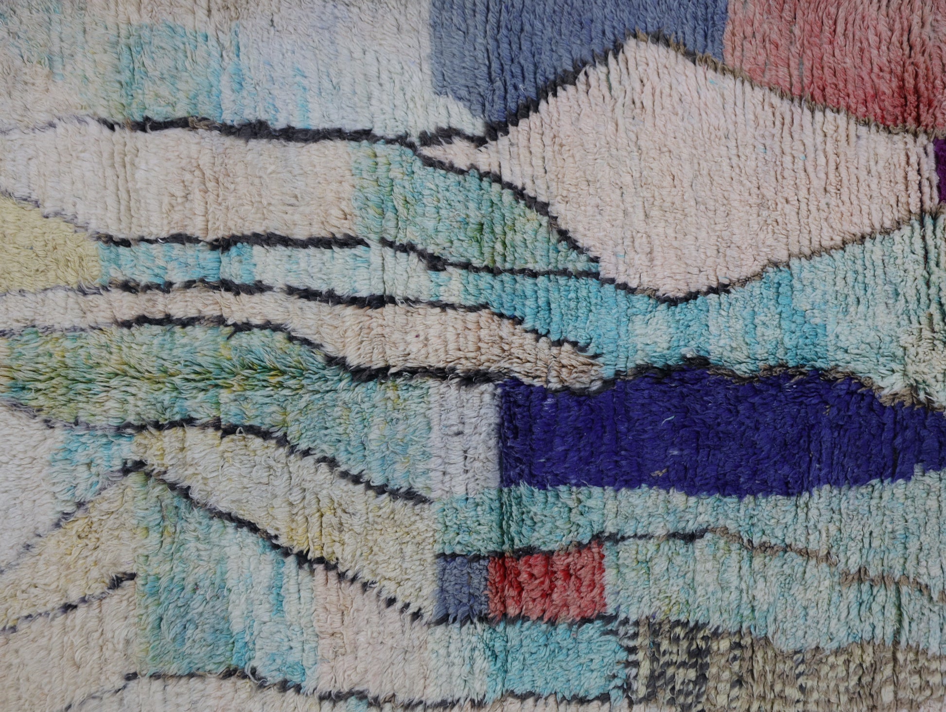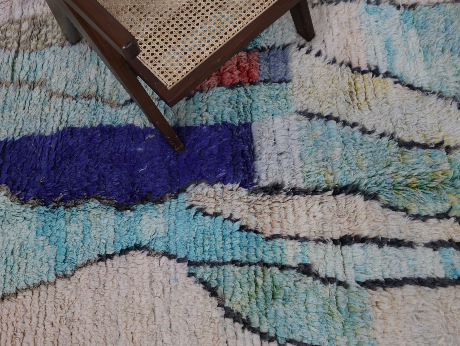A singular moroccan rug, meticulously woven in the small city of Boujaad in Morocco's Chaouia-Ouardigha region. Size: 5'0" x 8'9" (151 cm x 270 cm).