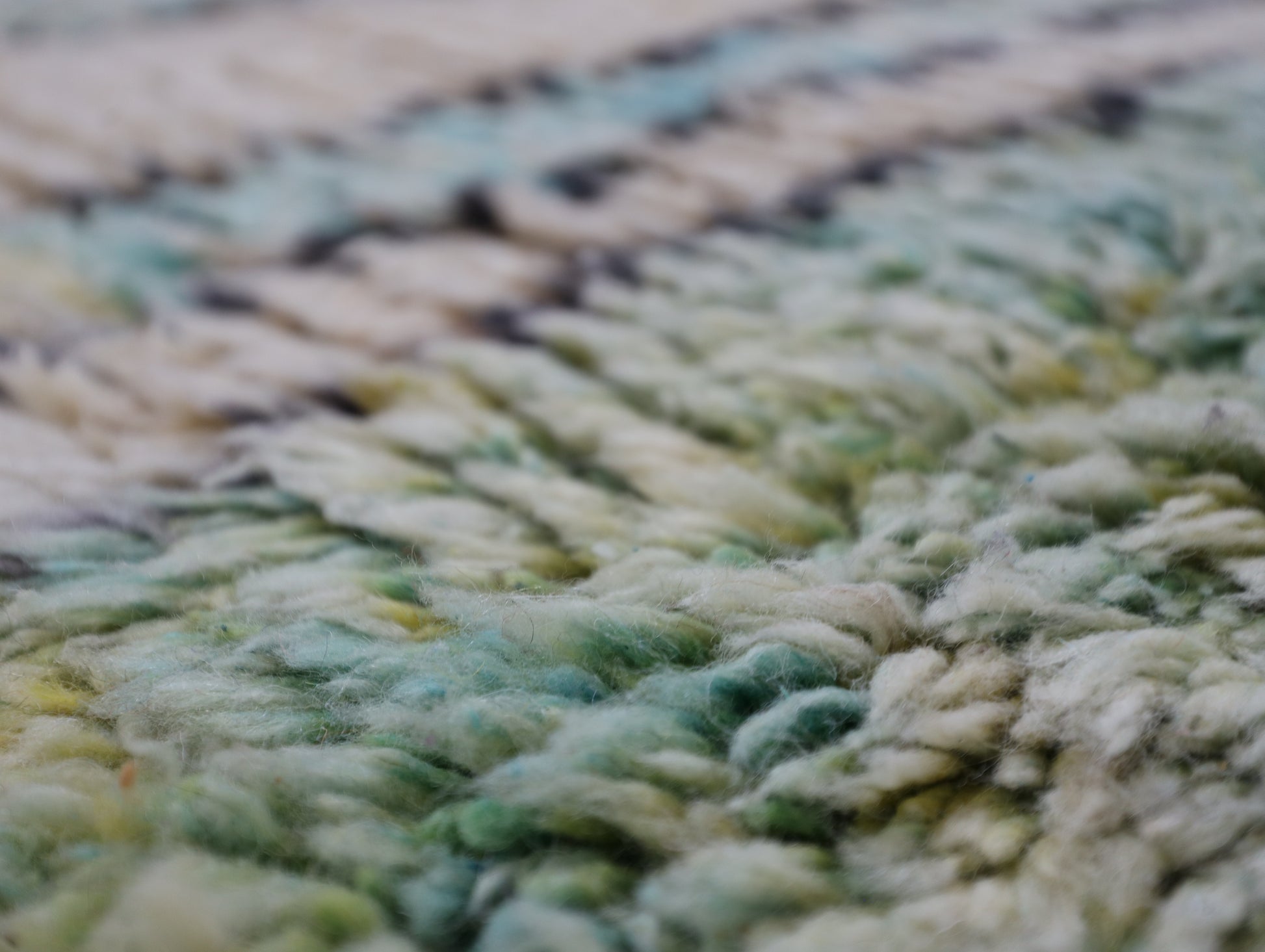 Wool, a sacred material for the Amazigh (Berber) people, forms the cornerstone of Moroccan rug design. Durable, long-lasting, and soft underfoot, wool is both functional and comfortable. In this piece, the wool pile is expertly knotted onto a wool foundation, adding substance and allowing it to gracefully embrace the floor.