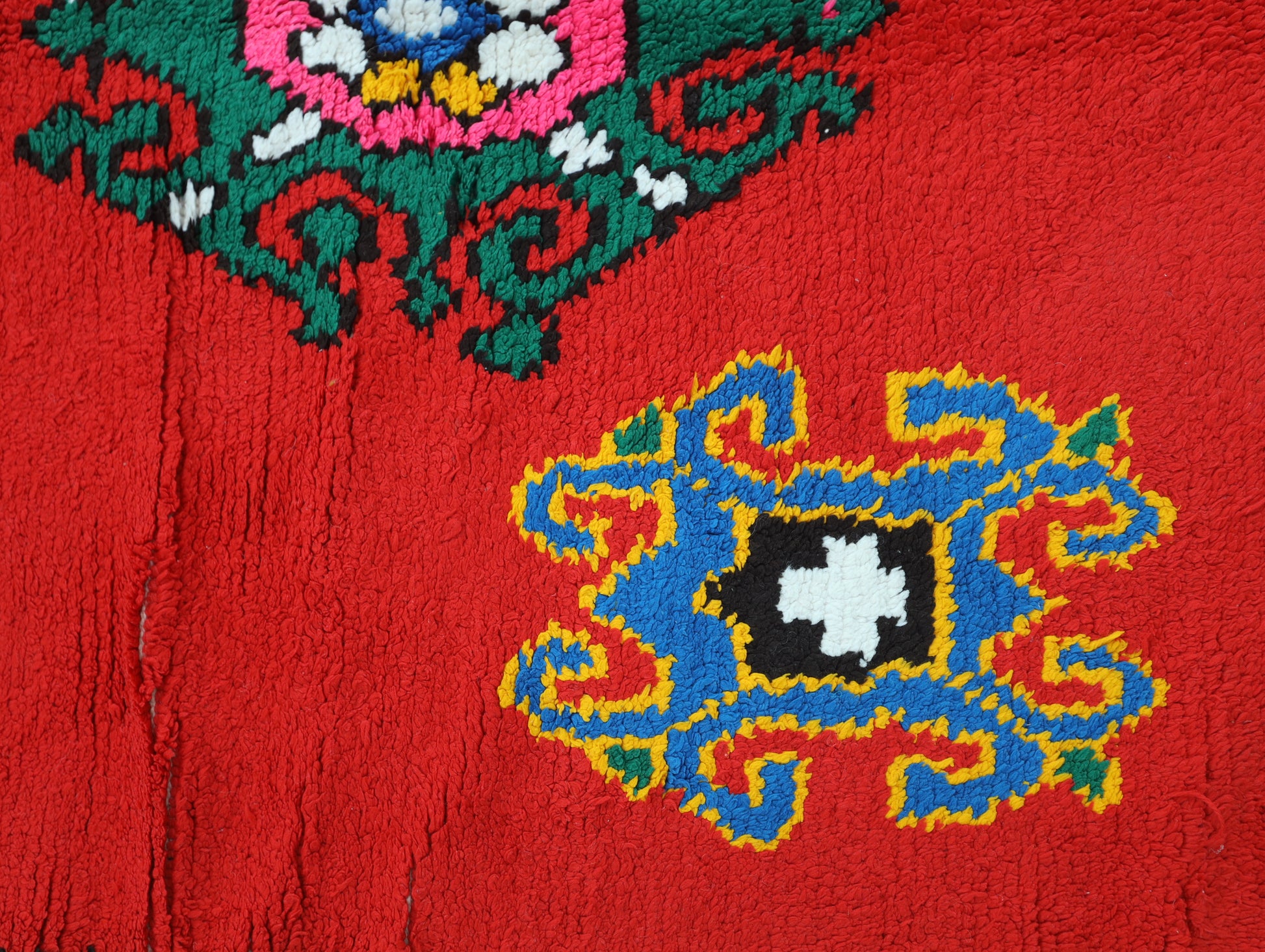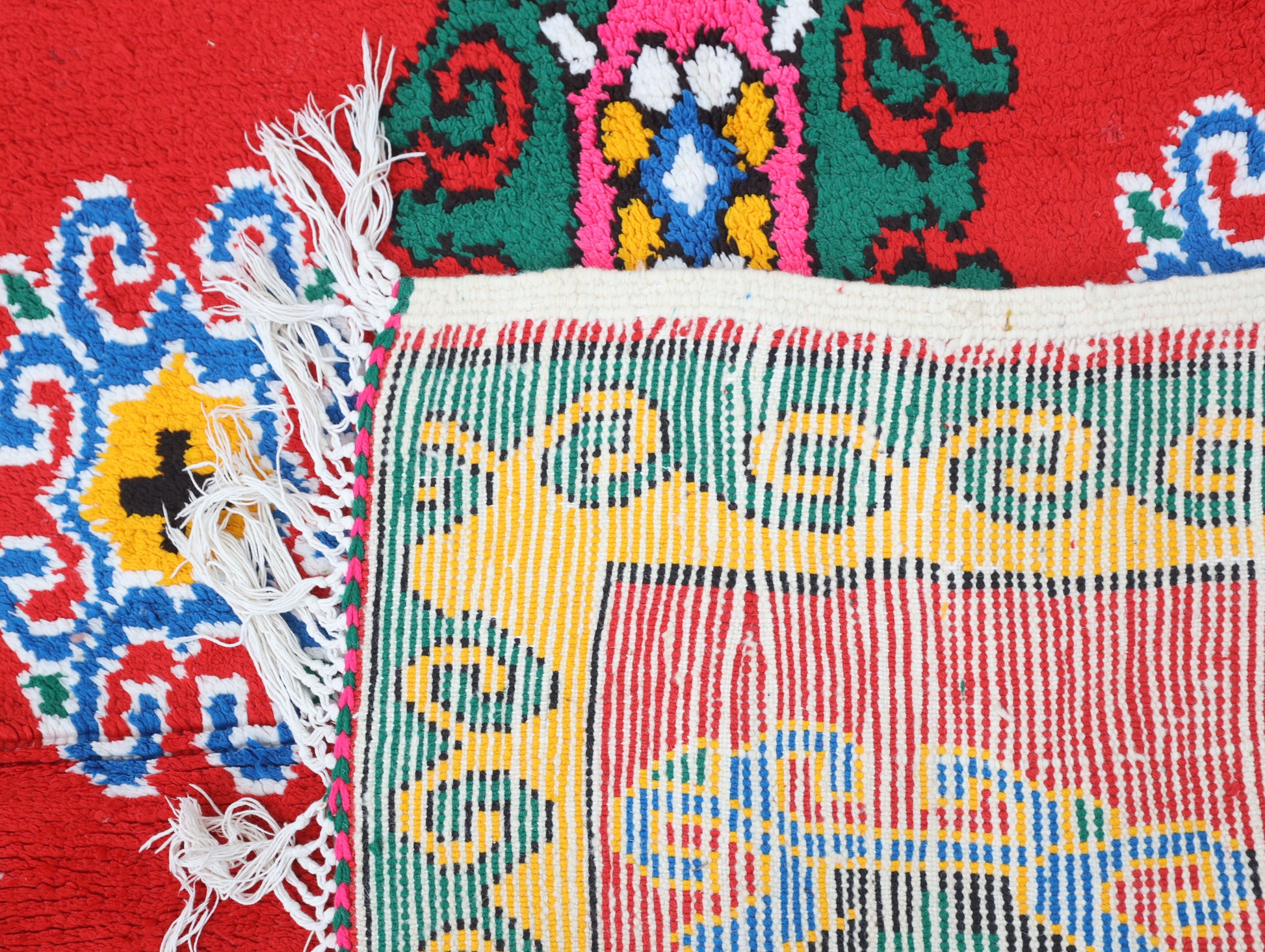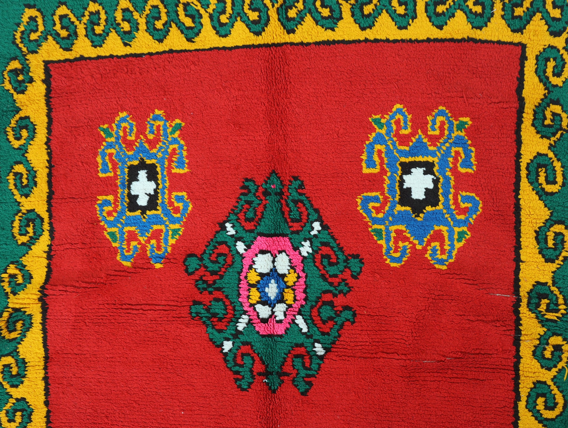 Azilal rugs boast abstract, painterly designs reminiscent of rugs from Ourika. What sets them apart is a vibrant color palette, achieved through the incorporation of cotton alongside wool..