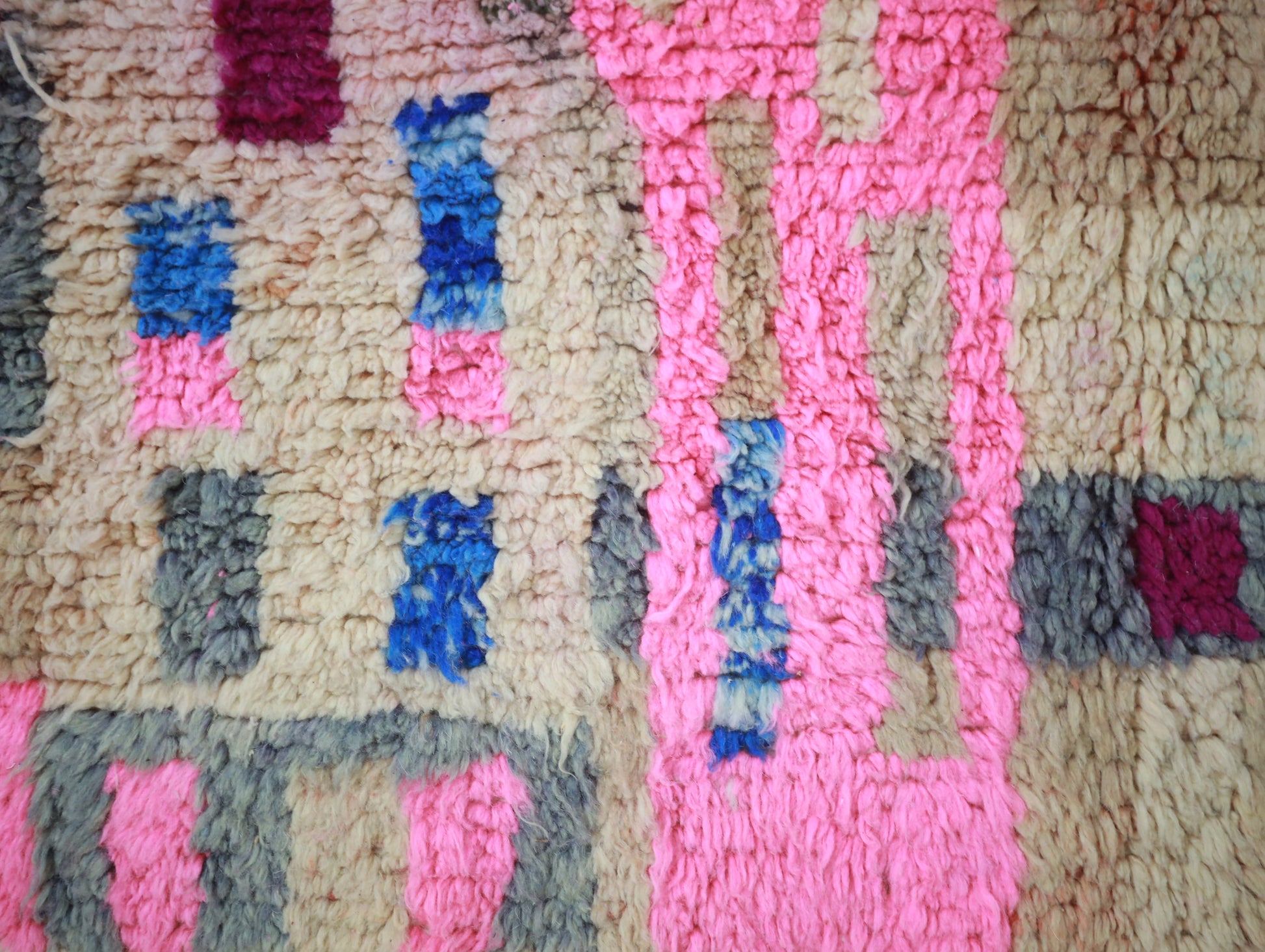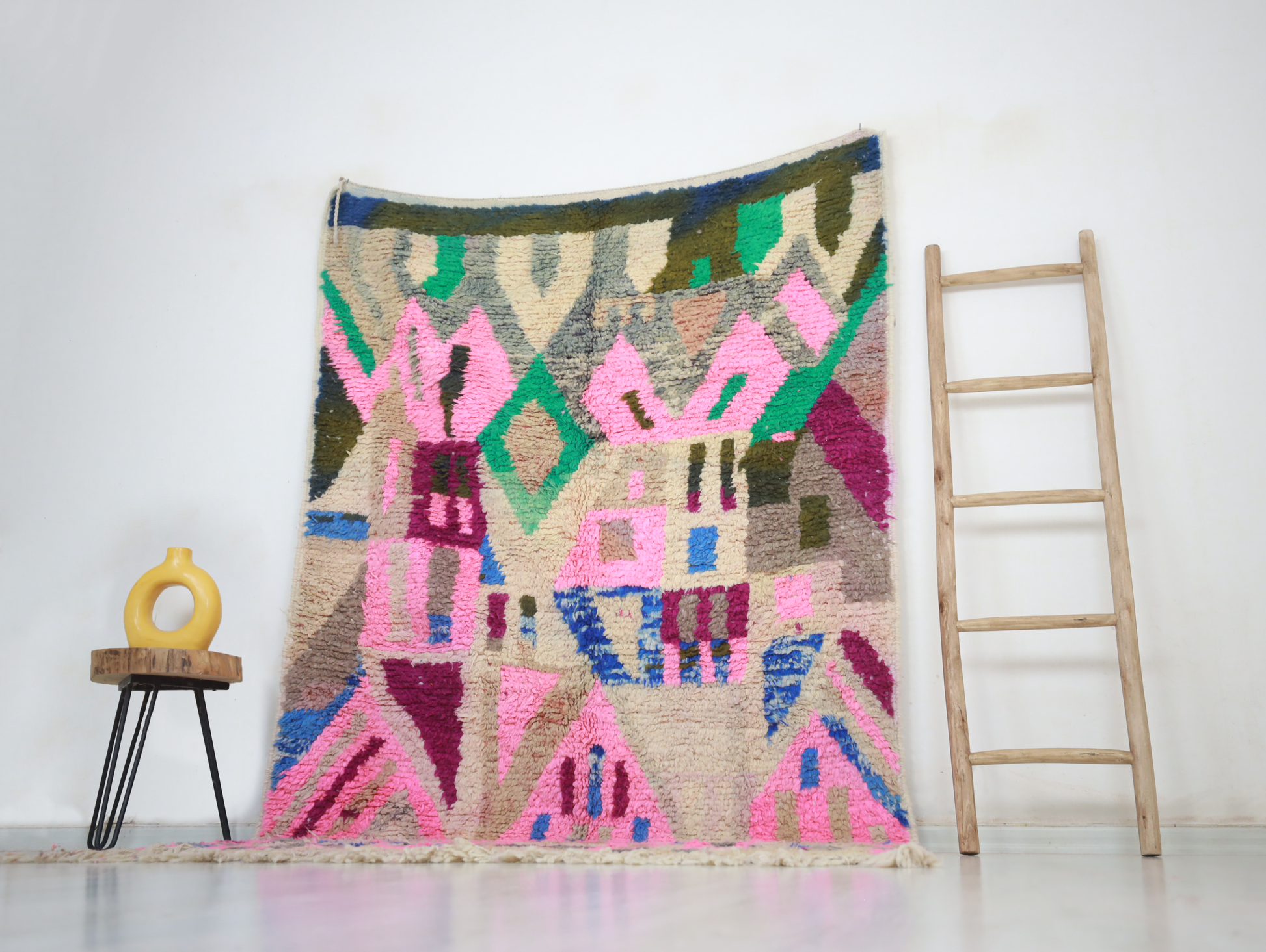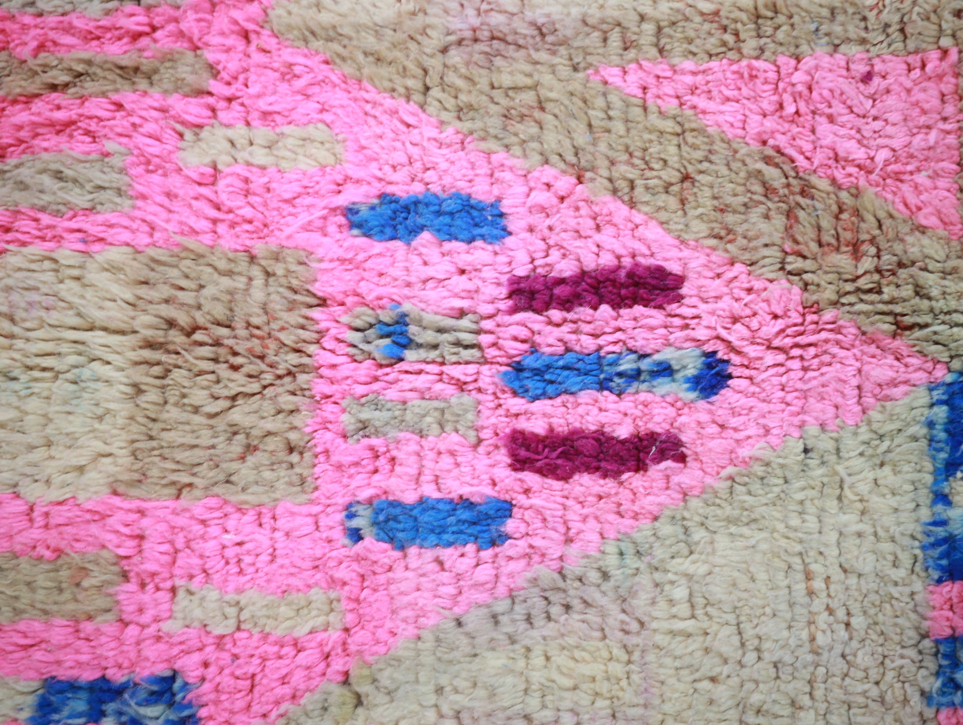 A singular moroccan rug, meticulously woven in the small city of Boujaad in Morocco's Chaouia-Ouardigha region. Size: 5'2" x 8'1" (157 cm x 246 cm).