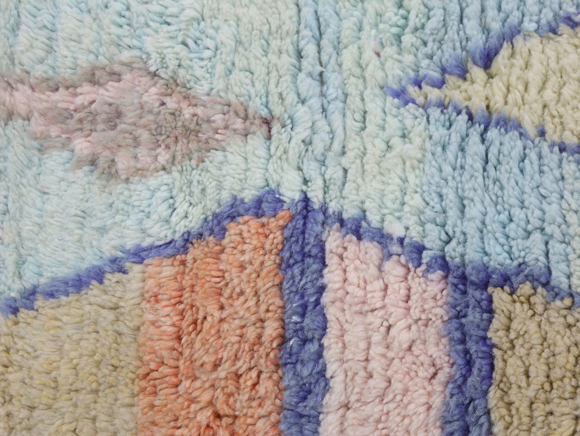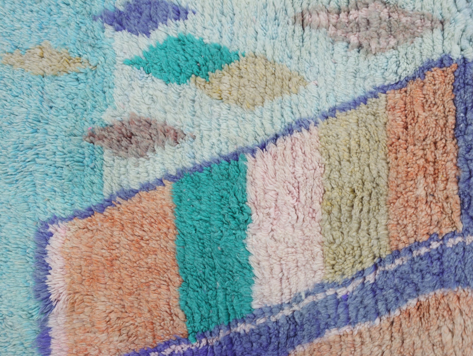 A singular moroccan rug, meticulously woven in the small city of Boujaad in Morocco's Chaouia-Ouardigha region.
