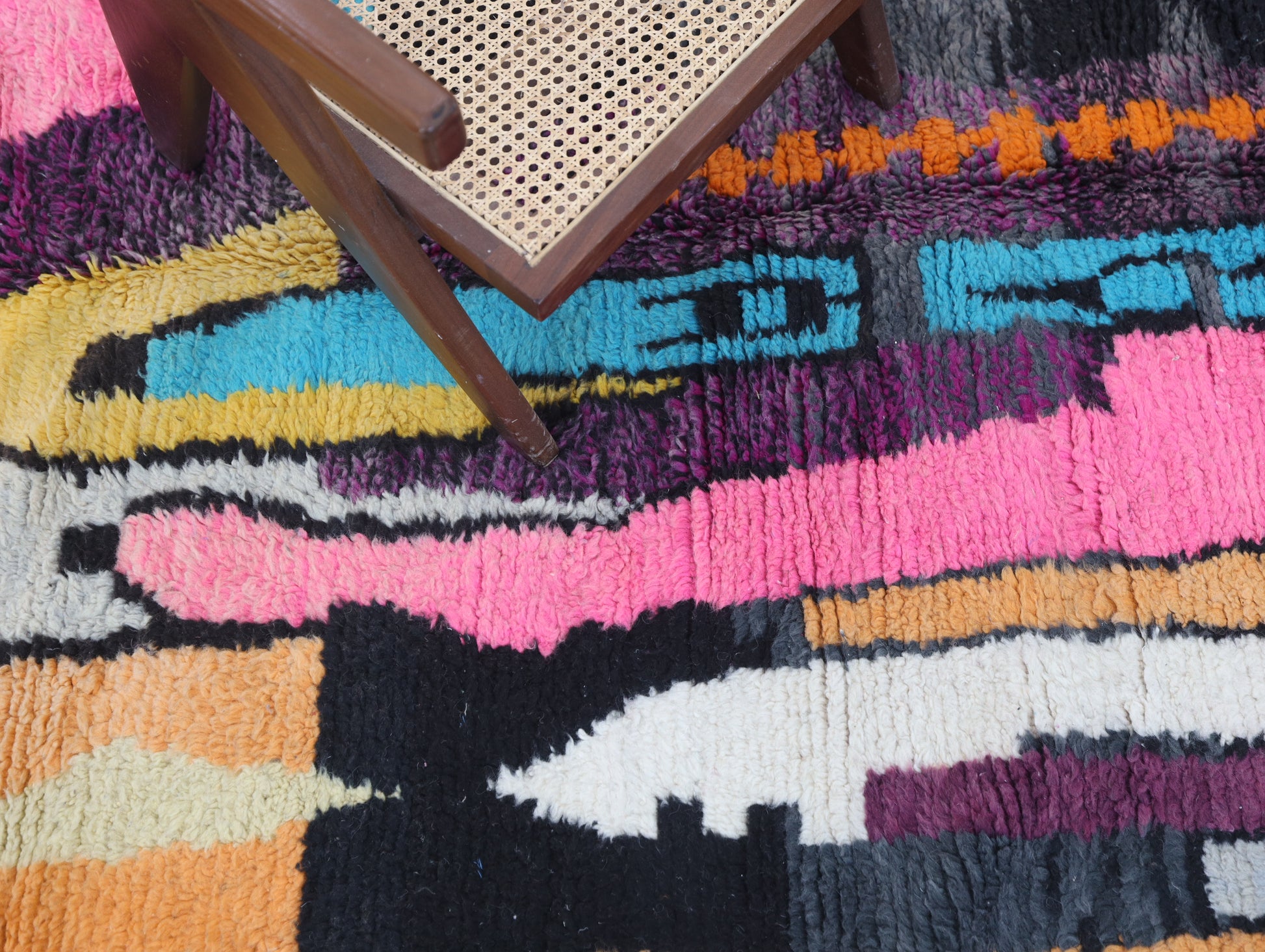 A singular moroccan rug, meticulously woven in the small city of Boujaad in Morocco's Chaouia-Ouardigha region. Size: 5'1" x 8'1" (156 cm x 246 cm).