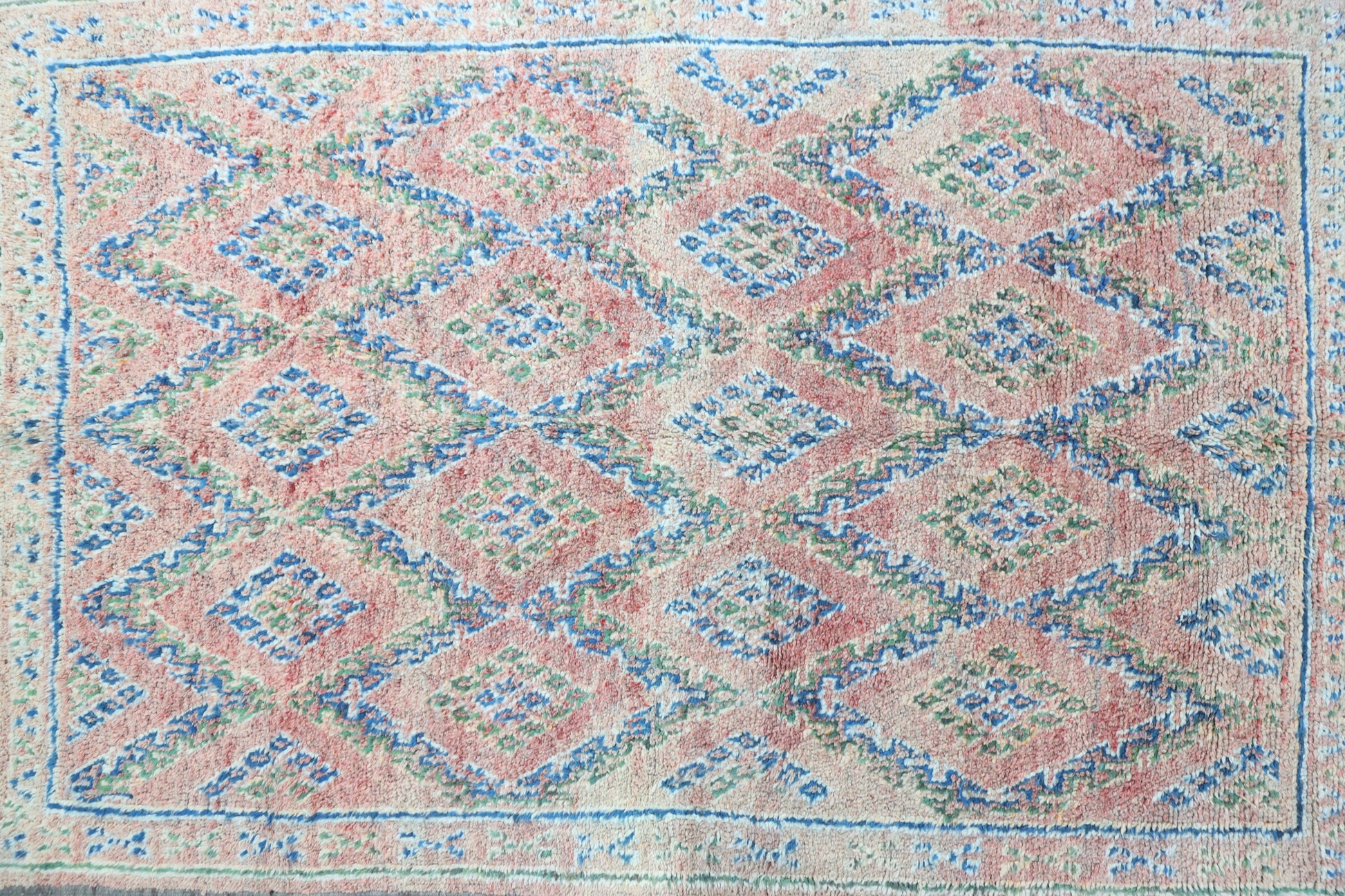 A truly unique vintage rug, meticulously hand-knotted by the Zemmour tribes from Morocco's Middle Atlas range. Size:  6'5" x10'1" (197 cm x 307 cm),