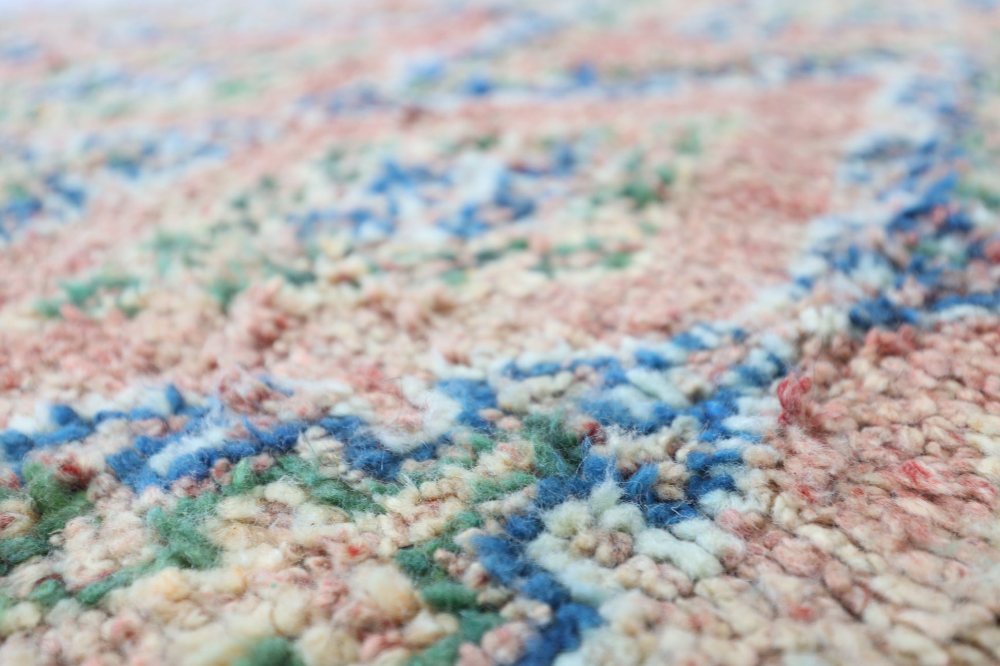 Wool, a sacred material for the Amazigh (Berber) people, forms the cornerstone of Moroccan rug design. Durable, long-lasting, and soft underfoot, wool is both functional and comfortable. In this piece, the wool pile is expertly knotted onto a wool foundation, adding substance and allowing it to gracefully embrace the floor.