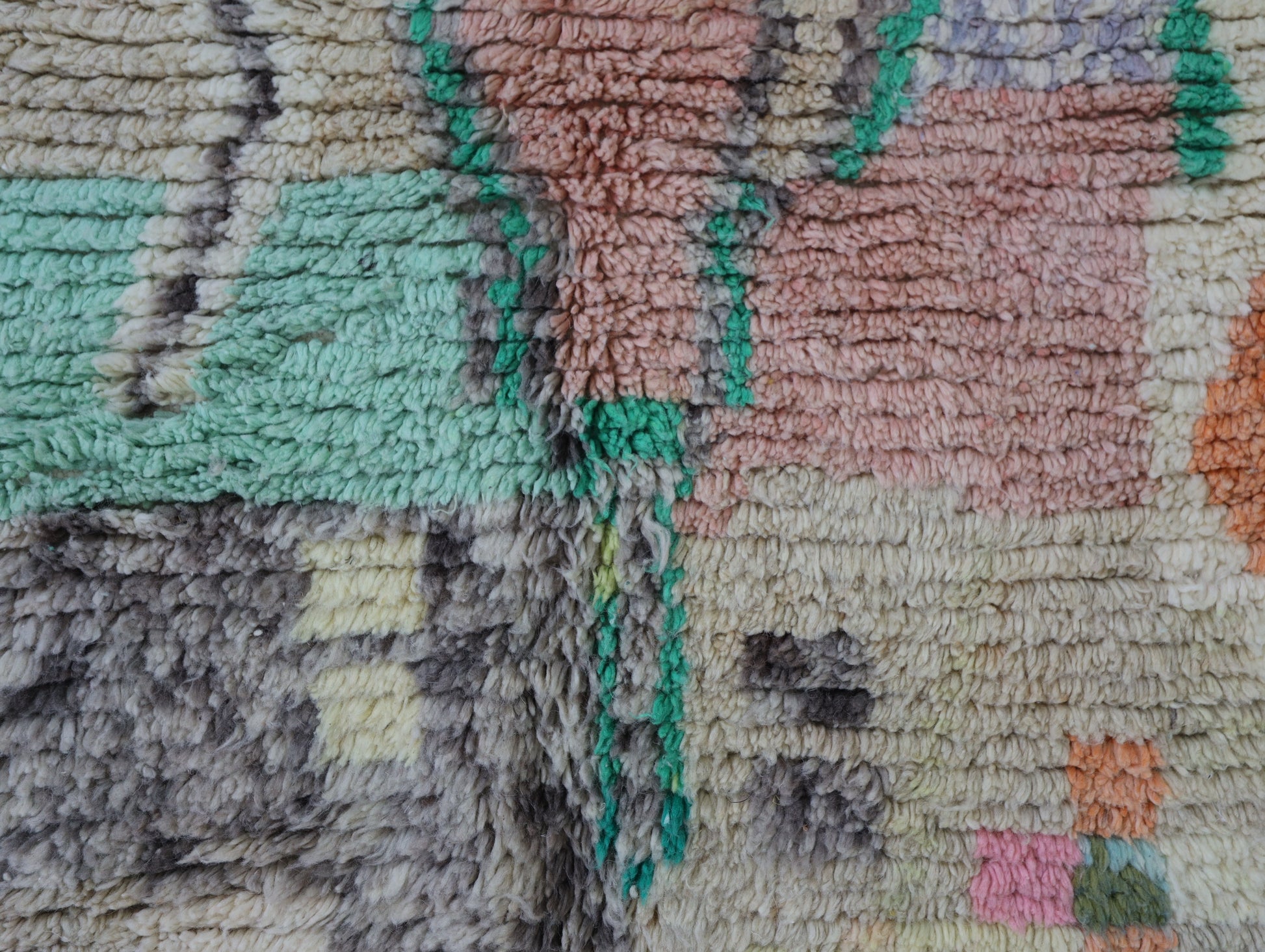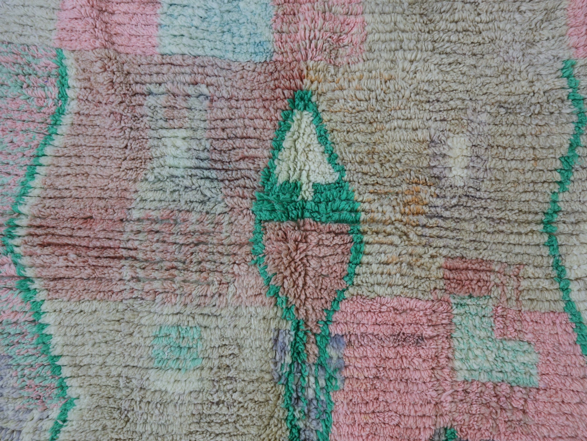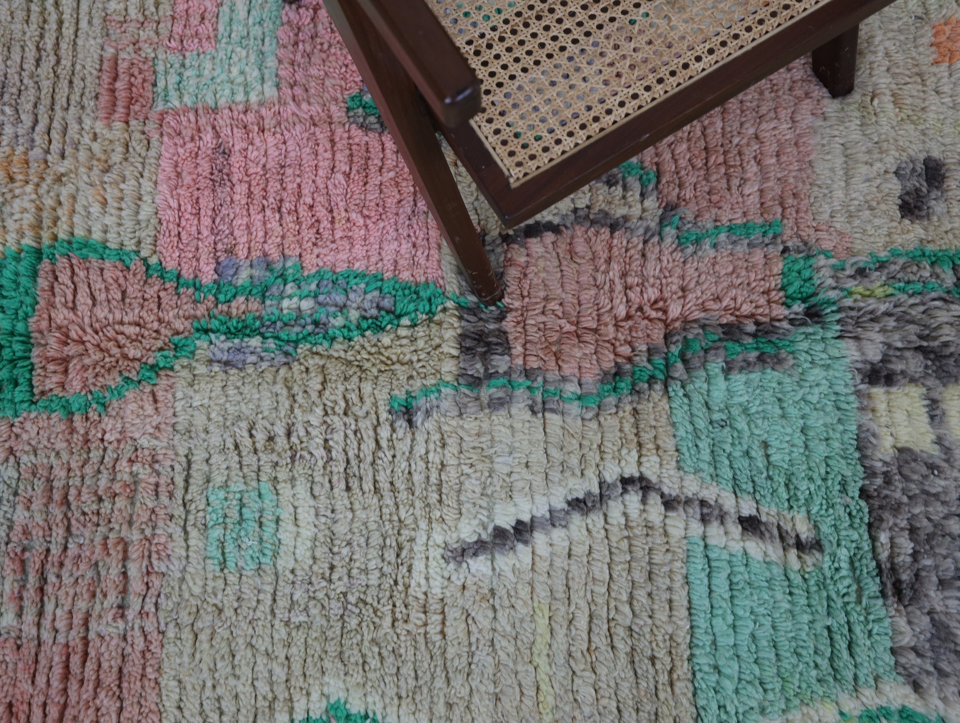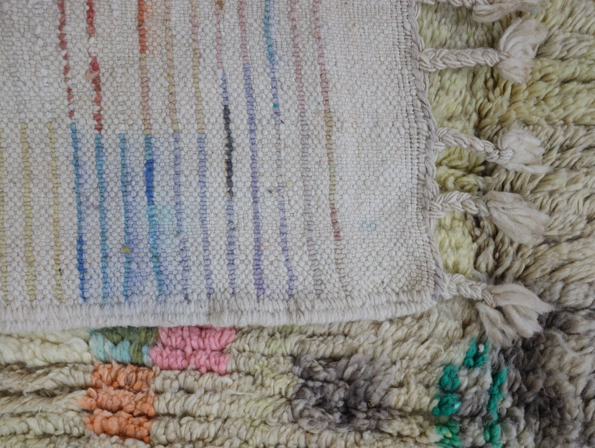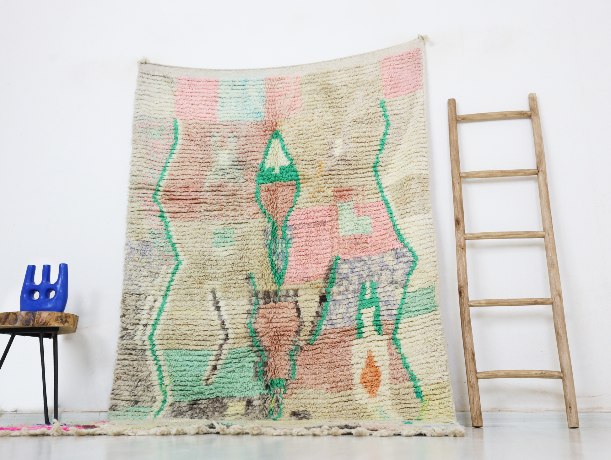 A singular moroccan rug, meticulously woven in the small city of Boujaad in Morocco's Chaouia-Ouardigha region. Size: 4'9" x 8'3" (150 cm x 253 cm).