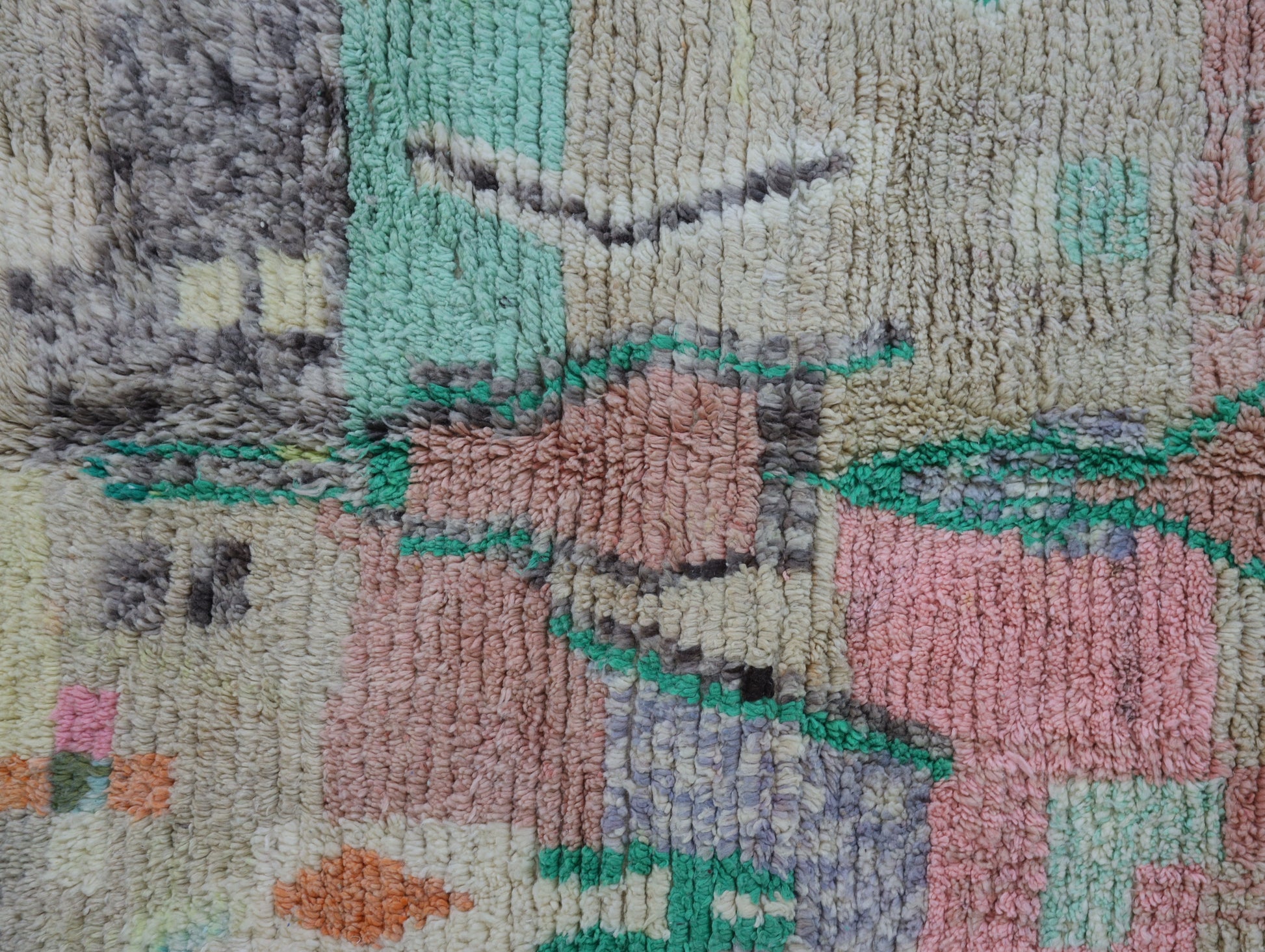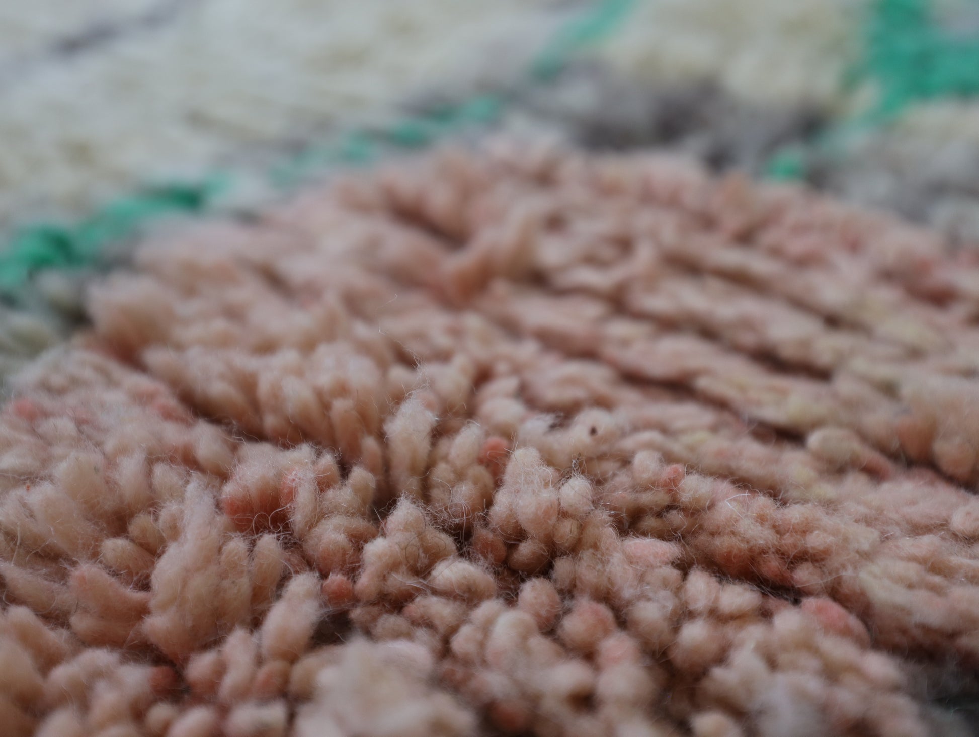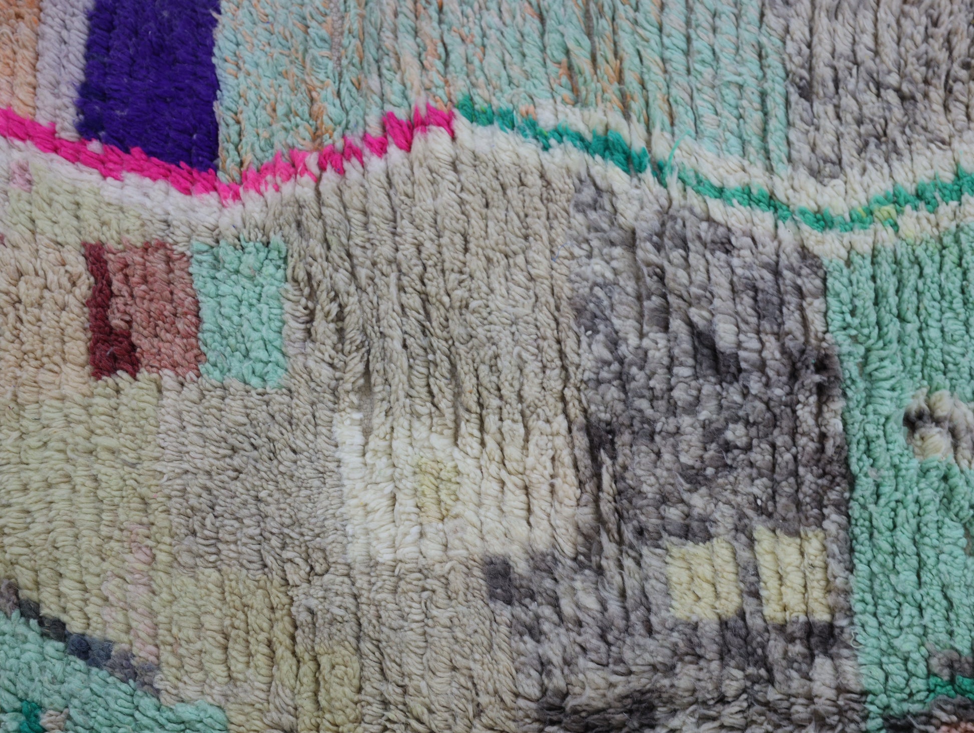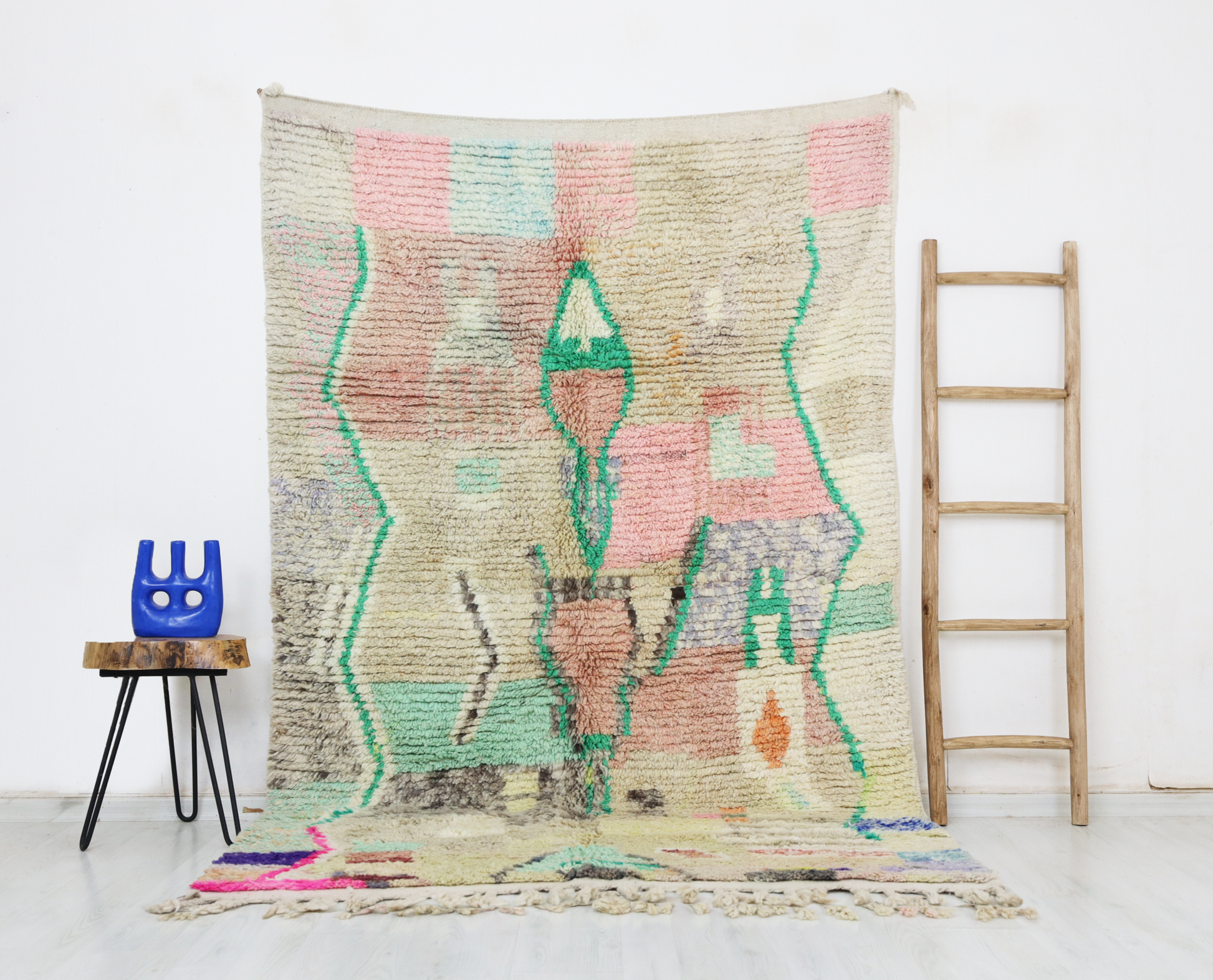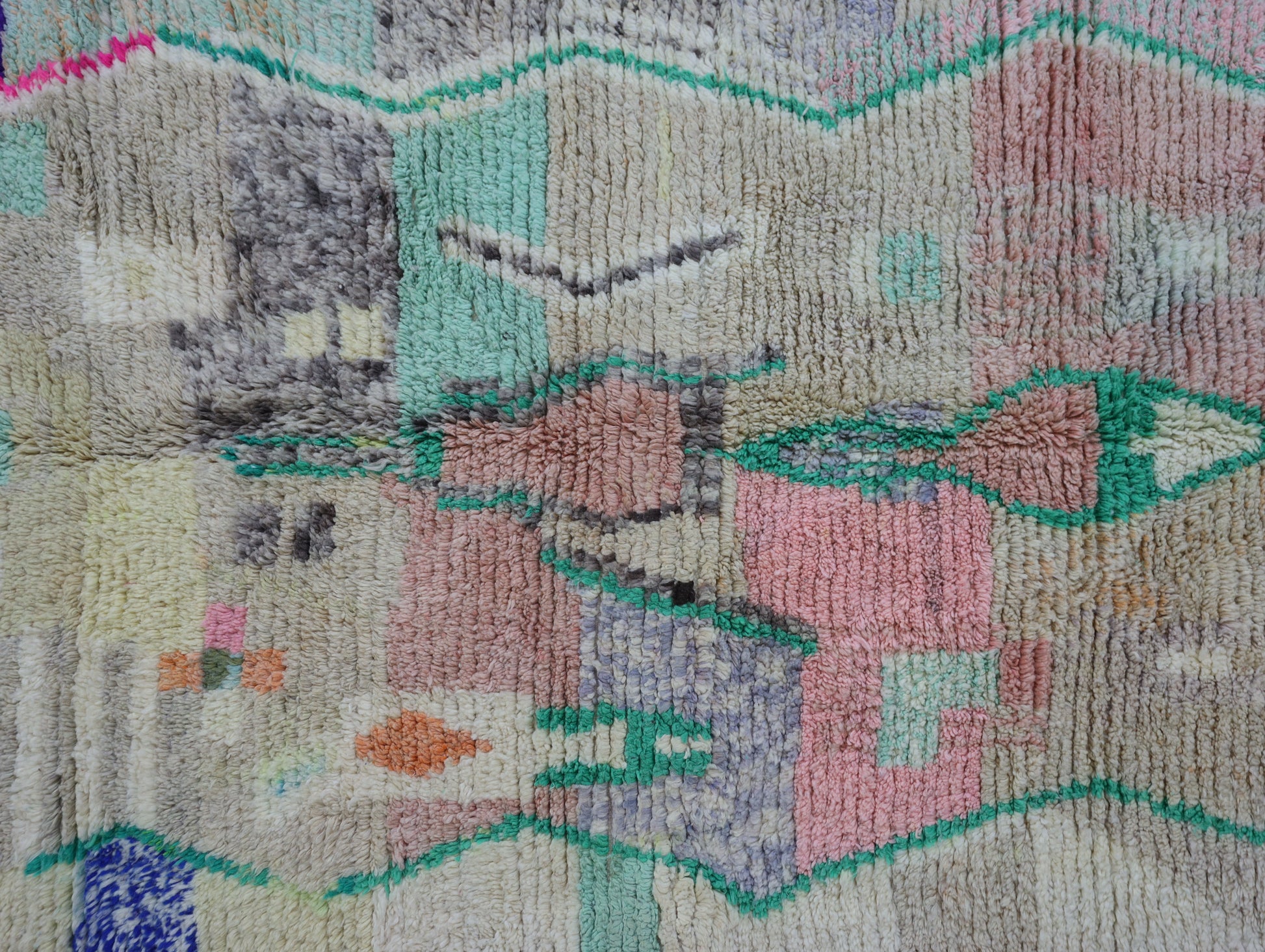 A singular moroccan rug, meticulously woven in the small city of Boujaad in Morocco's Chaouia-Ouardigha region. Size: 4'9" x 8'3" (150 cm x 253 cm).