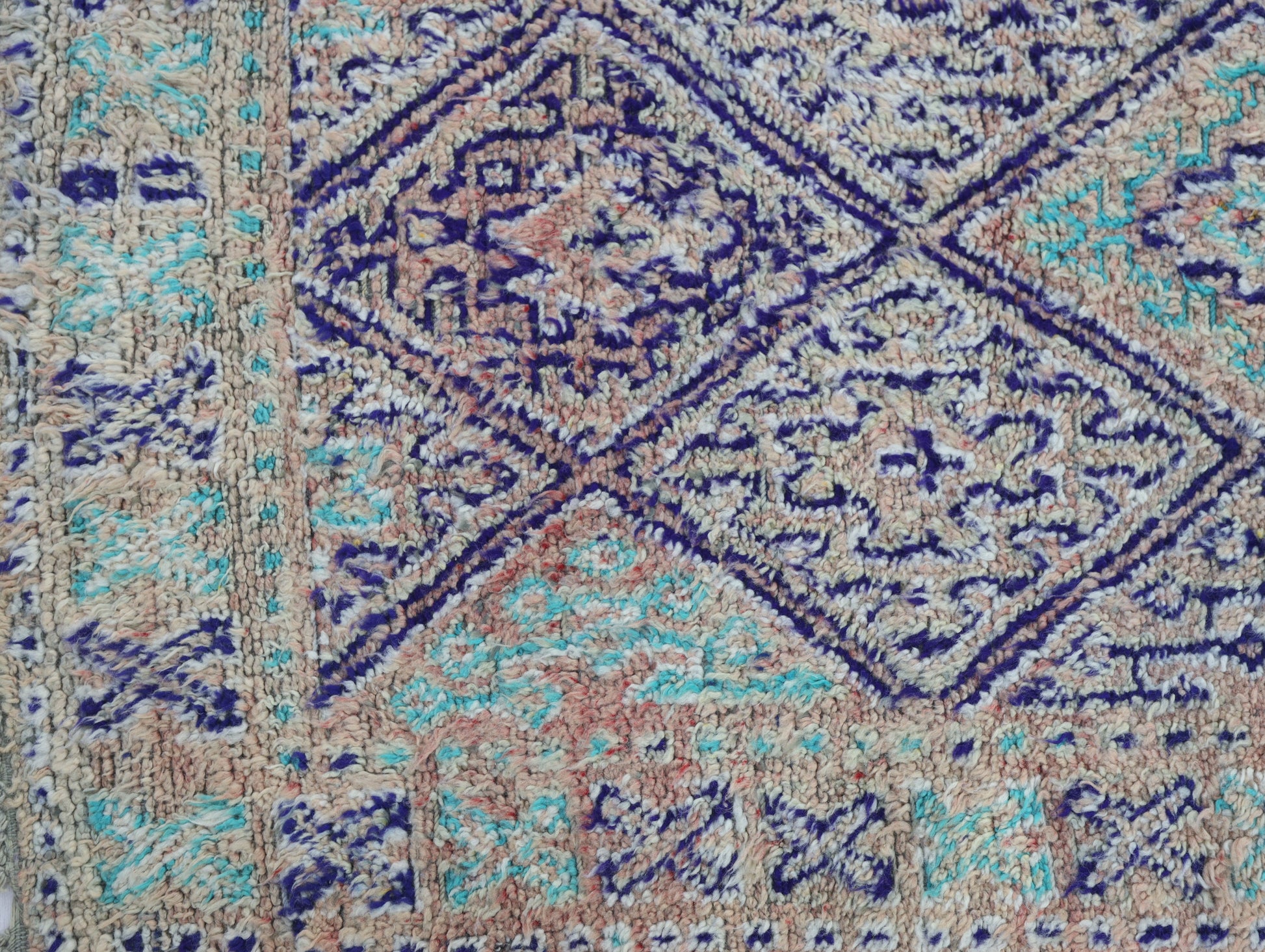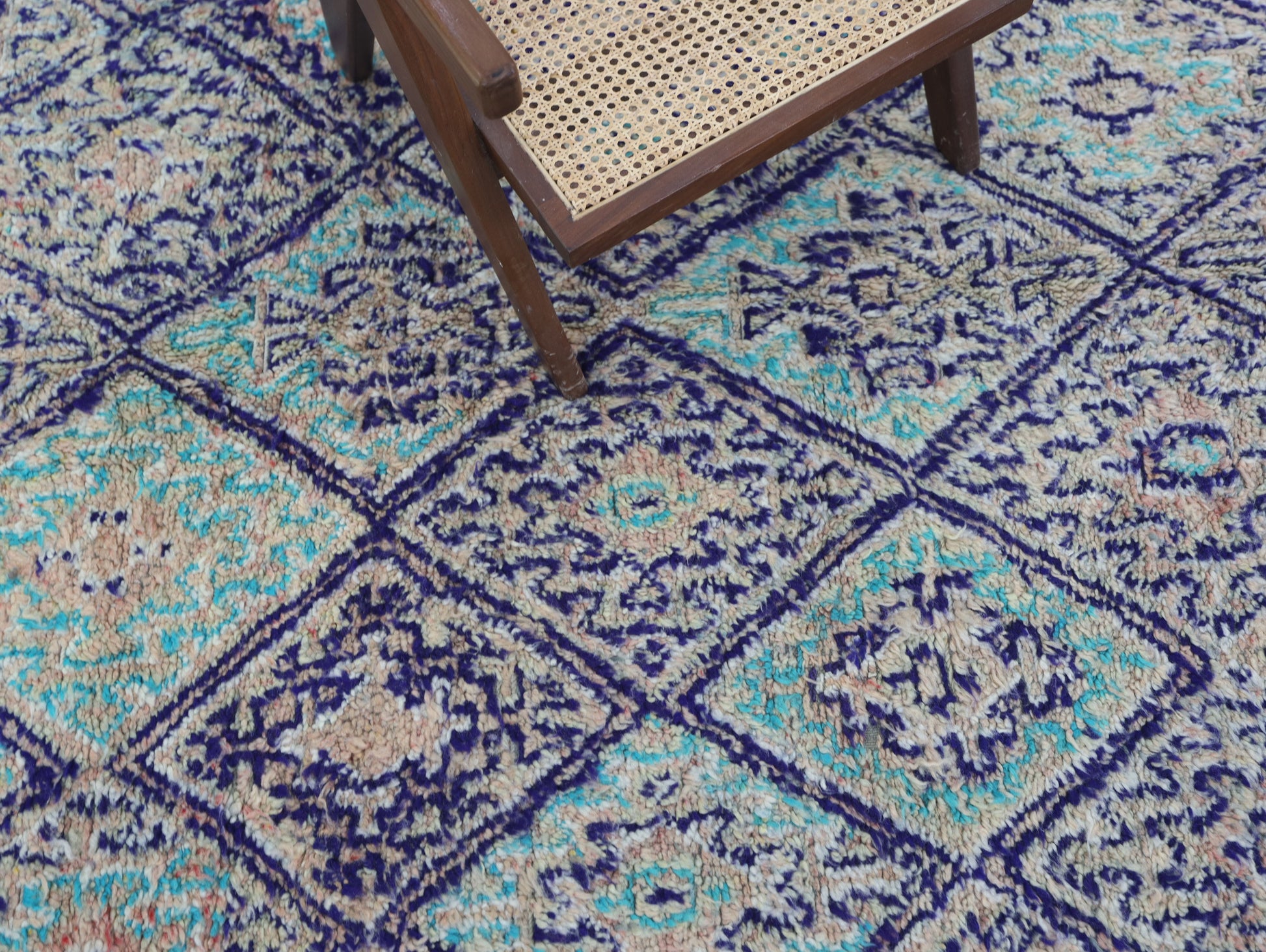 A truly unique vintage rug, meticulously hand-knotted by the Zemmour tribes from Morocco's Middle Atlas range. Size:  7'0" x11'1" (214 cm x 338 cm),