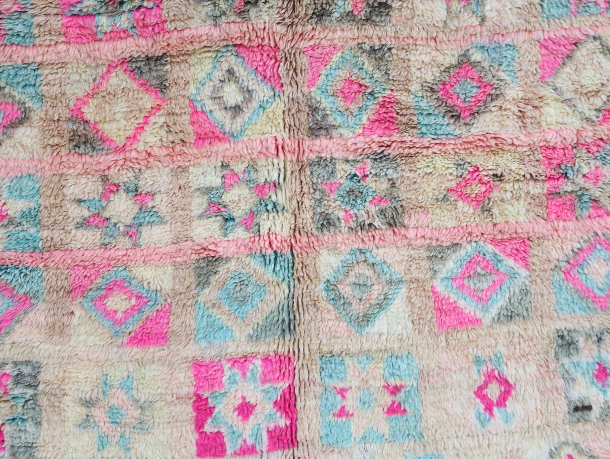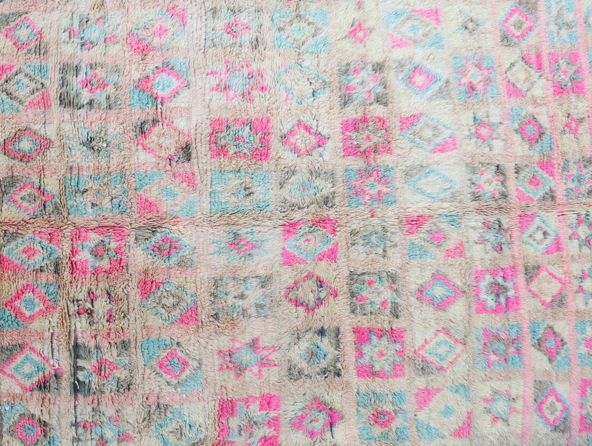 A truly unique vintage rug, meticulously hand-knotted by the Zemmour tribes from Morocco's Middle Atlas range. Size:  6'4" x12'6" (196 cm x 383 cm),
