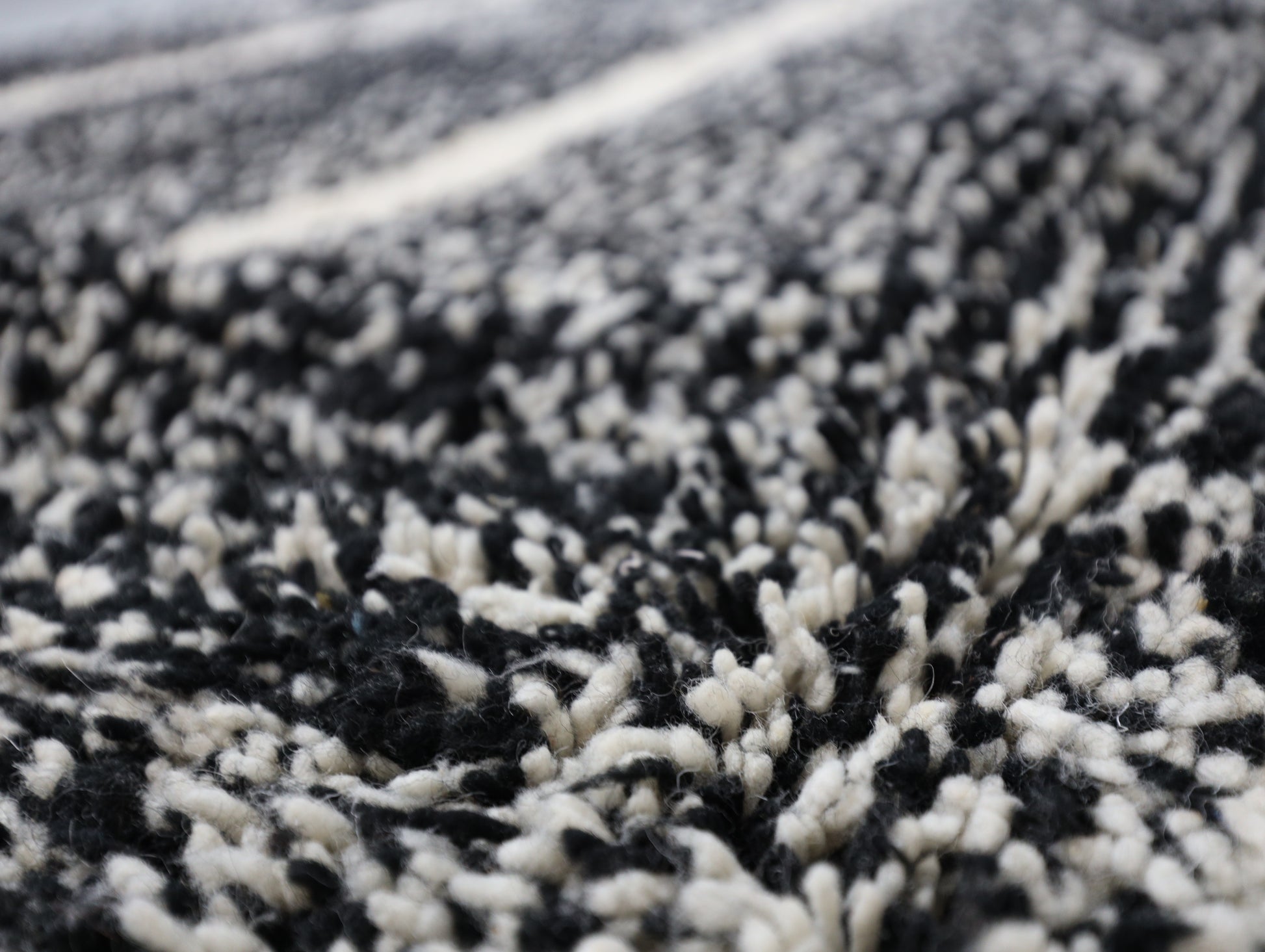 Sourced locally, Moroccan wool produces a dense, sturdy pile that feels soft and fluffy underfoot. While a touch of shedding is natural, it's a small price to pay for the cherished wild, tousled texture of the high pile—a comfort beloved for its durability, longevity, and the soft embrace it offers with every step.