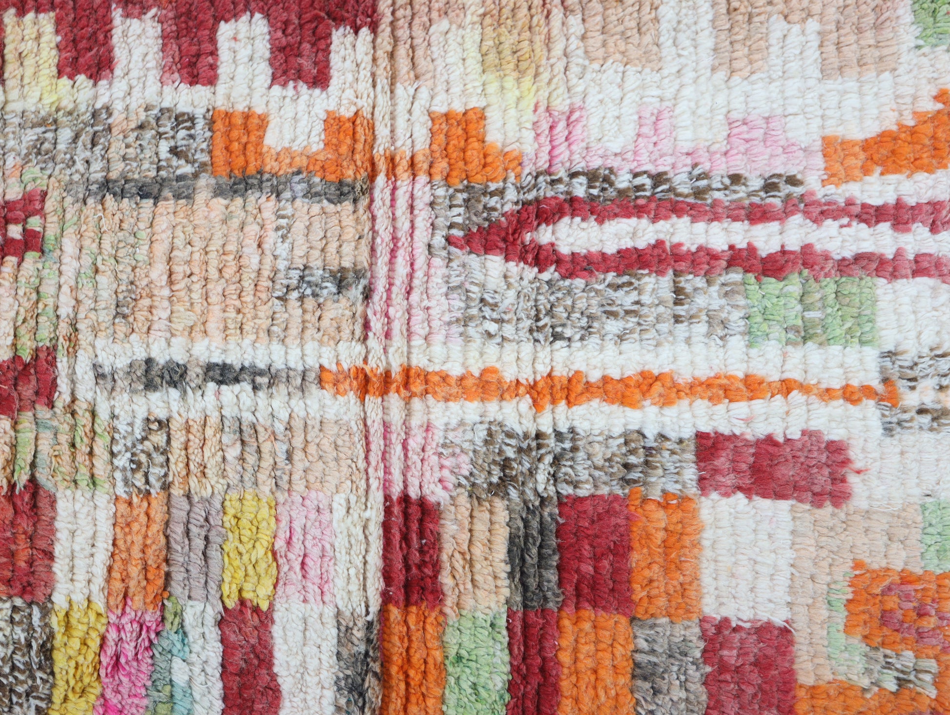 A singular moroccan rug, meticulously woven in the small city of Boujaad in Morocco's Chaouia-Ouardigha region. Size: 2'4" x 10'0" (74 cm x 306 cm).
