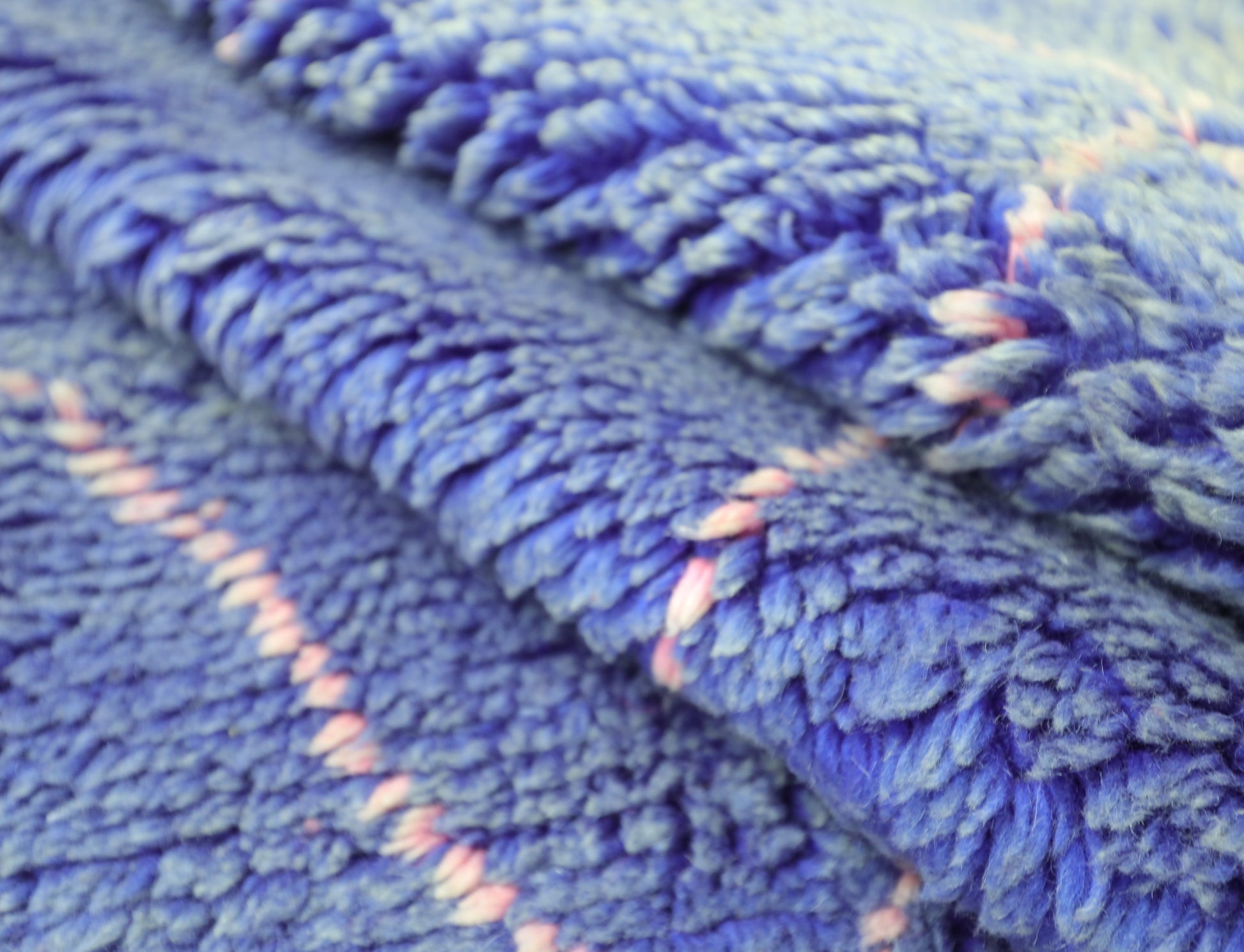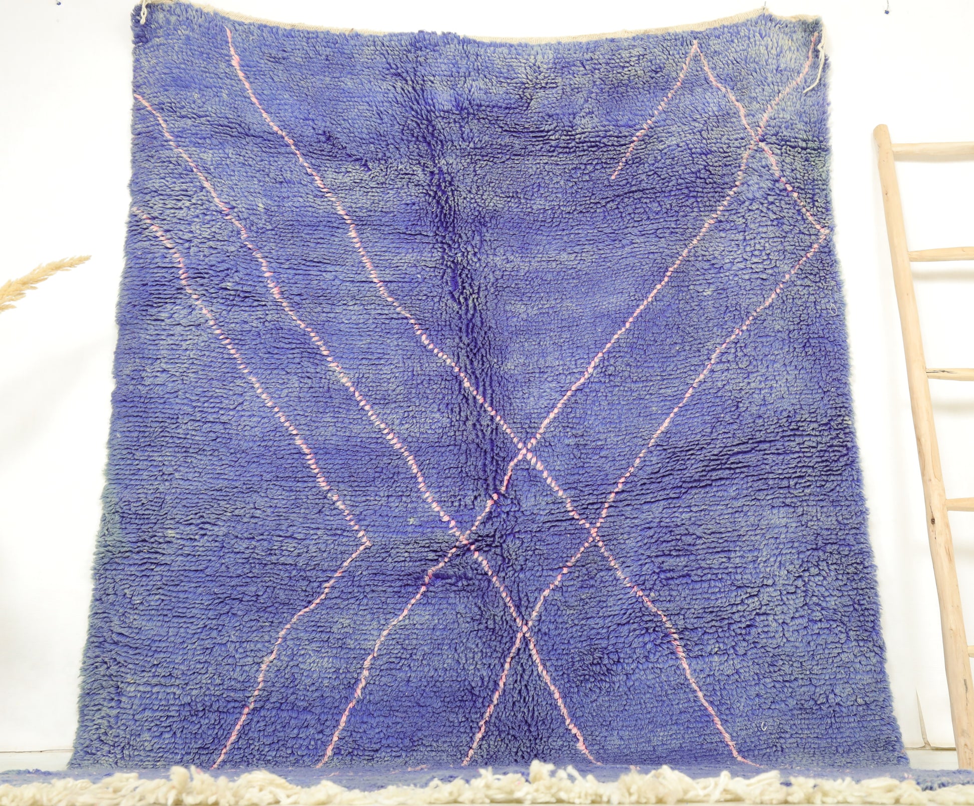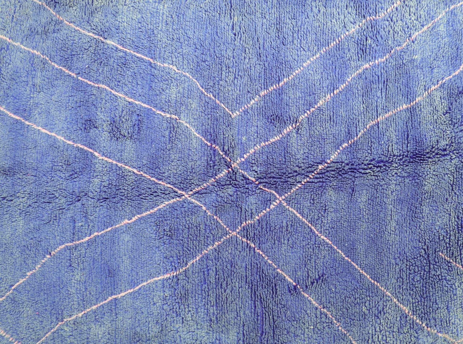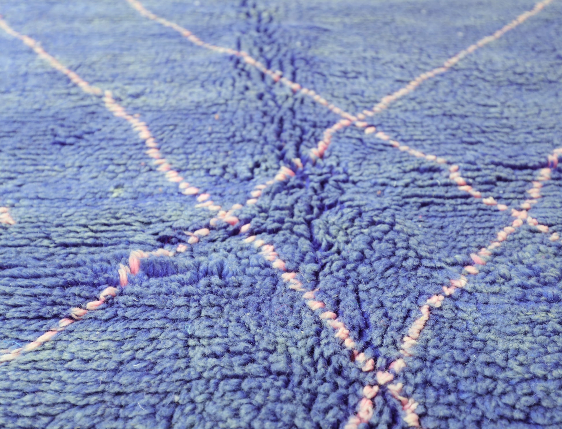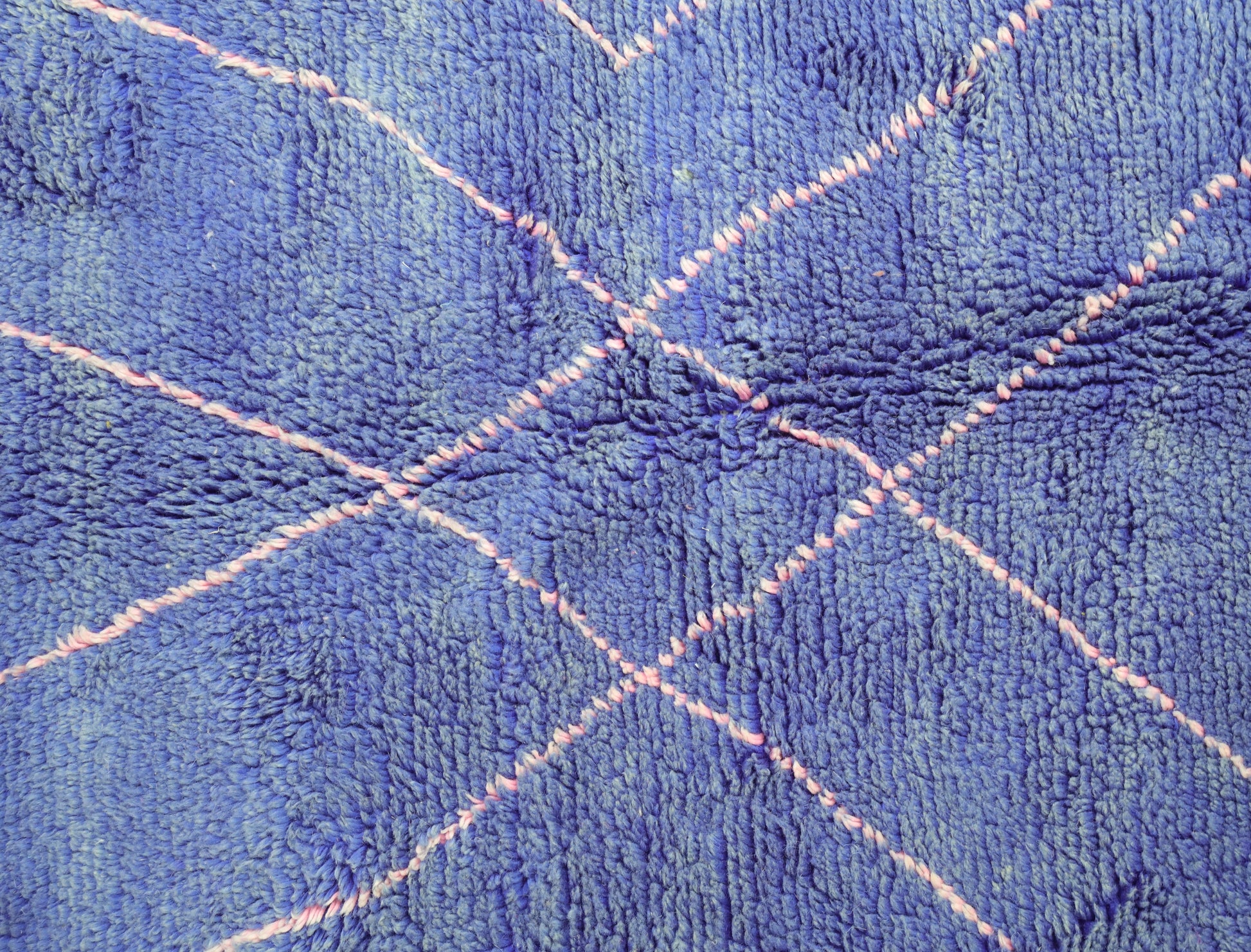 Wool, a sacred material for the Amazigh (Berber) people, forms the cornerstone of Moroccan rug design. Durable, long-lasting, and soft underfoot, wool is both functional and comfortable. In this piece, the wool pile is expertly knotted onto a wool foundation, adding substance and allowing it to gracefully embrace the floor.