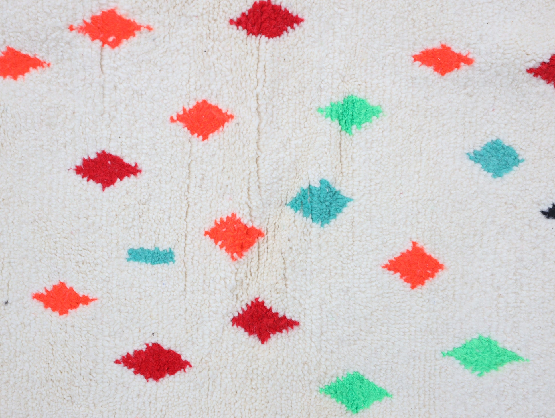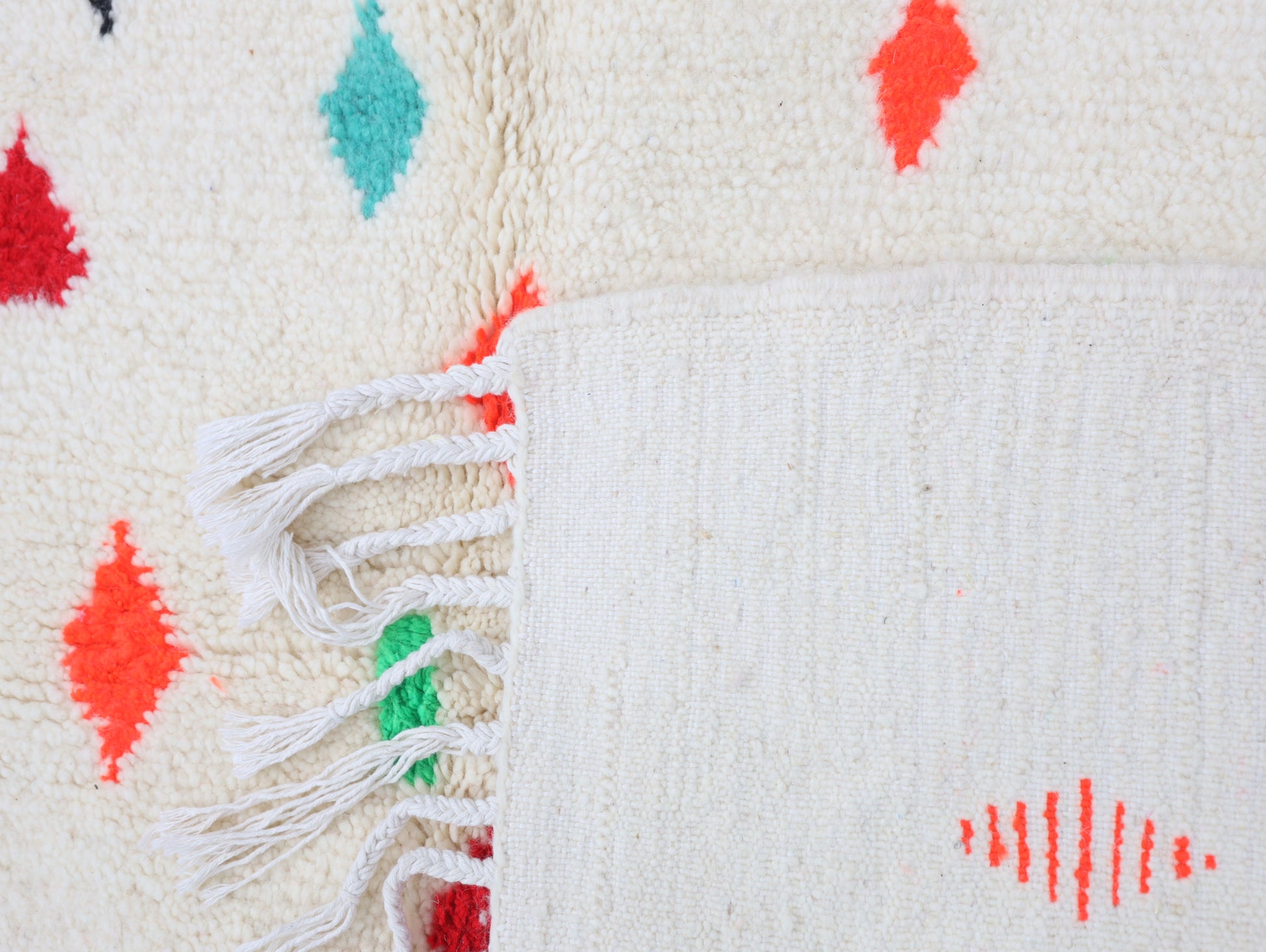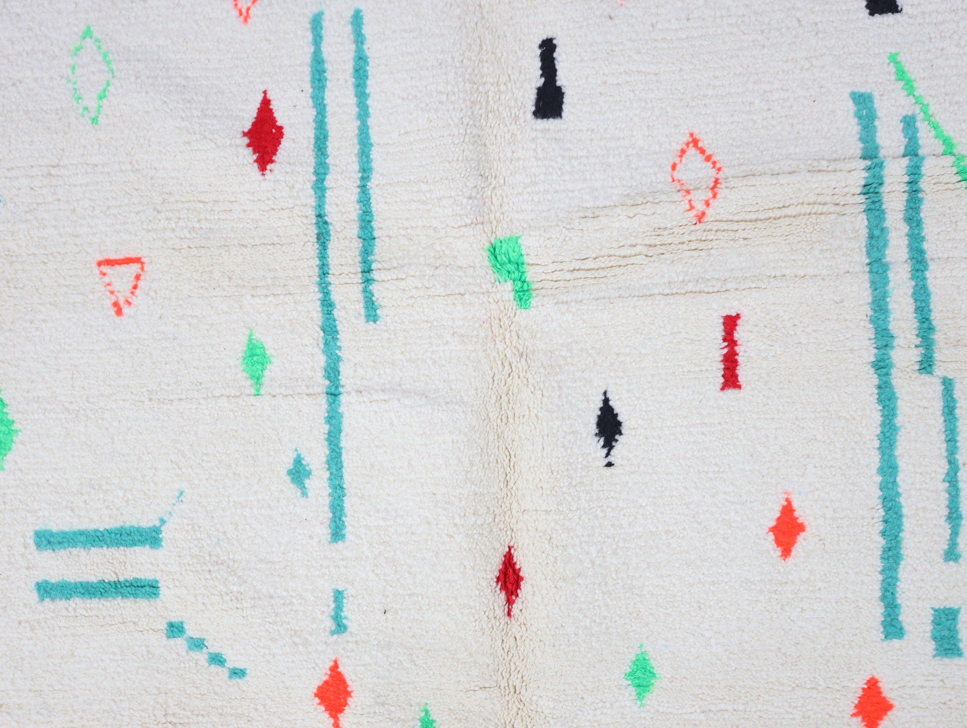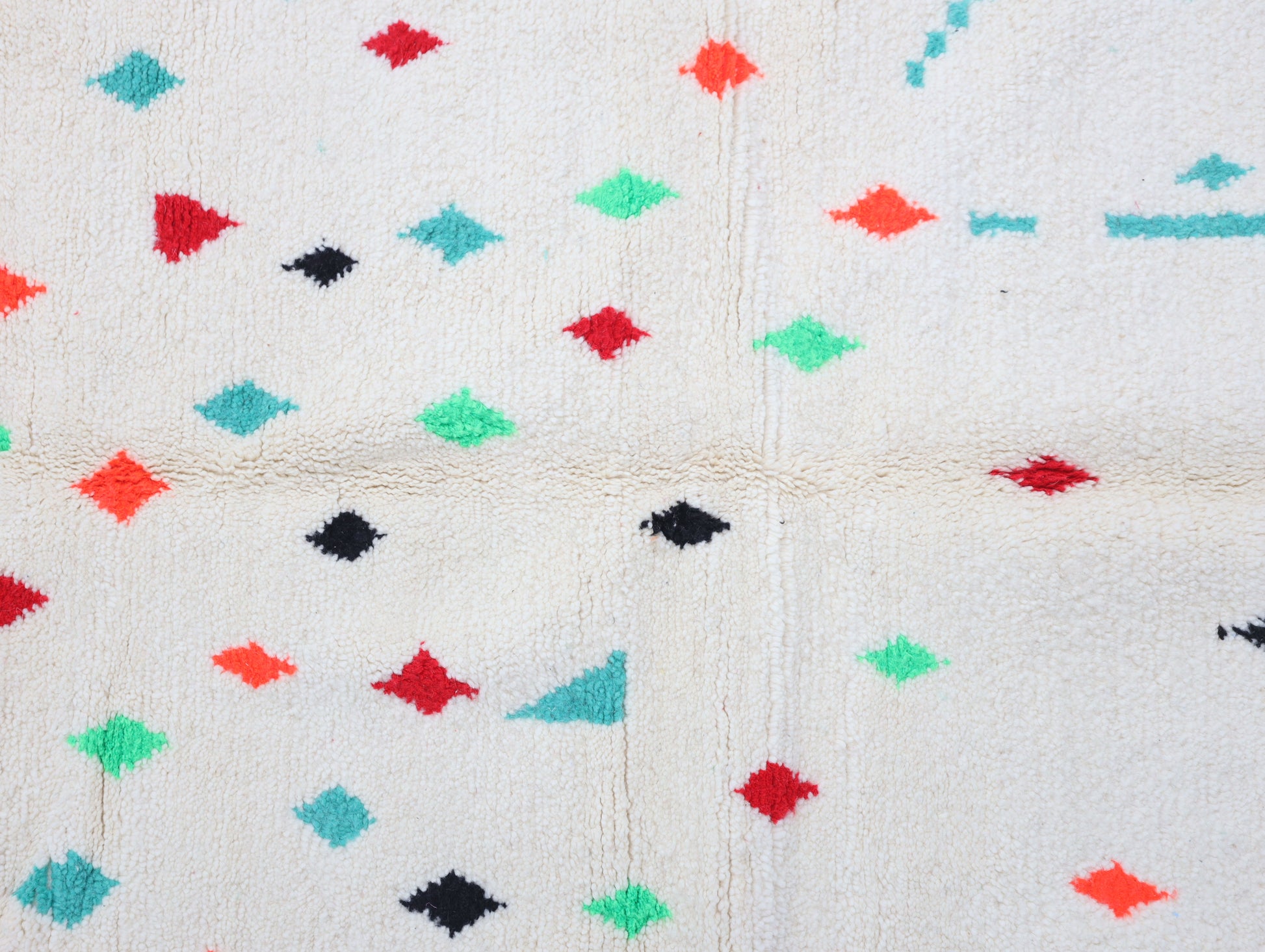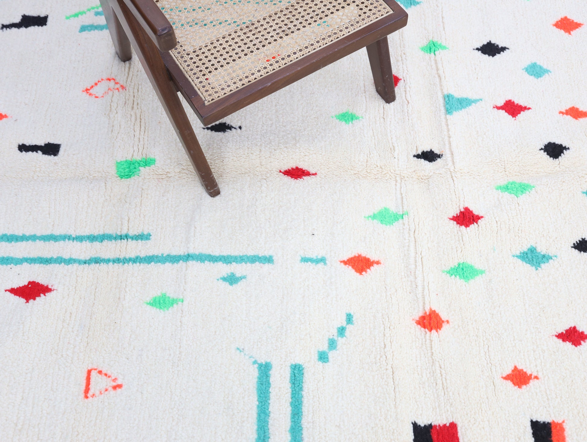 Azilal rugs boast abstract, painterly designs reminiscent of rugs from Ourika. What sets them apart is a vibrant color palette, achieved through the incorporation of cotton alongside wool.