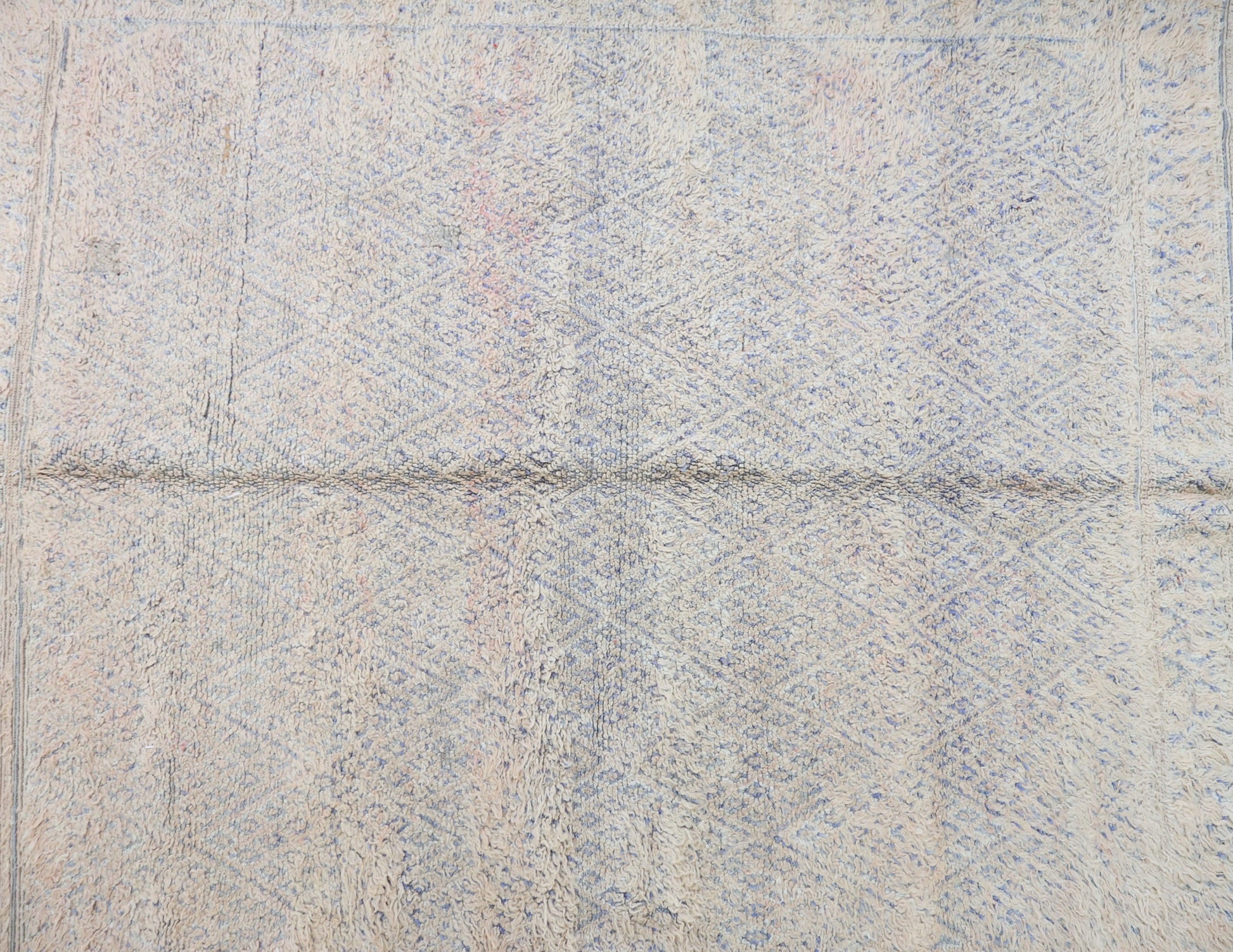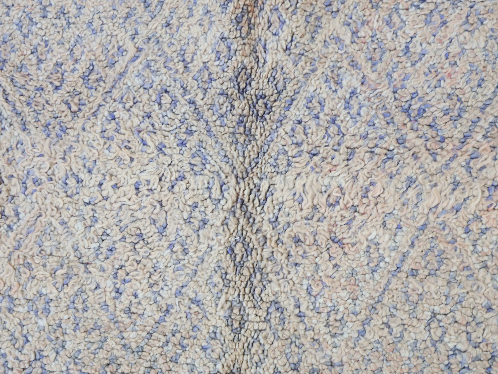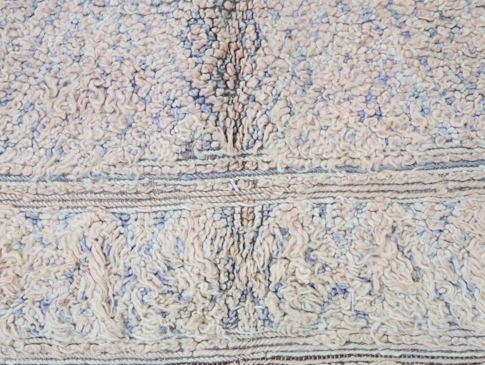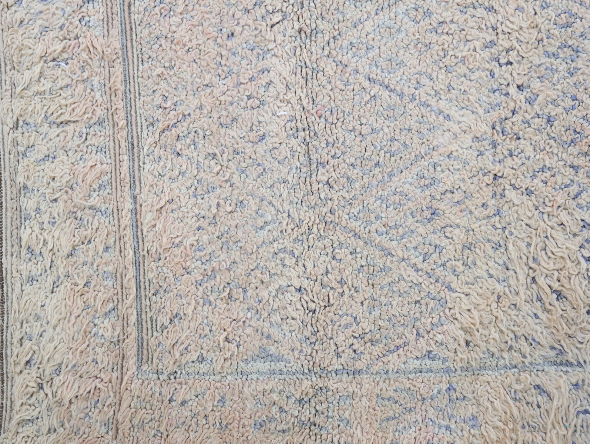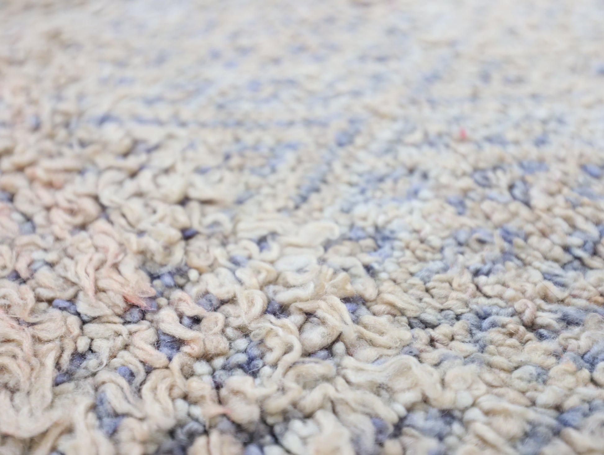 Wool, a sacred material for the Amazigh (Berber) people, forms the cornerstone of Moroccan rug design. Durable, long-lasting, and soft underfoot, wool is both functional and comfortable. In this piece, the wool pile is expertly knotted onto a wool foundation, adding substance and allowing it to gracefully embrace the floor.