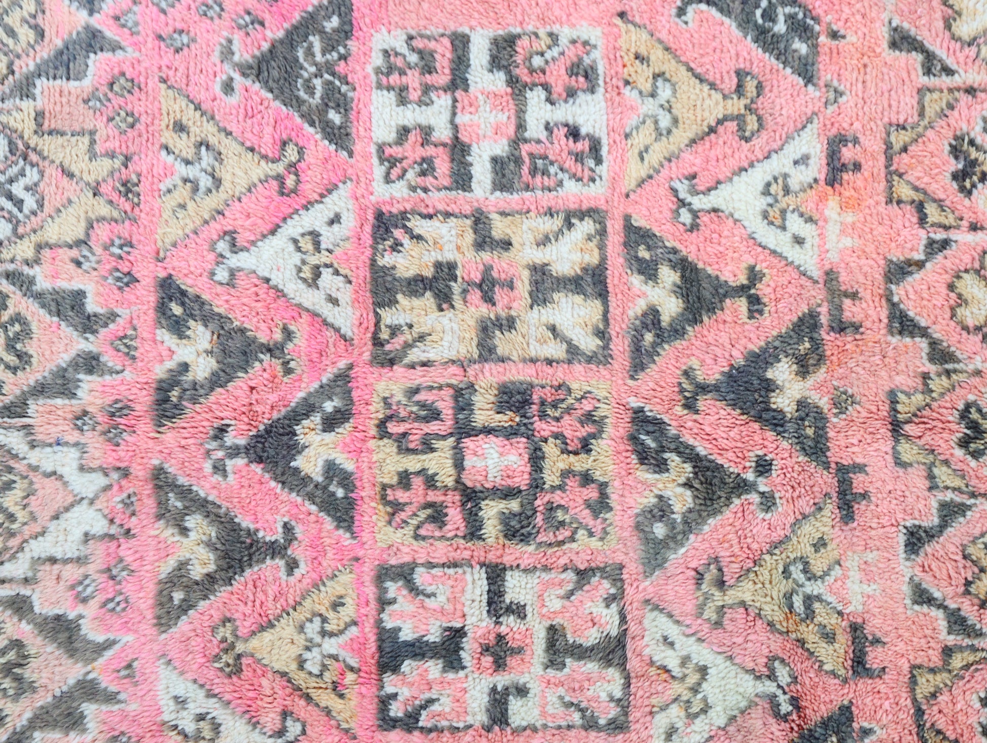 A truly unique vintage rug, meticulously hand-knotted by the Zemmour tribes from Morocco's Middle Atlas range. Size:  7'0" x11'9" (212 cm x 364 cm),