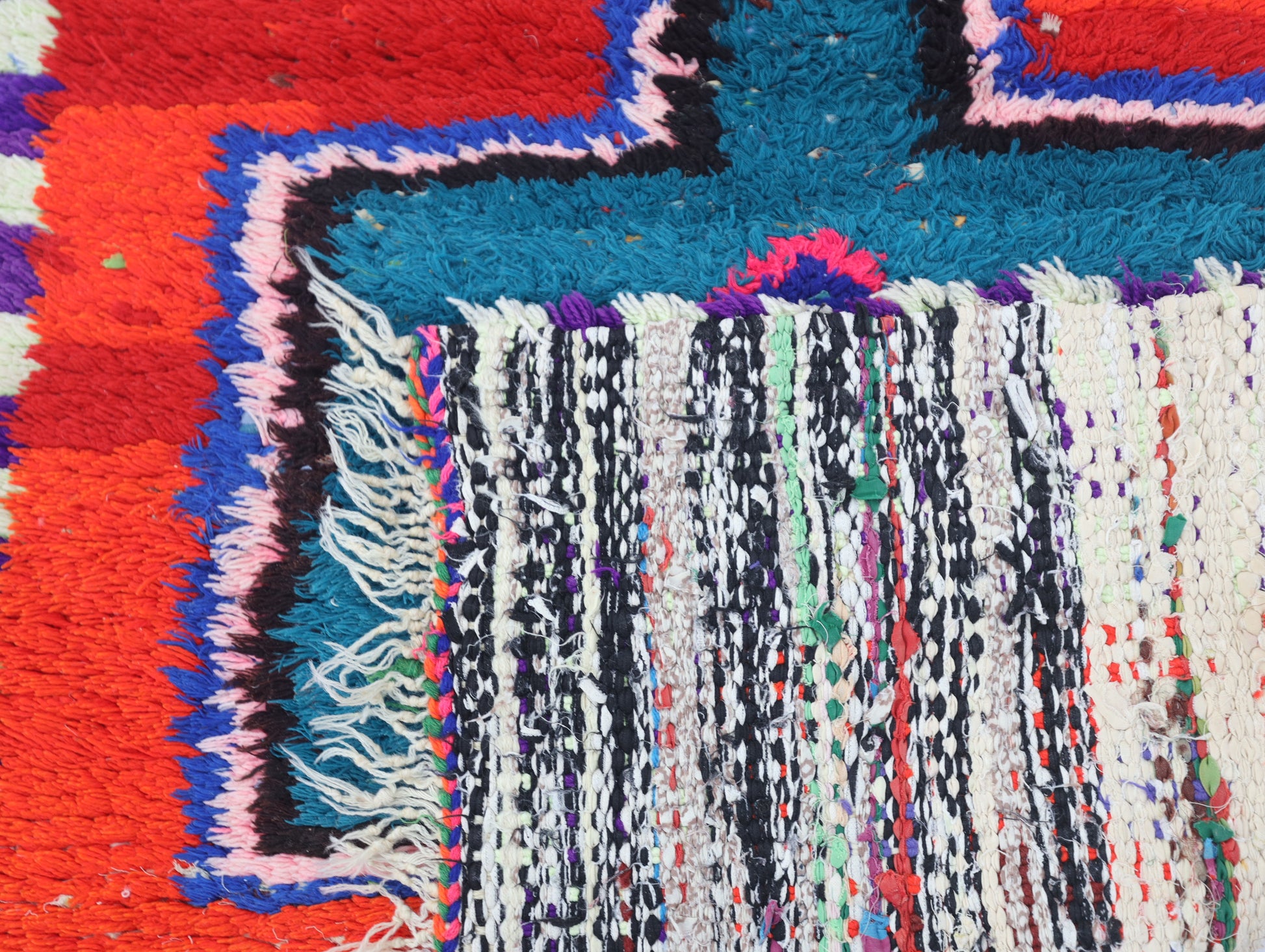 An unparalleled vintage masterpiece, carefully crafted by Berber Tribes in the Boucherouite style using upcycled textiles. Measurements: 2'6" x 8'3" (78 cm x 252 cm),