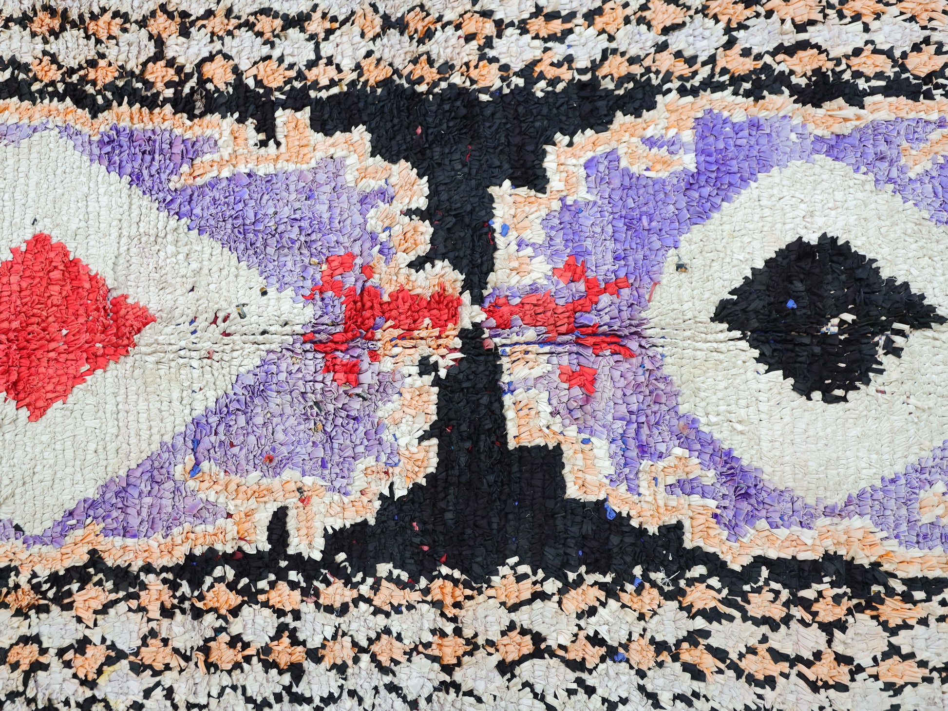 An unparalleled vintage masterpiece, carefully crafted by Berber Tribes in the Boucherouite style using upcycled textiles. Measurements: 4'1" x 10'1" (125 cm x 307 cm),
