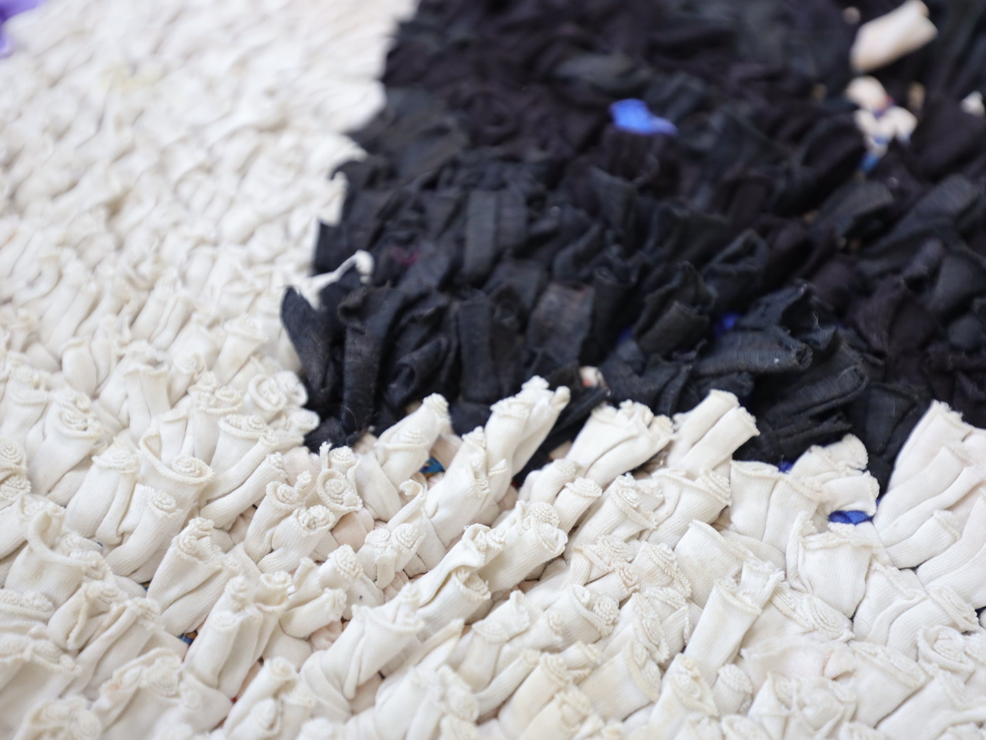 Unique masterpiece—sole piece in stock! Crafted from 100% wool pile on a cotton foundation.