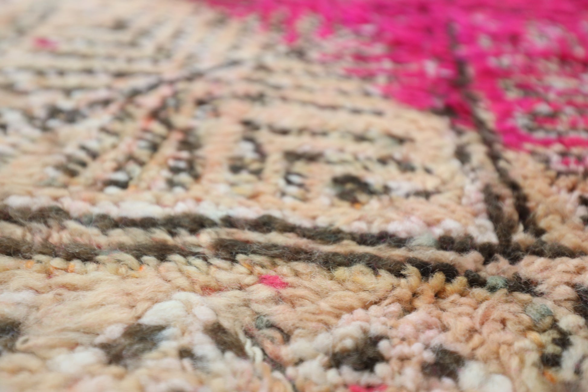 A truly unique vintage rug, meticulously hand-knotted by the Zemmour tribes from Morocco's Middle Atlas range. Size:  6'2" x12'7" (190 cm x 387 cm),