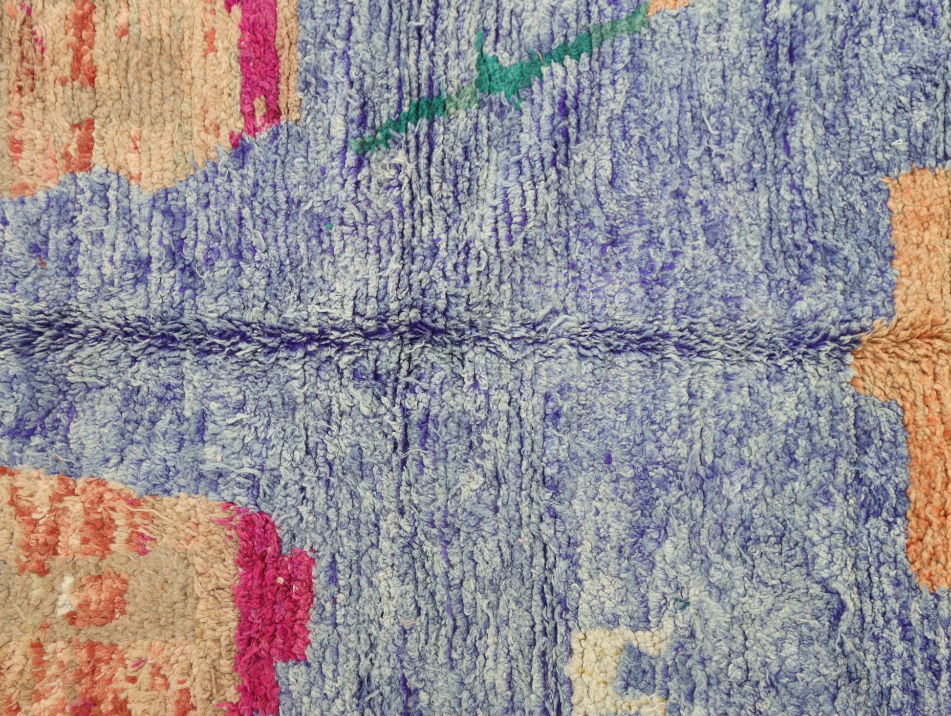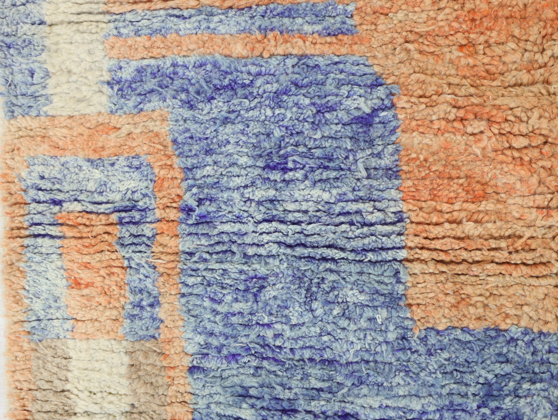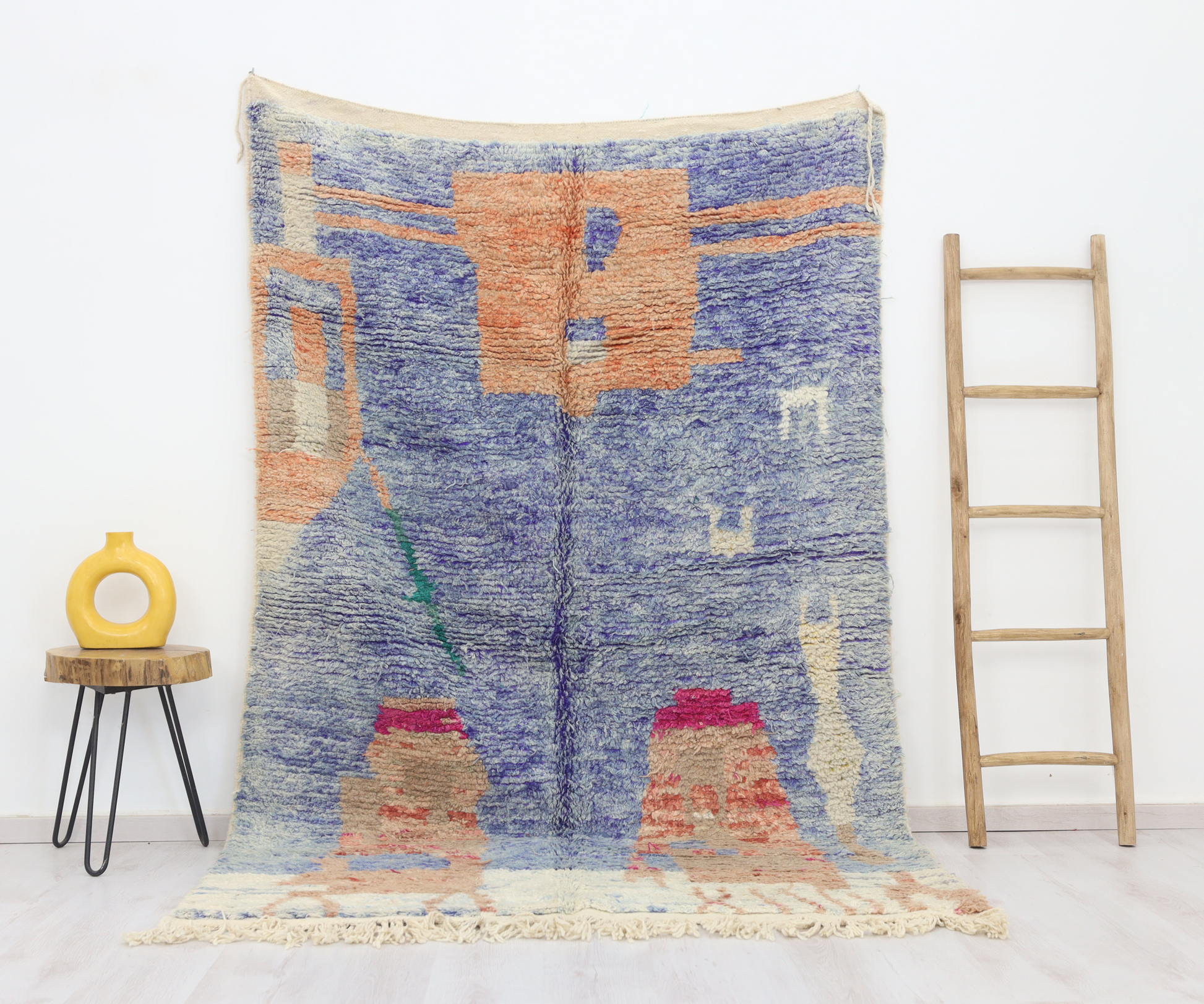 A singular moroccan rug, meticulously woven in the small city of Boujaad in Morocco's Chaouia-Ouardigha region. Size: 5'2" x 8'3" (160 cm x 252 cm).