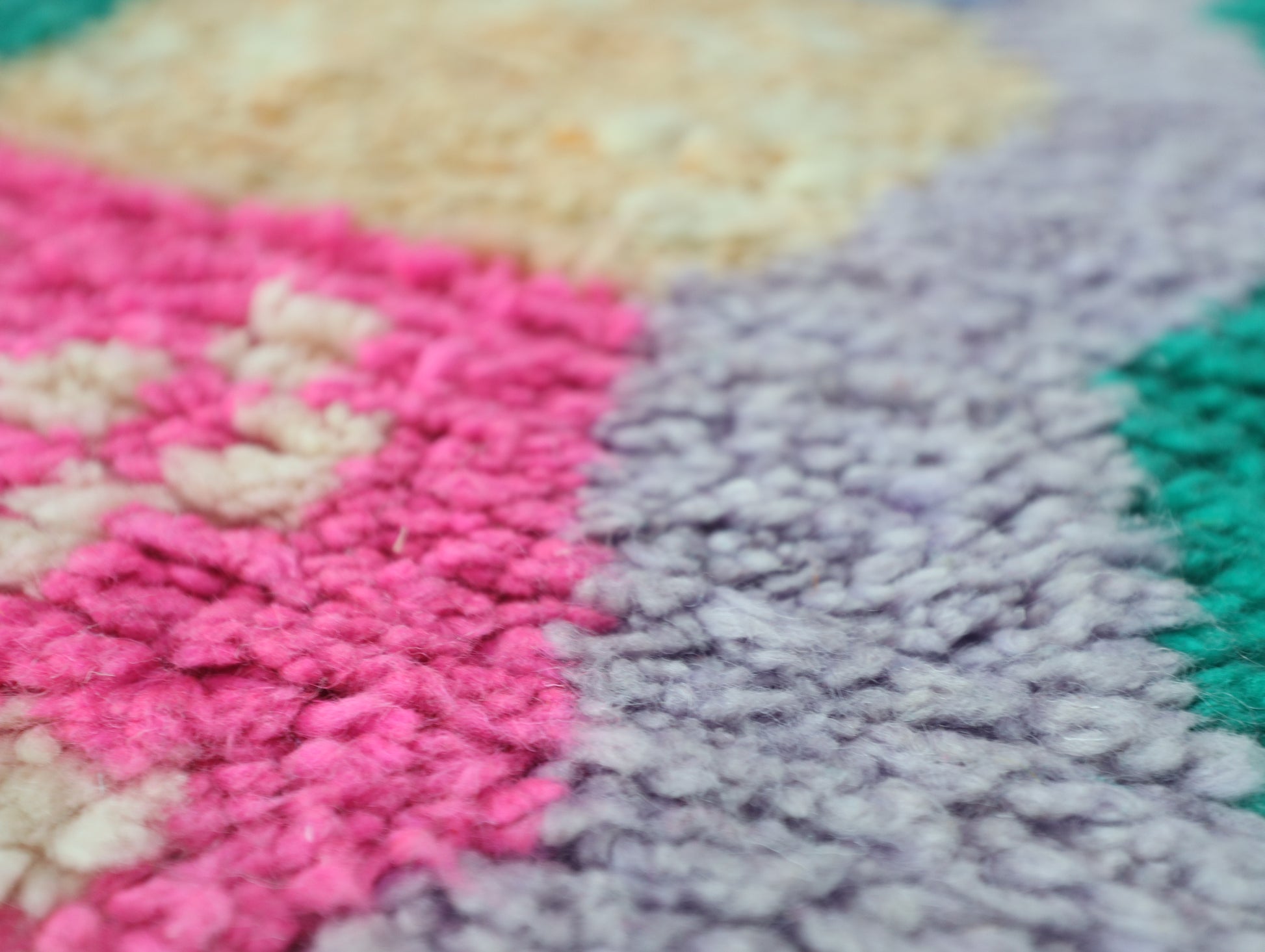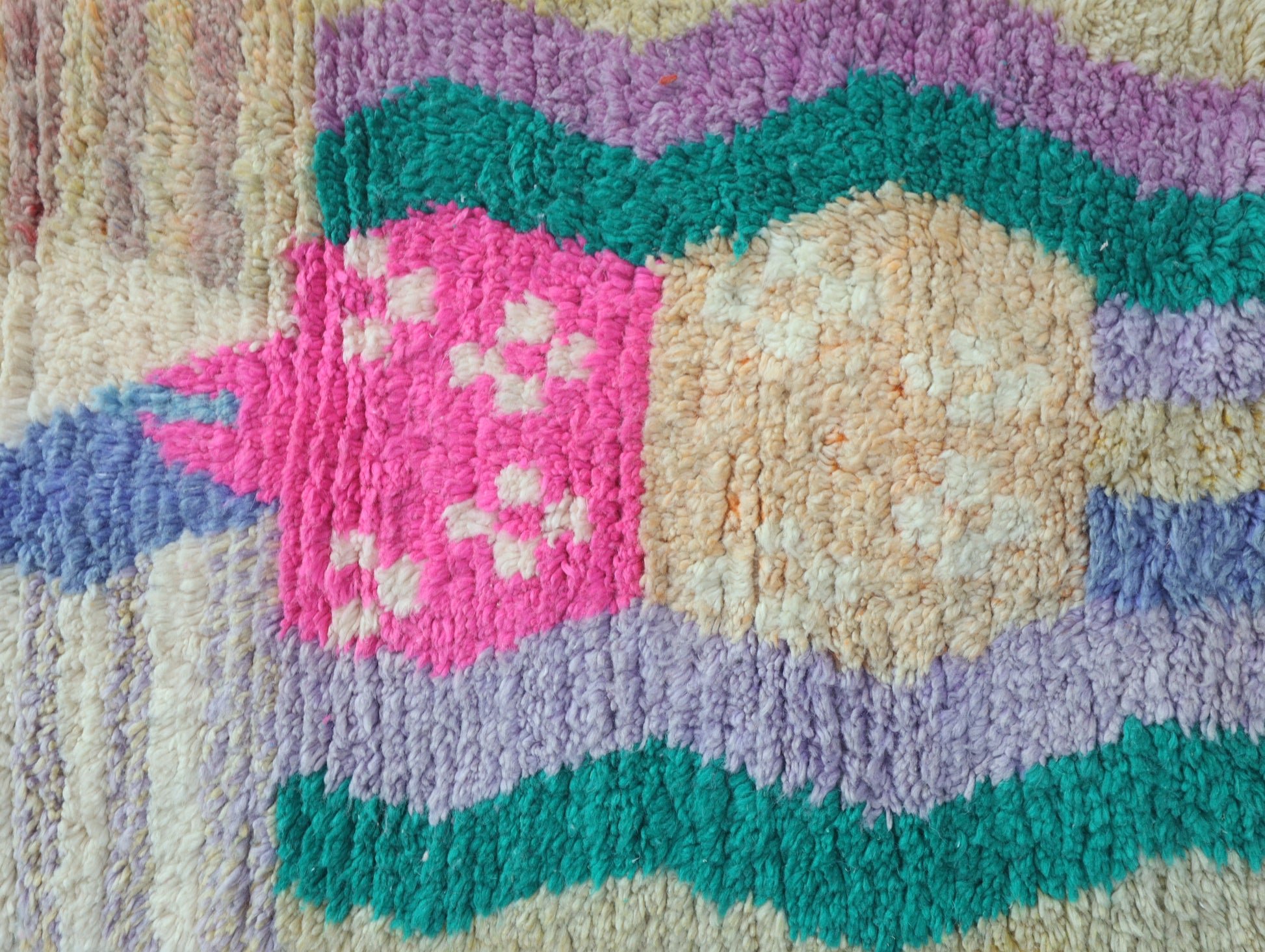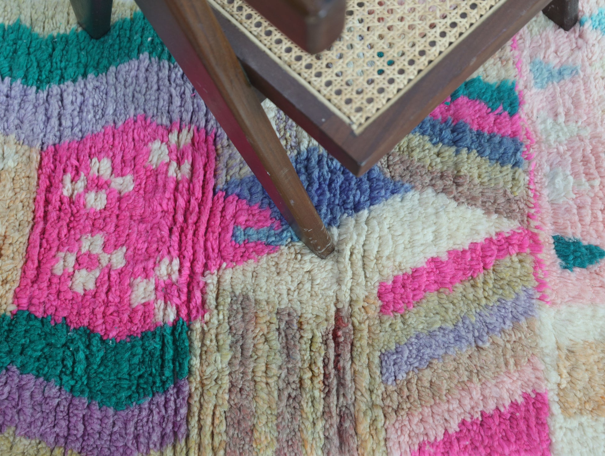 A singular moroccan rug, meticulously woven in the small city of Boujaad in Morocco's Chaouia-Ouardigha region.