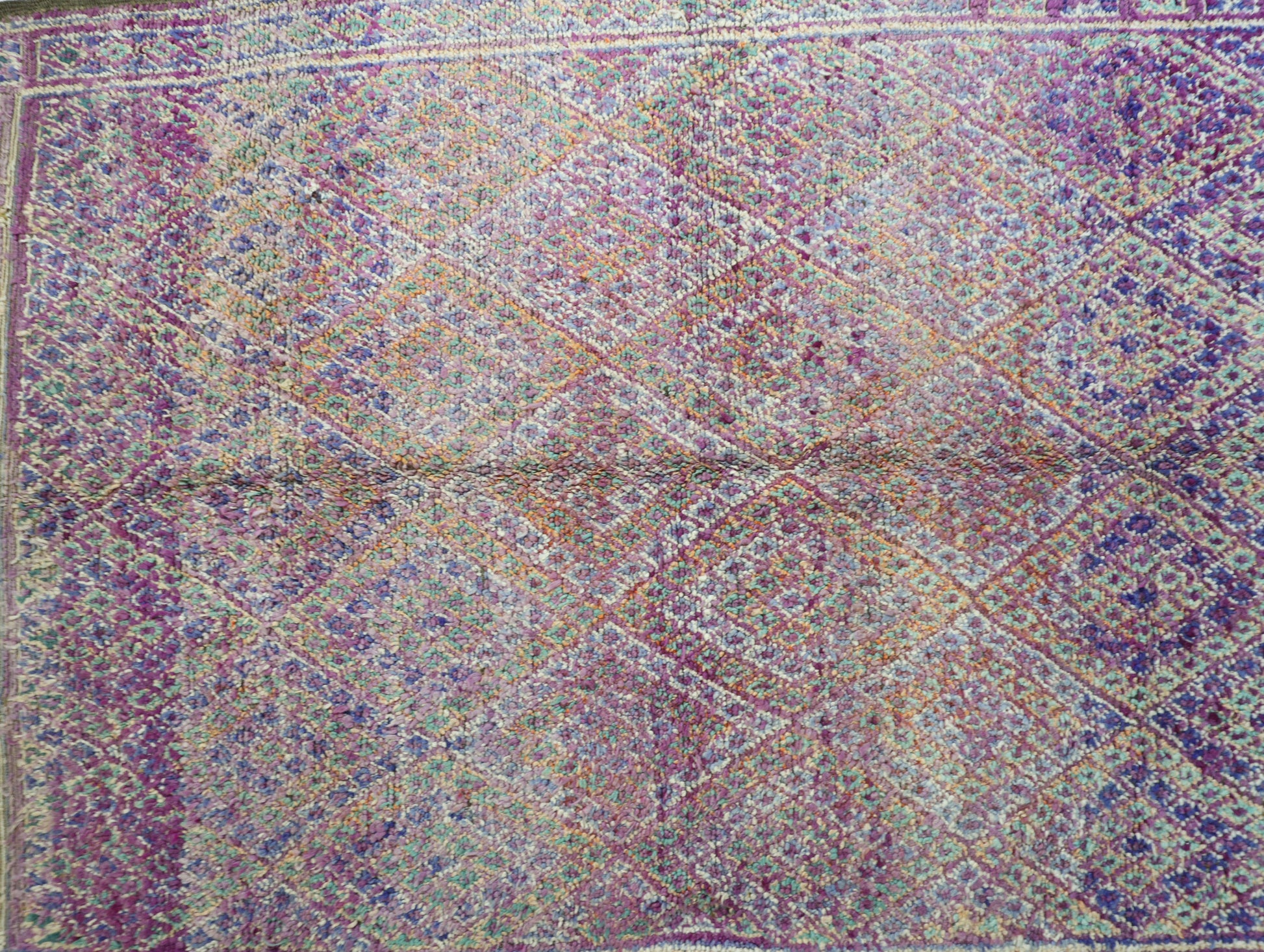 A truly unique vintage rug, meticulously hand-knotted by the Zemmour tribes from Morocco's Middle Atlas range. Size:  6'4" x9'4" (195 cm x 285 cm),