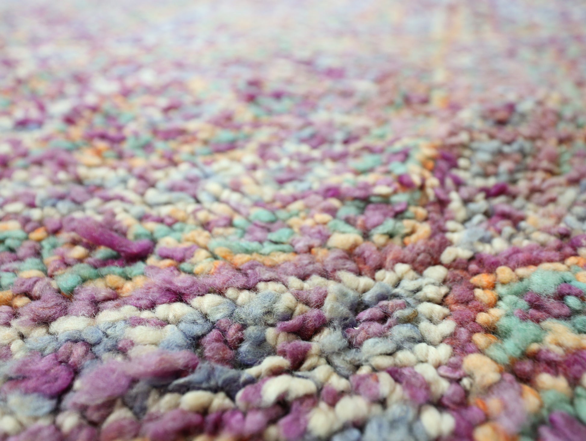 Locally sourced Moroccan wool produces a thick, strong pile with a soft feel underfoot. Having weathered time, this hand-processed wool exudes an untamed, nubby appearance, a testament to its journey through diverse environments.