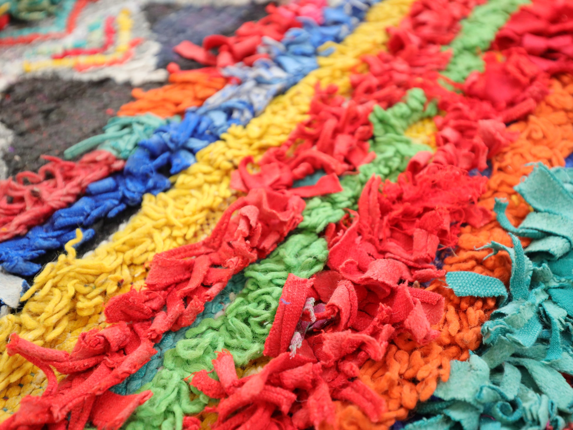 Sourced locally, Moroccan wool produces a dense, sturdy pile that feels soft and fluffy underfoot. While a touch of shedding is natural, it's a small price to pay for the cherished wild, tousled texture of the high pile—a comfort beloved for its durability, longevity, and the soft embrace it offers with every step.