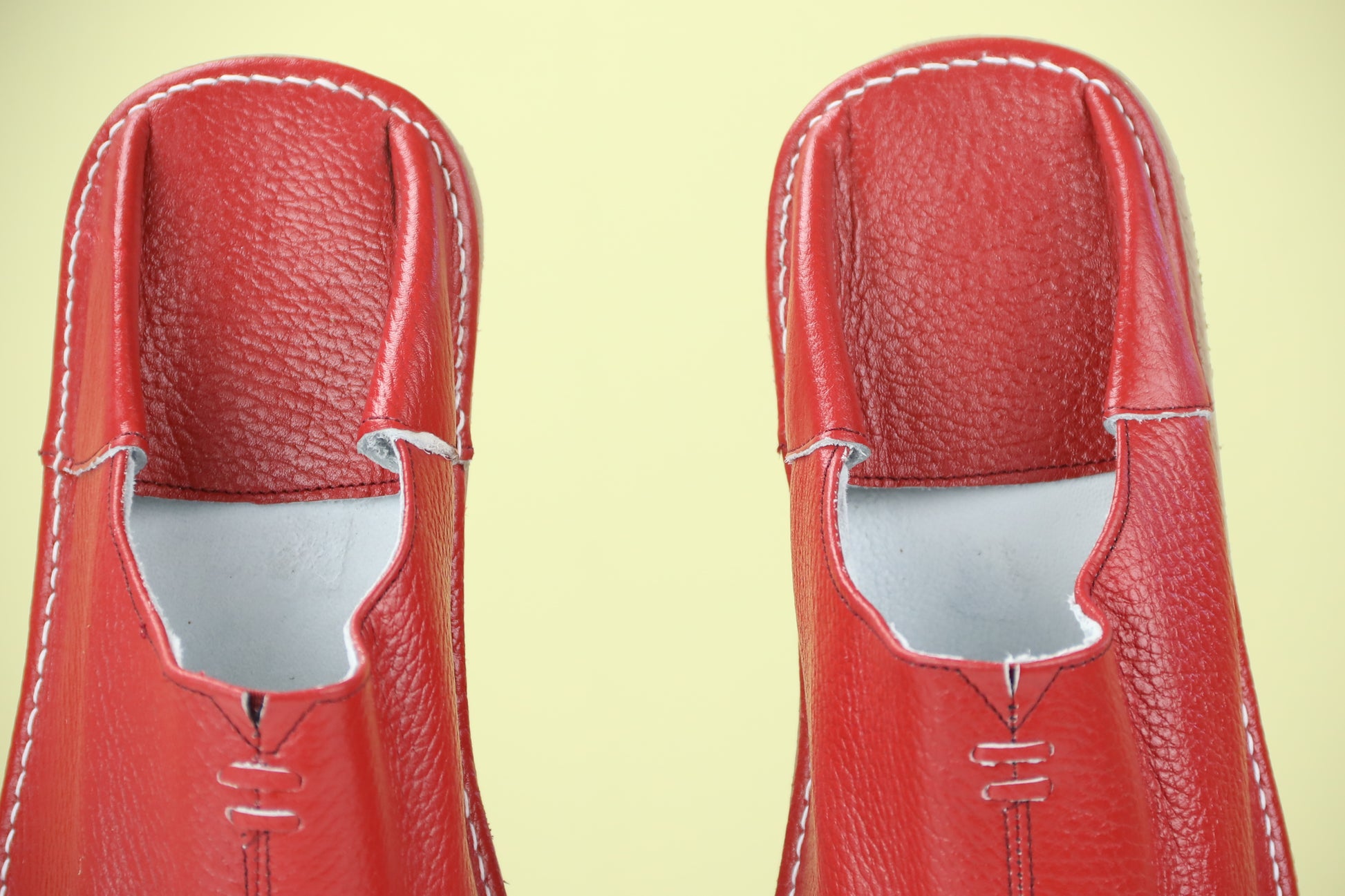 Crafted from soft leather with intricate embroidery, these iconic slippers blend traditional design with modern comfort for a touch of North African elegance.