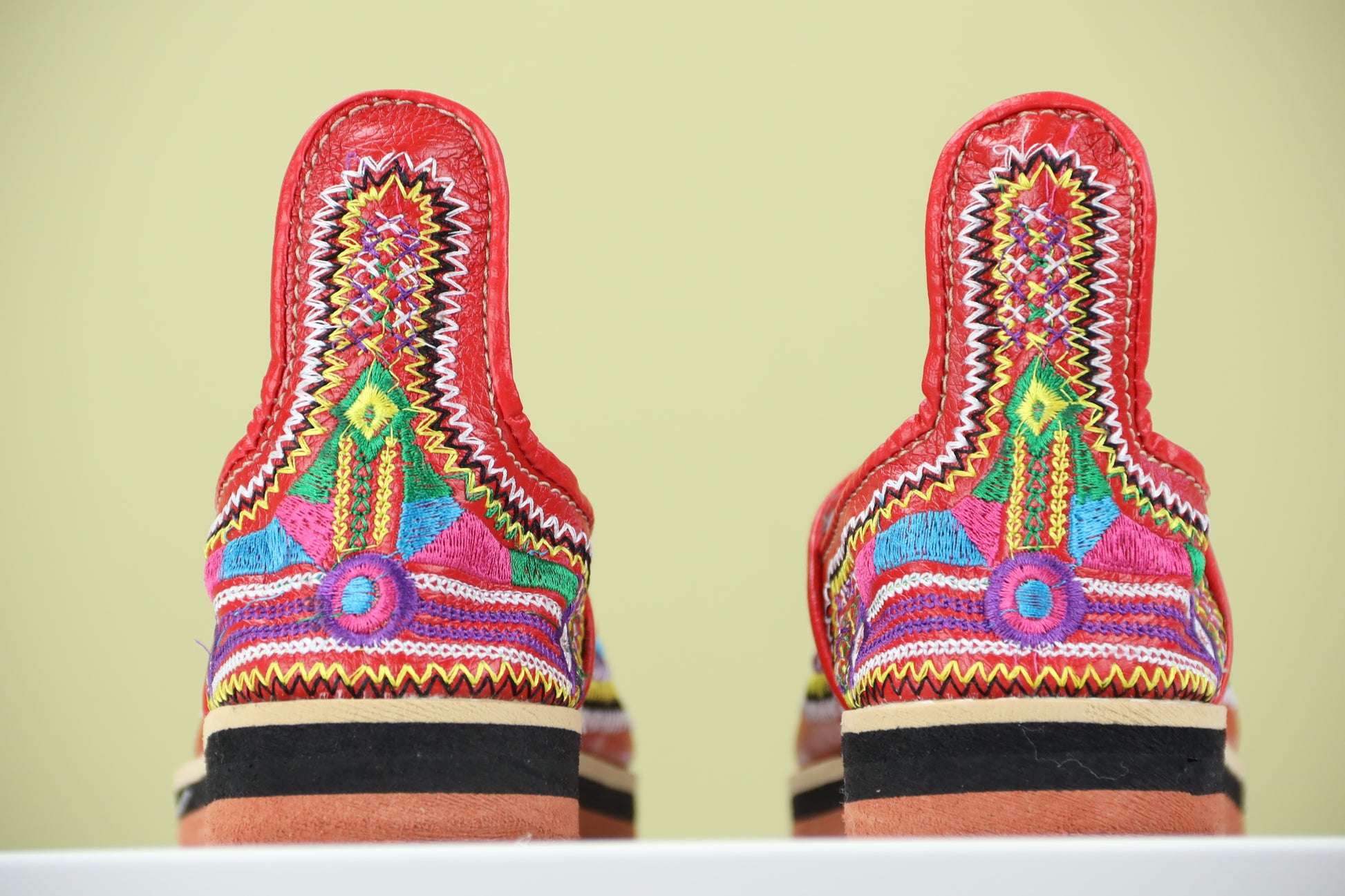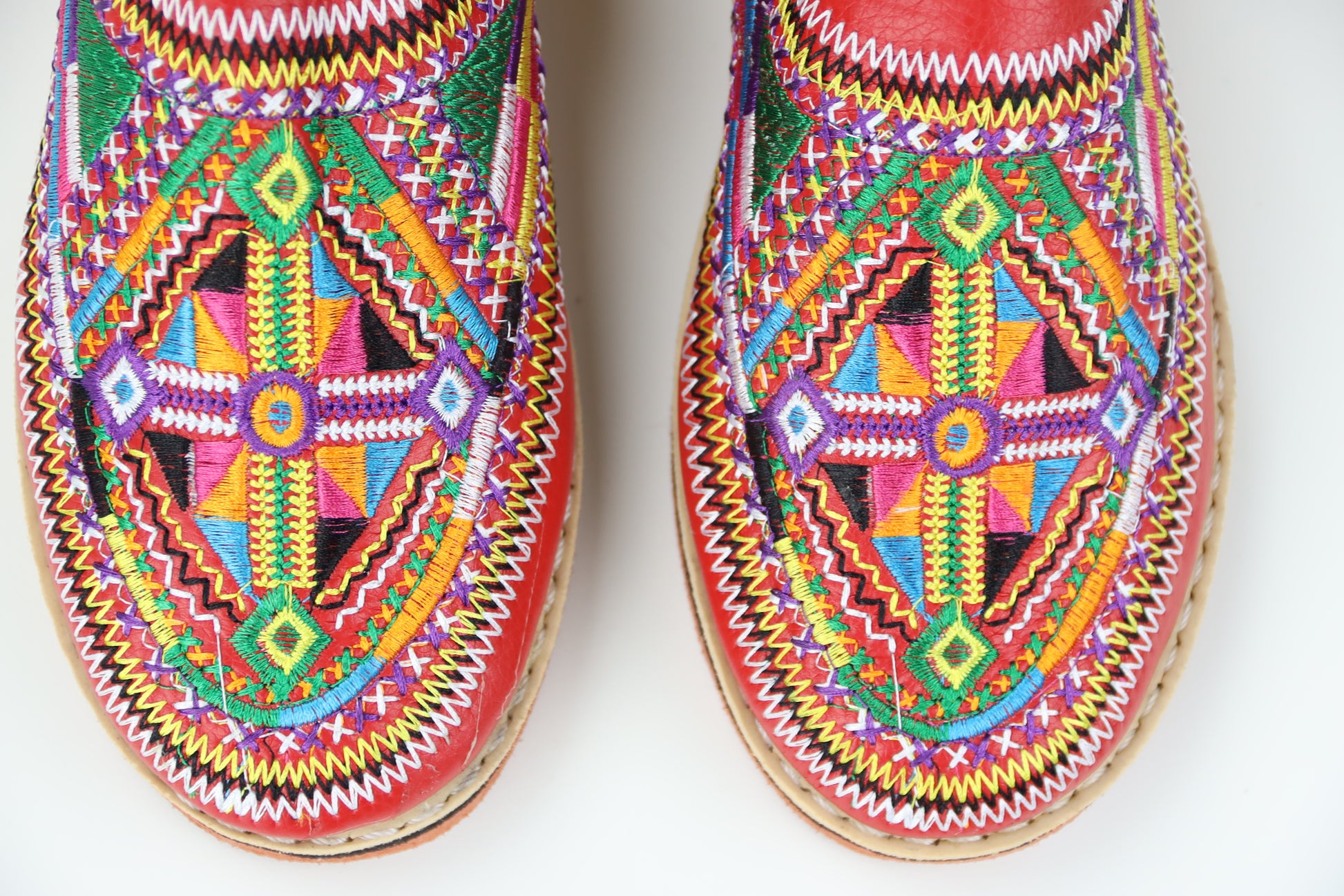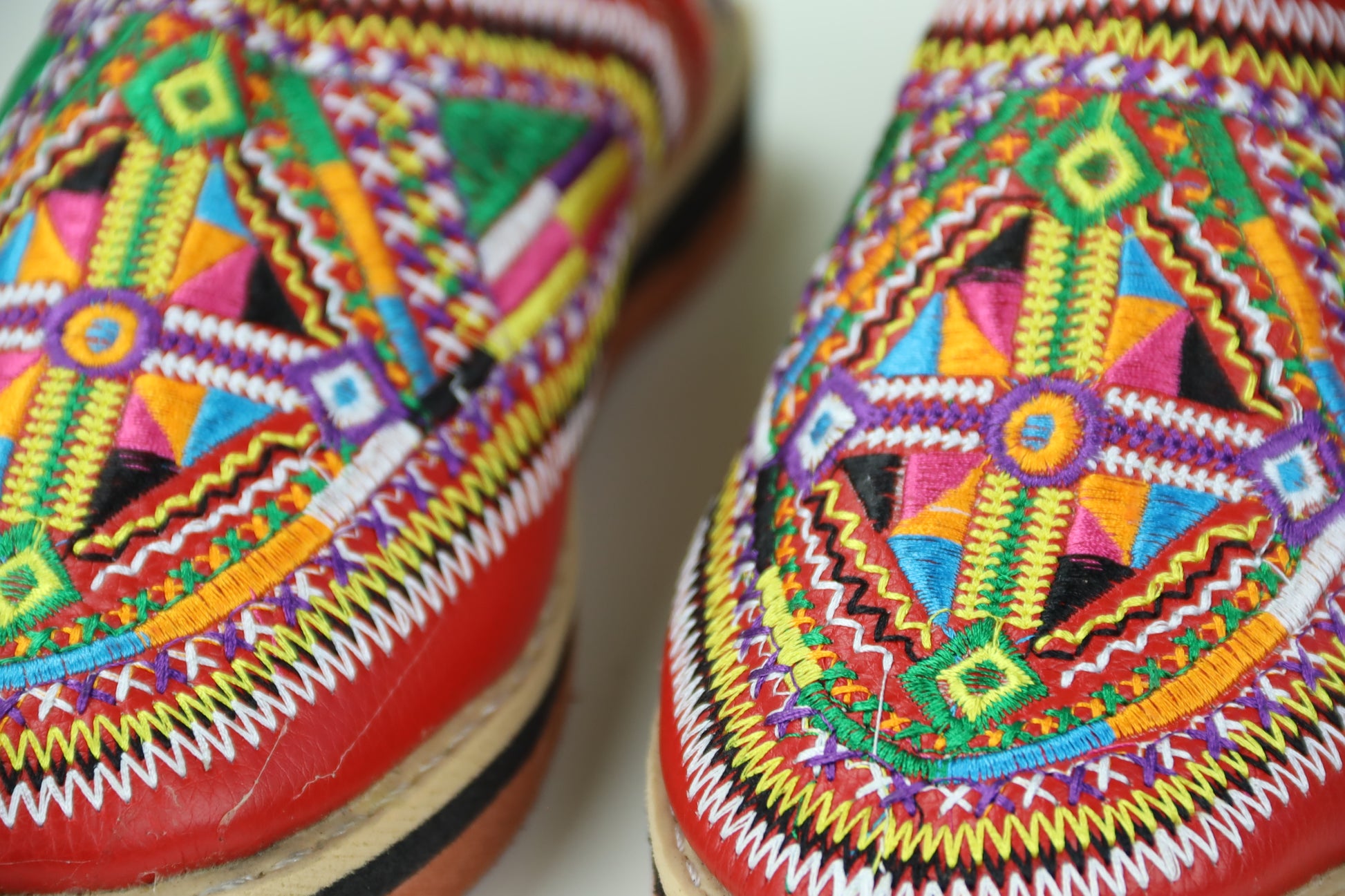 Crafted from soft leather with intricate embroidery, these iconic slippers blend traditional design with modern comfort for a touch of North African elegance.