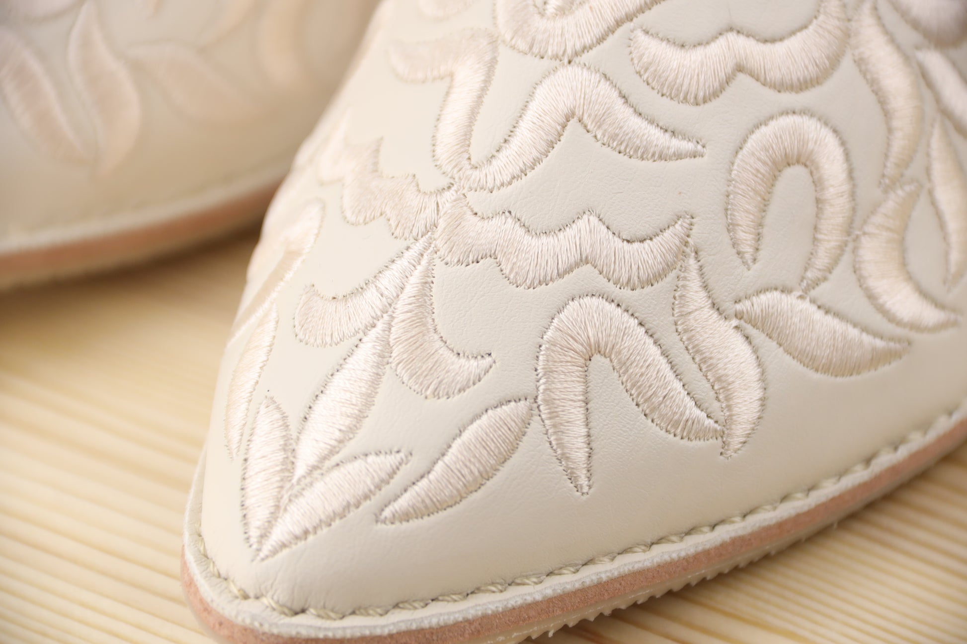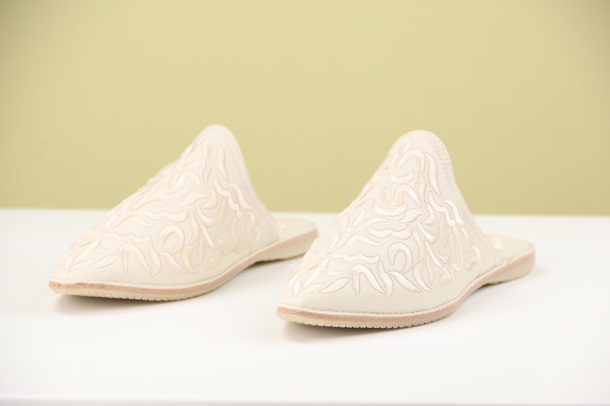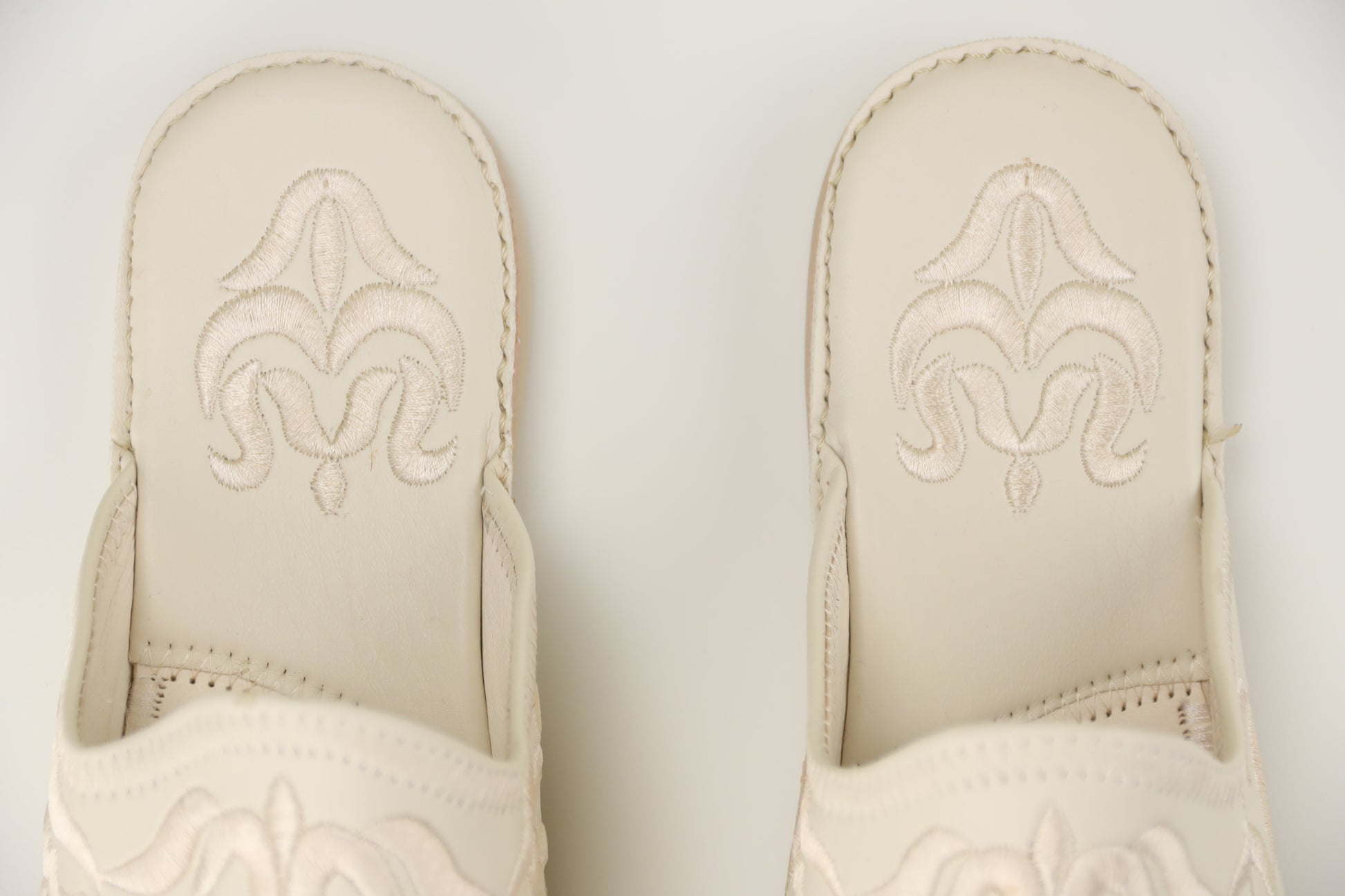 Crafted from soft leather with intricate embroidery, these iconic slippers blend traditional design with modern comfort for a touch of North African elegance.