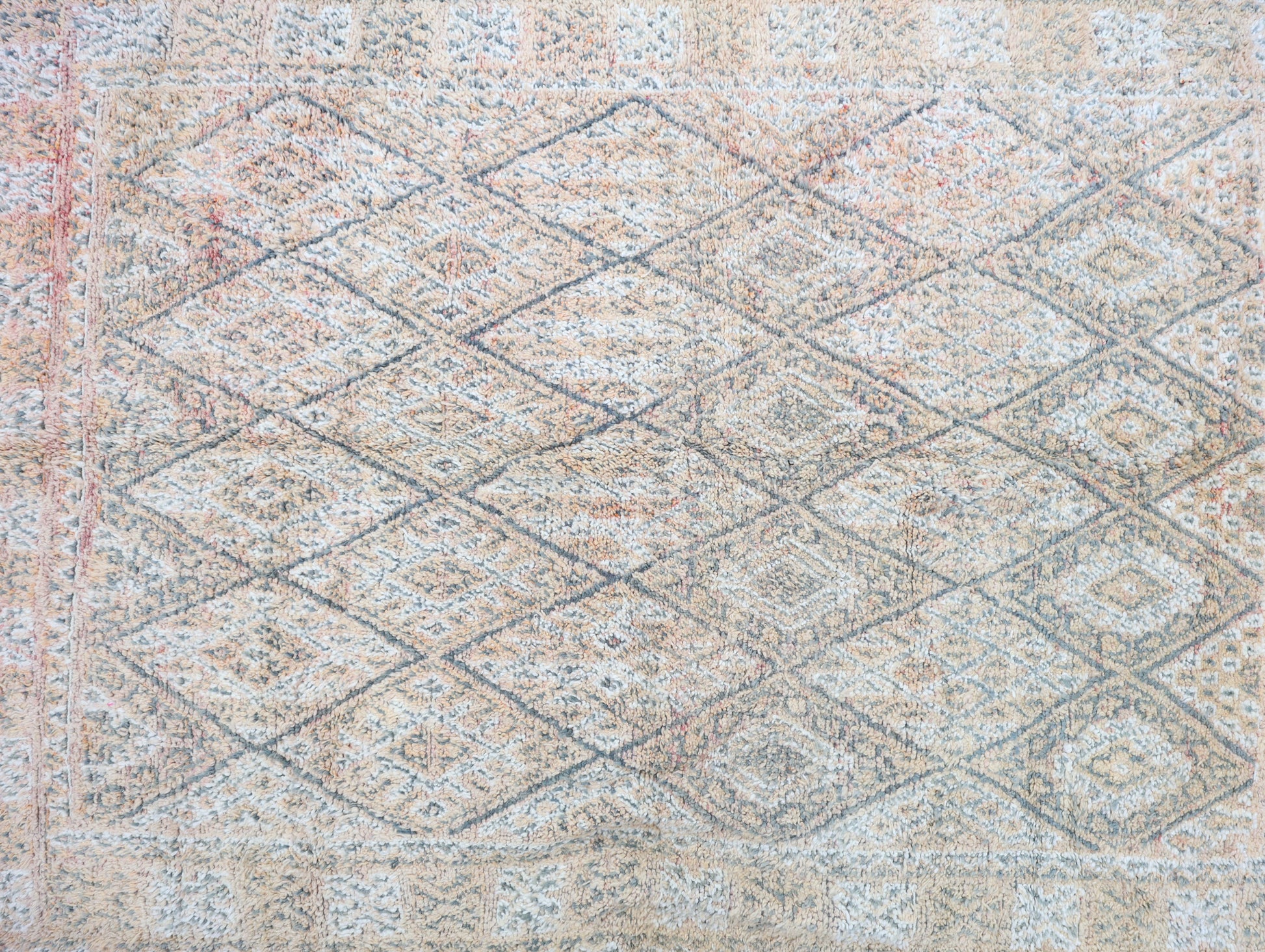 A truly unique vintage rug, meticulously hand-knotted by the Zemmour tribes from Morocco's Middle Atlas range. Size: 7'0" x10'5" (214 cm x 320 cm),