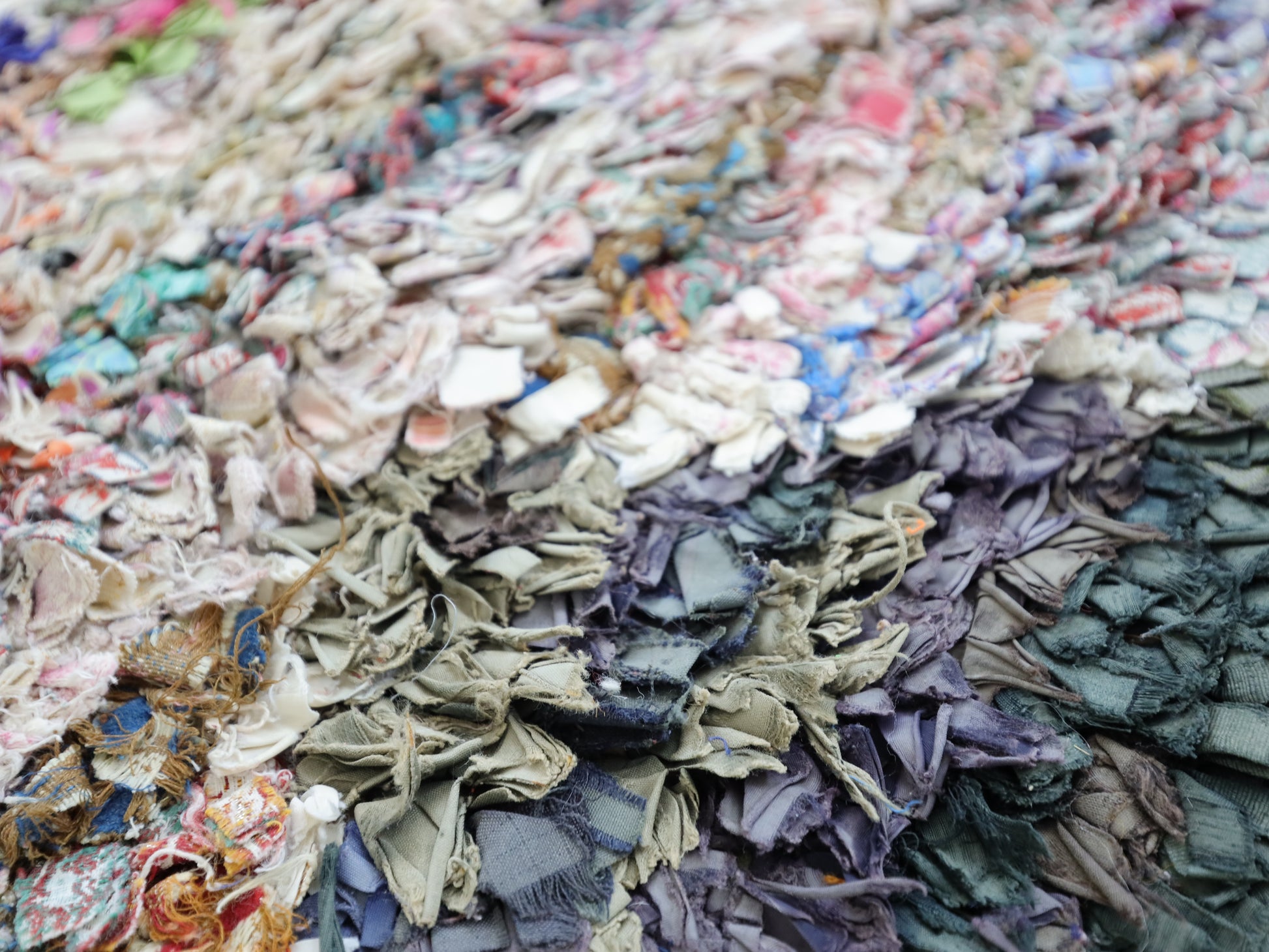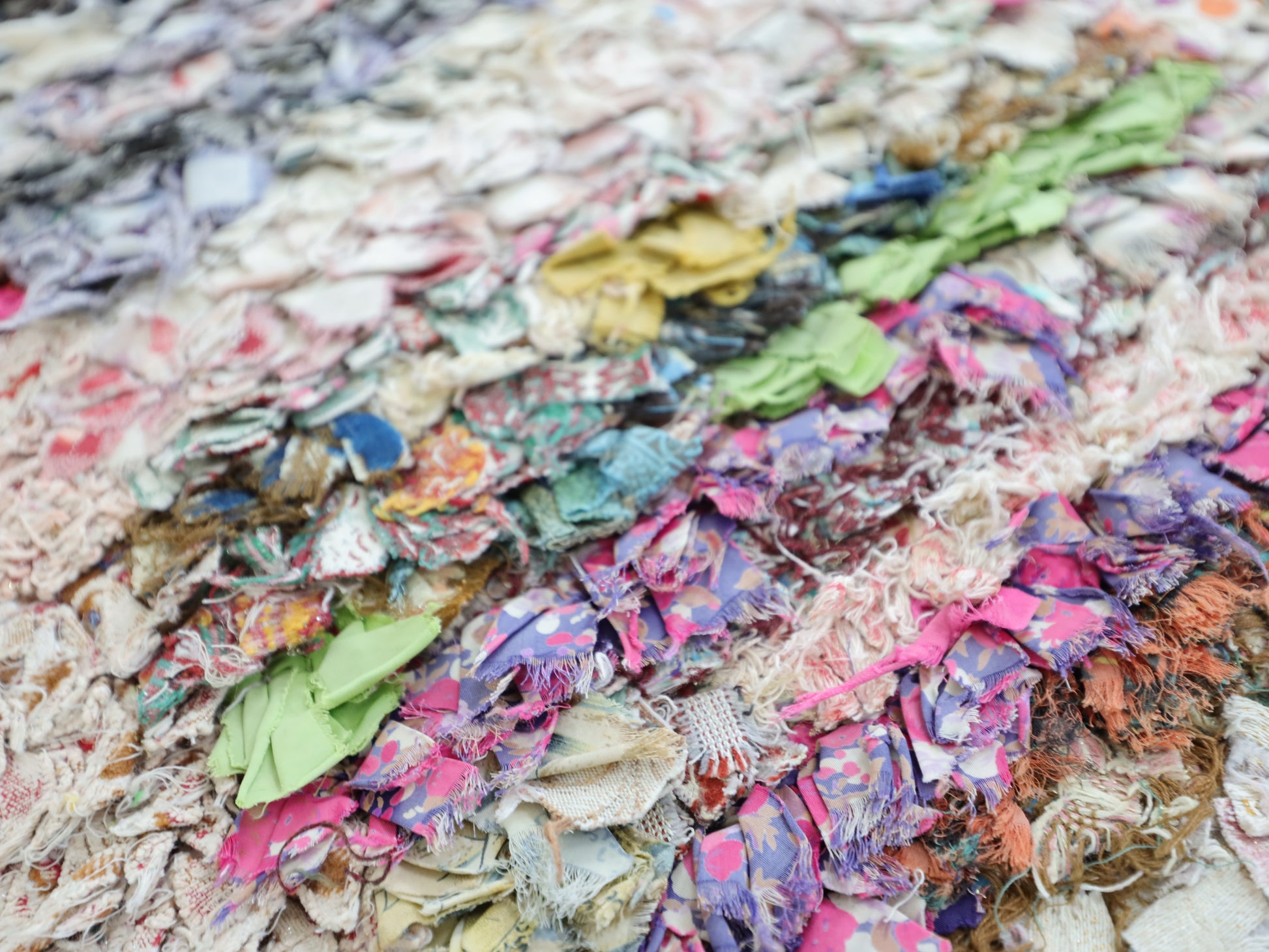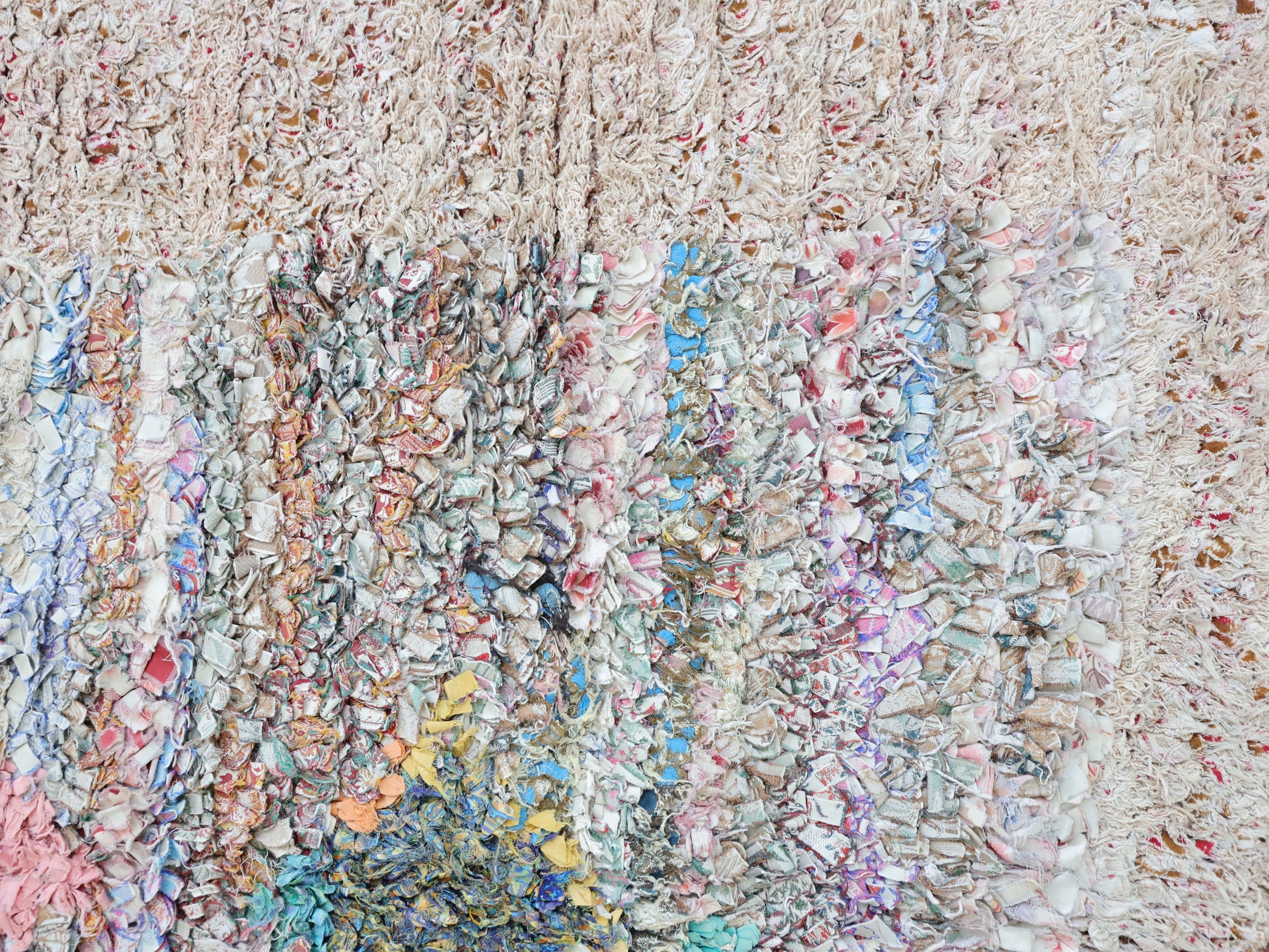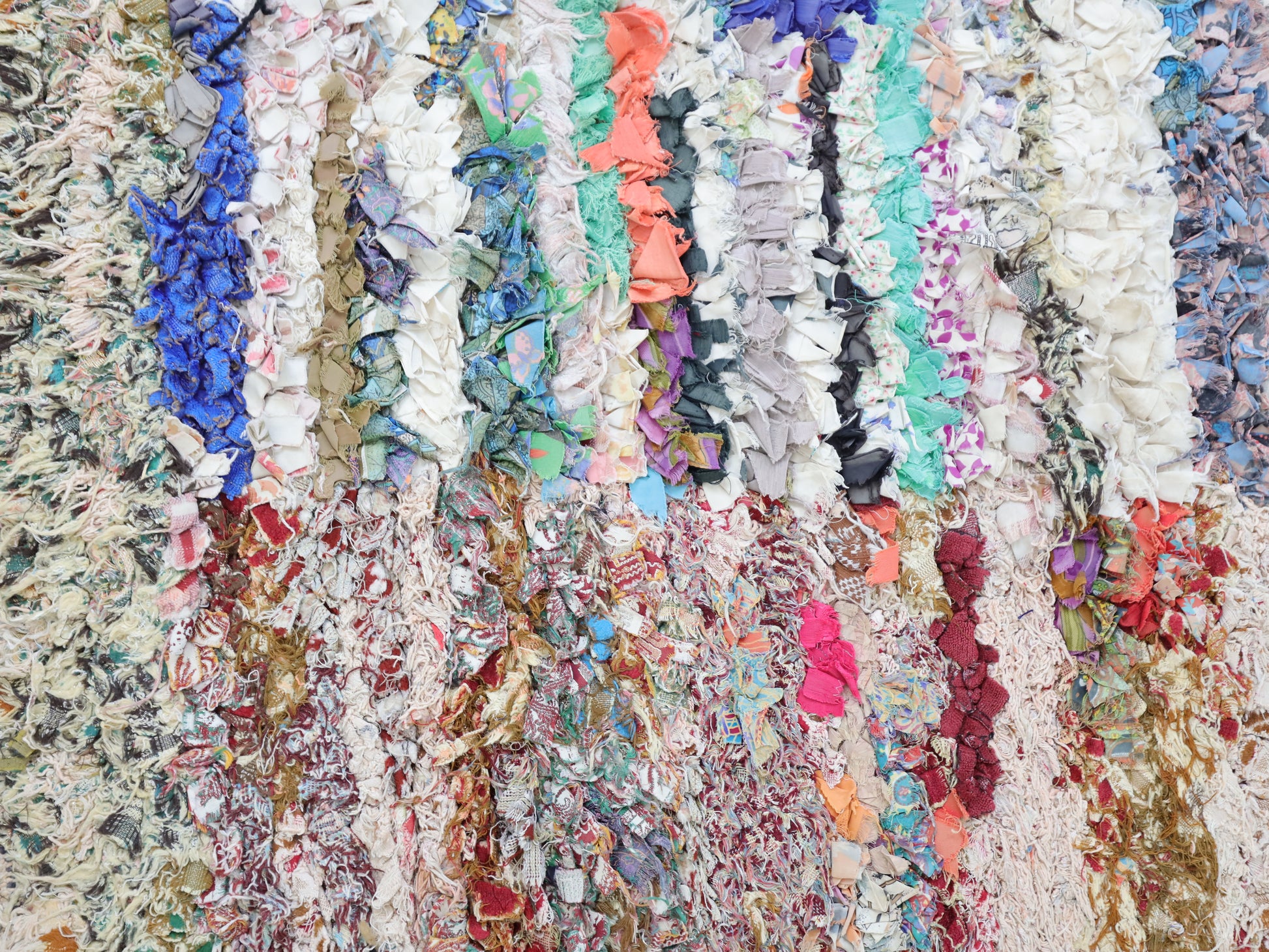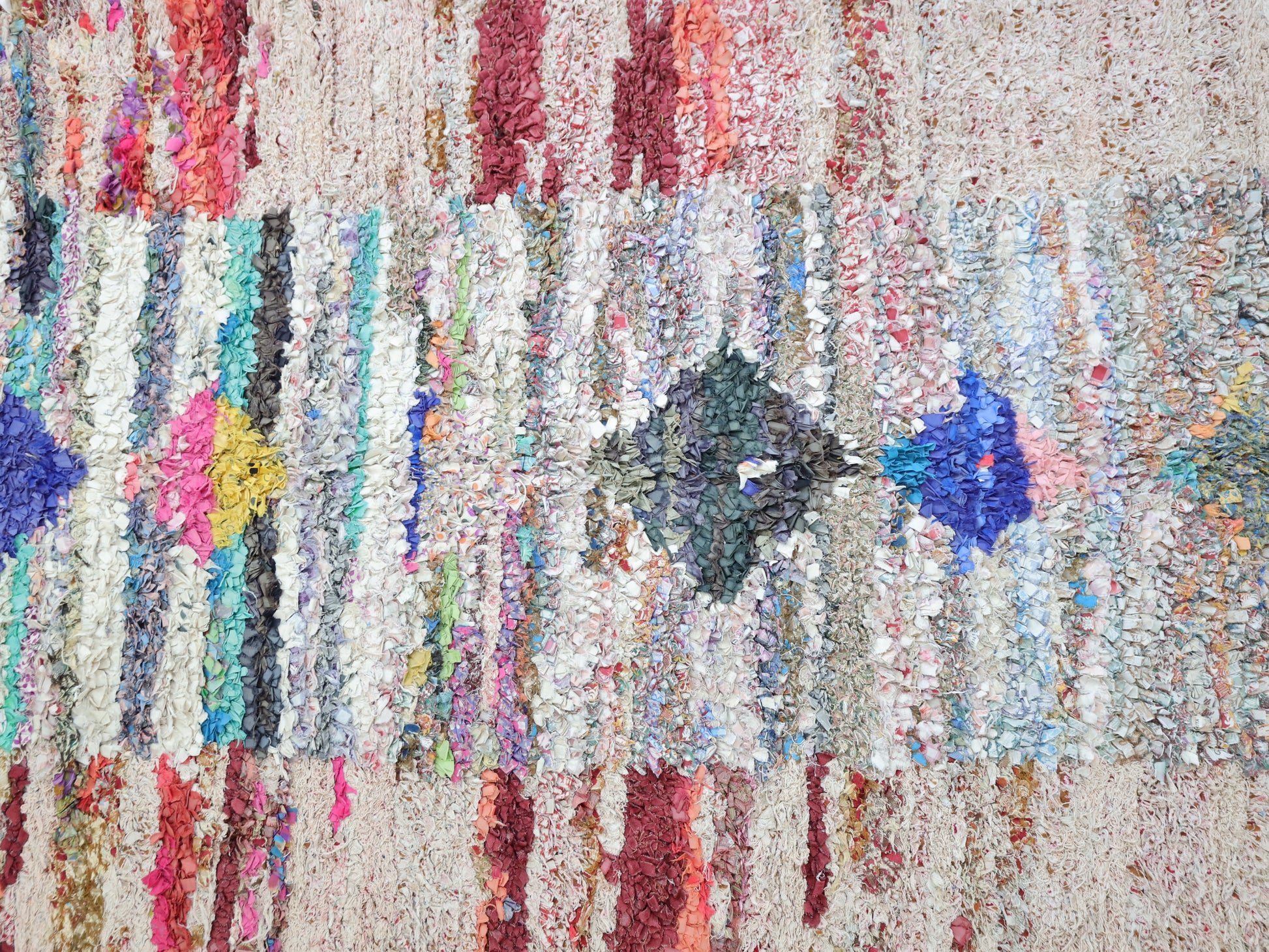An unparalleled vintage masterpiece, carefully crafted by Berber Tribes in the Boucherouite style using upcycled textiles. Measurements: 4'7" x 9'4" (144 cm x 285 cm),