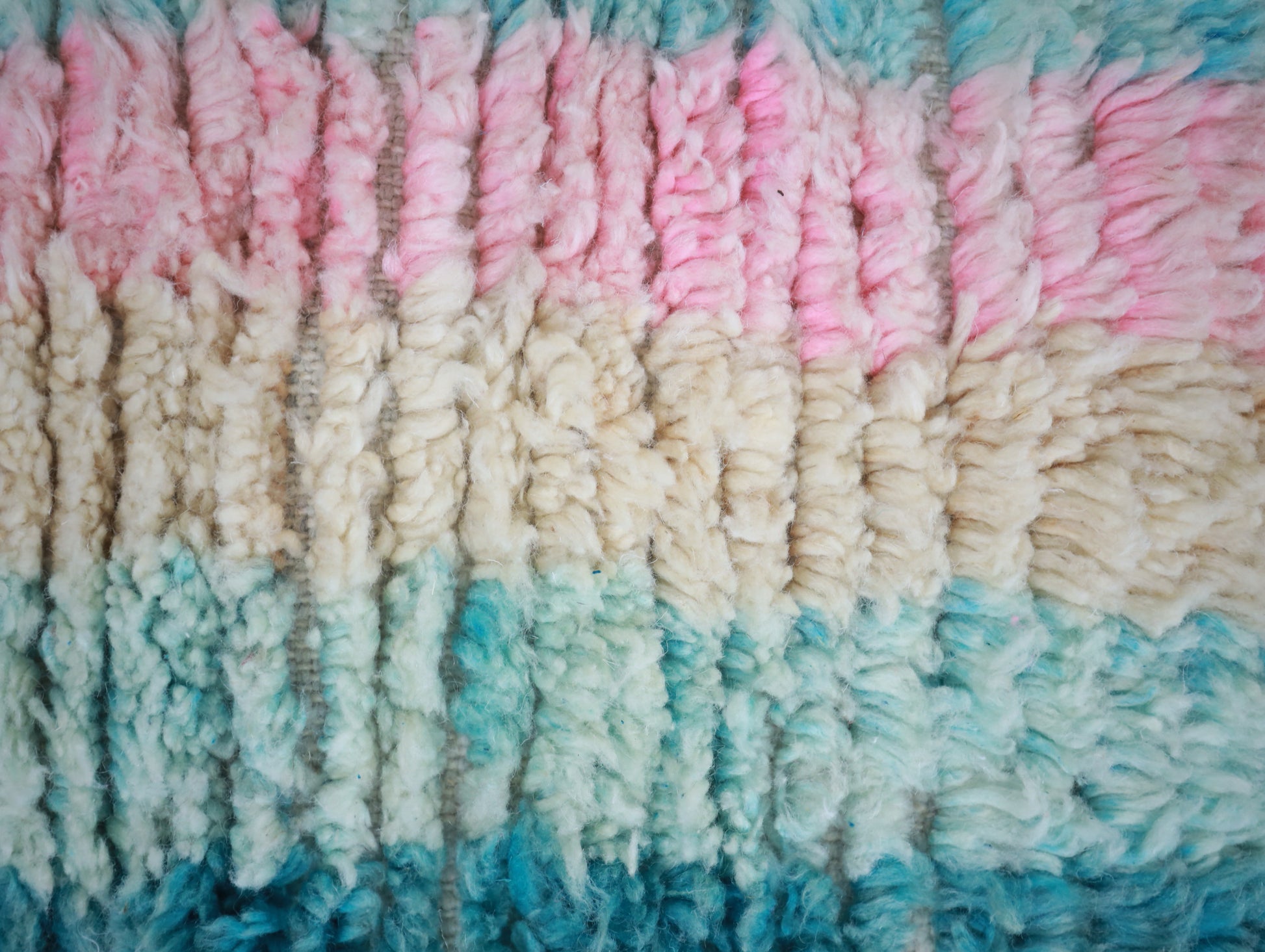 Wool, a sacred material for the Amazigh (Berber) people, forms the cornerstone of Moroccan rug design. Durable, long-lasting, and soft underfoot, wool is both functional and comfortable. In this piece, the wool pile is expertly knotted onto a wool foundation, adding substance and allowing it to gracefully embrace the floor.