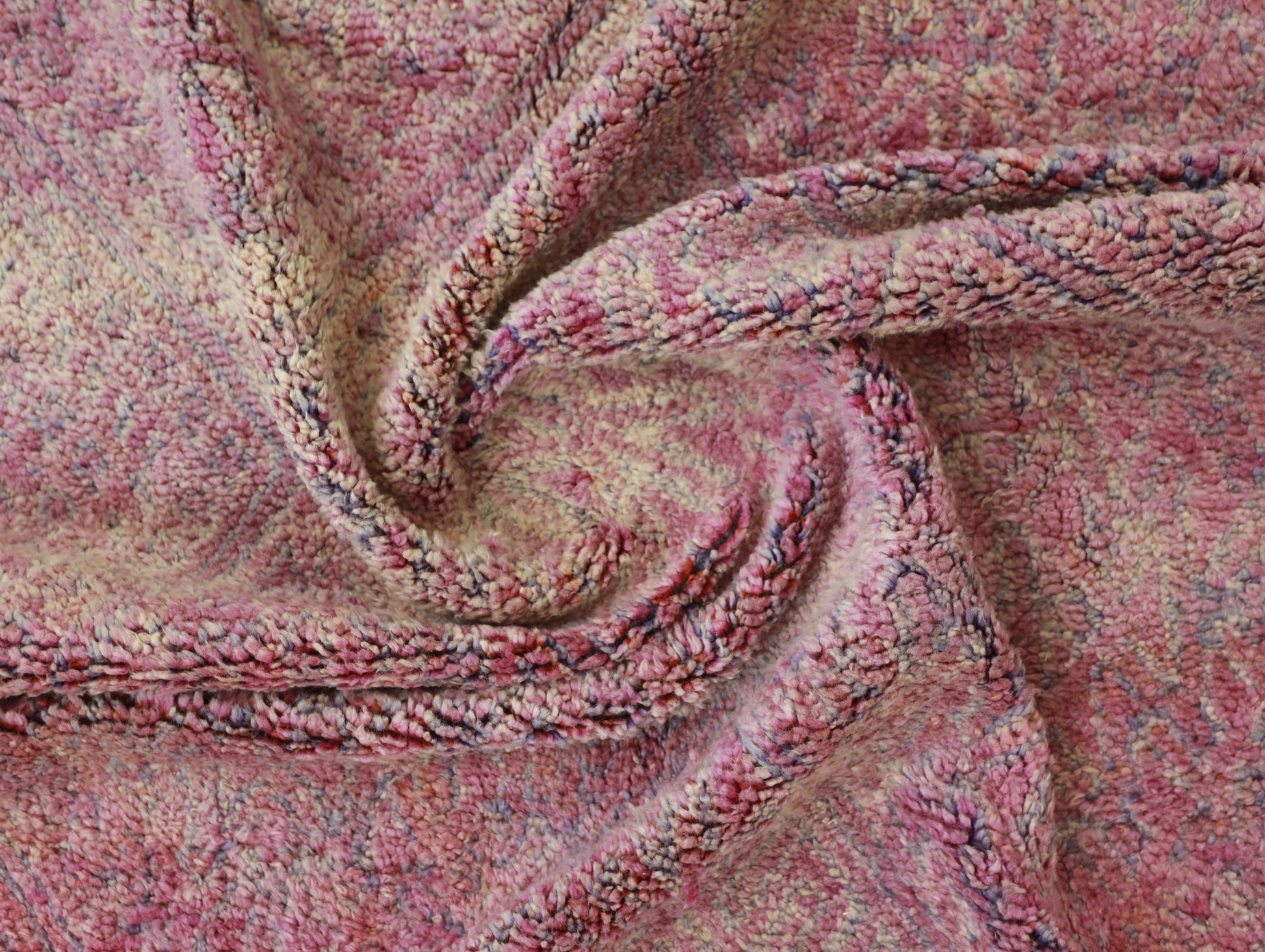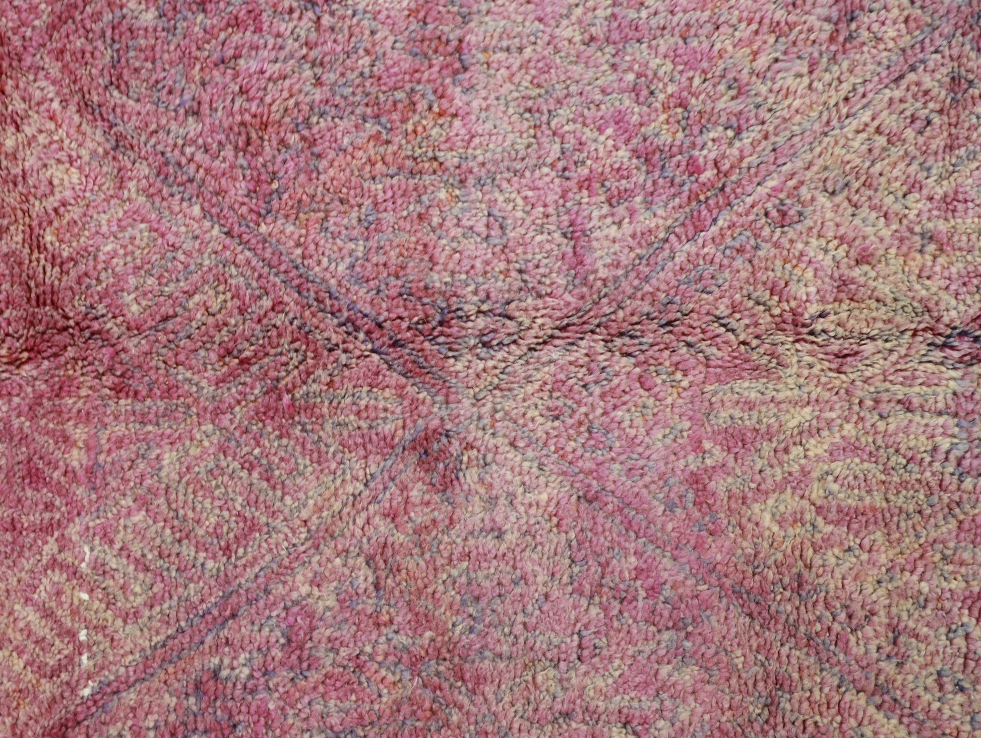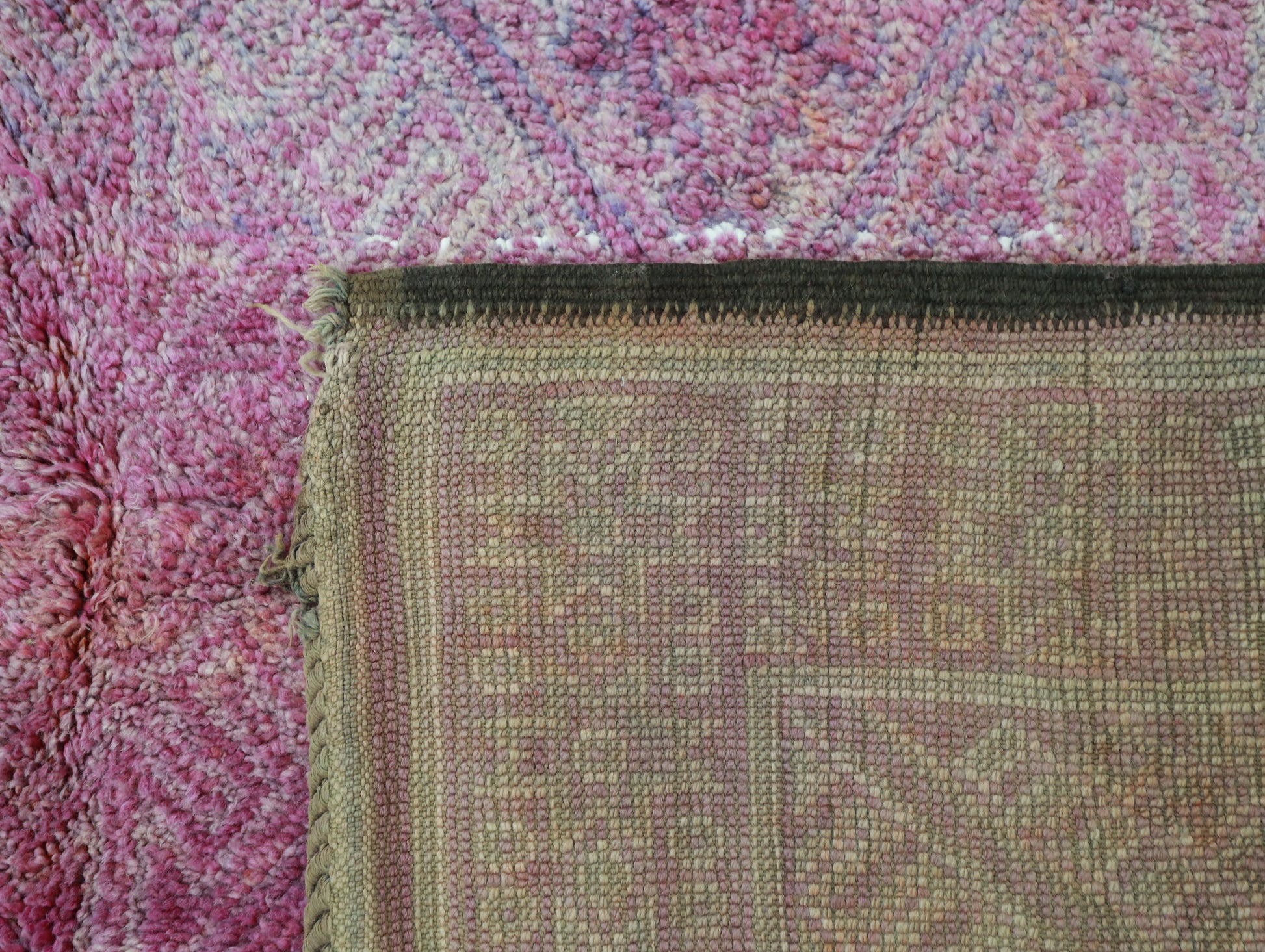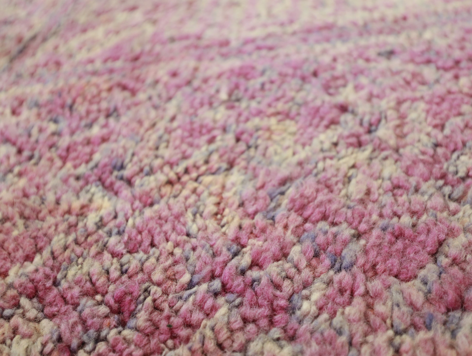 Wool, a sacred material for the Amazigh (Berber) people, forms the cornerstone of Moroccan rug design. Durable, long-lasting, and soft underfoot, wool is both functional and comfortable. In this piece, the wool pile is expertly knotted onto a wool foundation, adding substance and allowing it to gracefully embrace the floor.