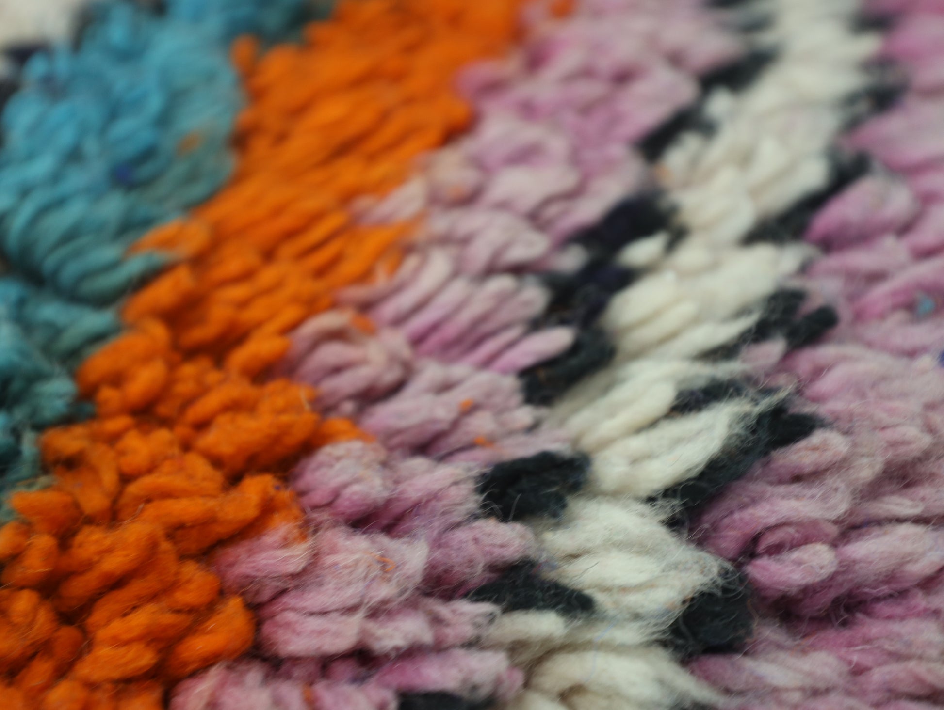 A singular moroccan rug, meticulously woven in the small city of Boujaad in Morocco's Chaouia-Ouardigha region.