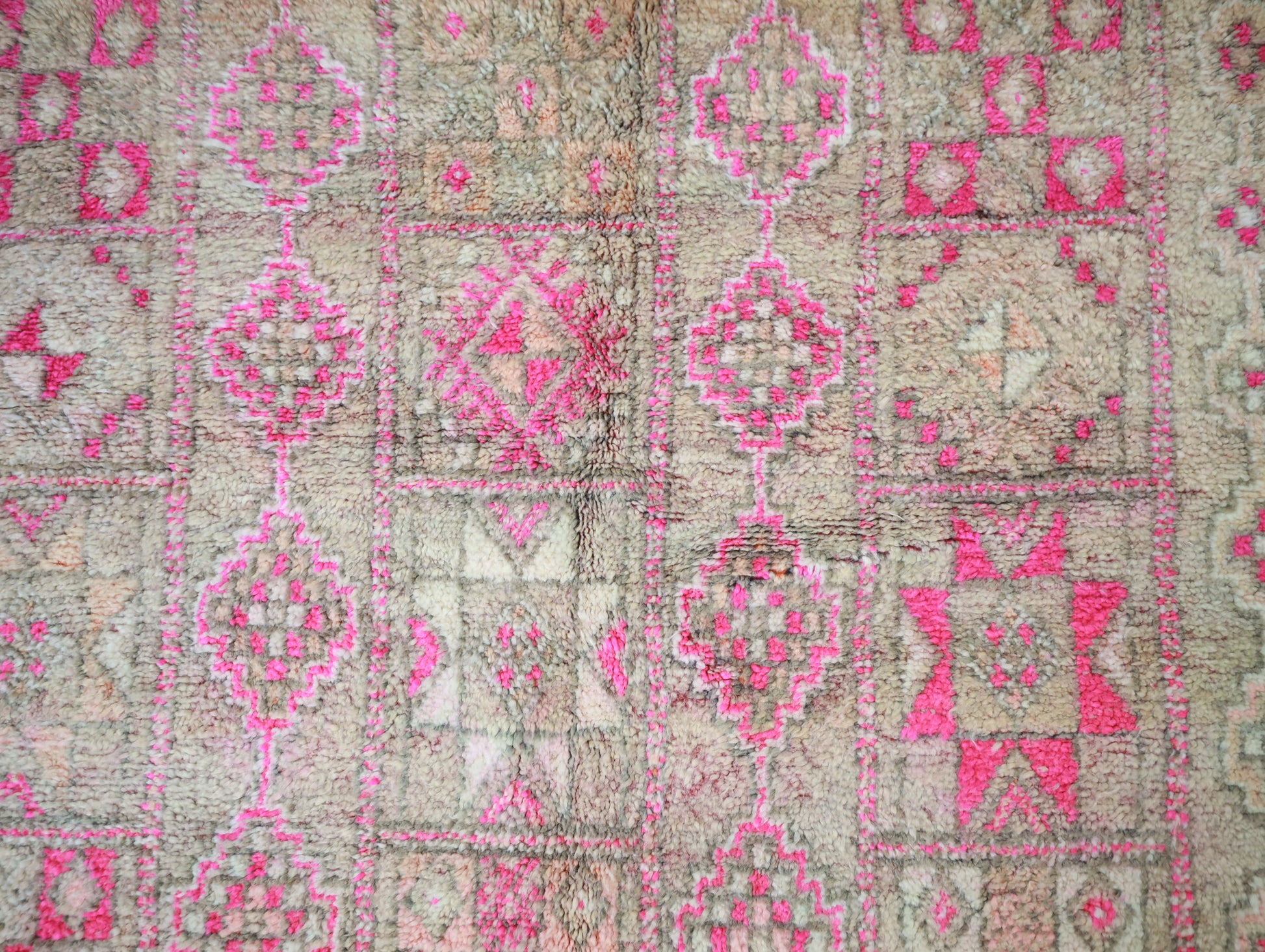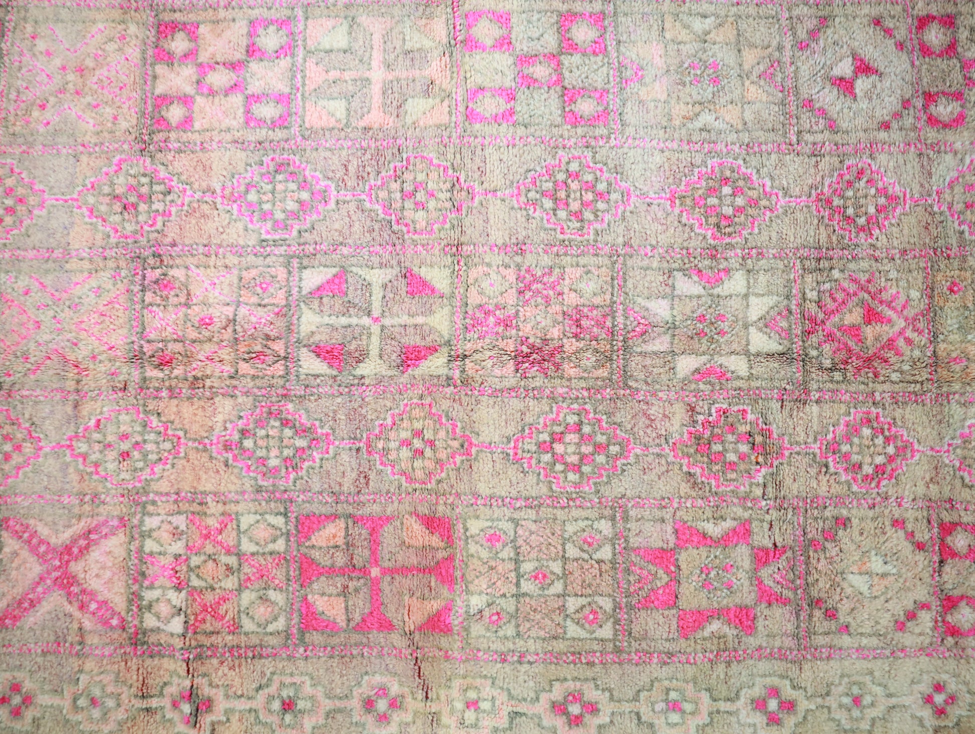 A truly unique vintage rug, meticulously hand-knotted by the Zemmour tribes from Morocco's Middle Atlas range. Size:  6'2" x9'5" (190 cm x 291cm),