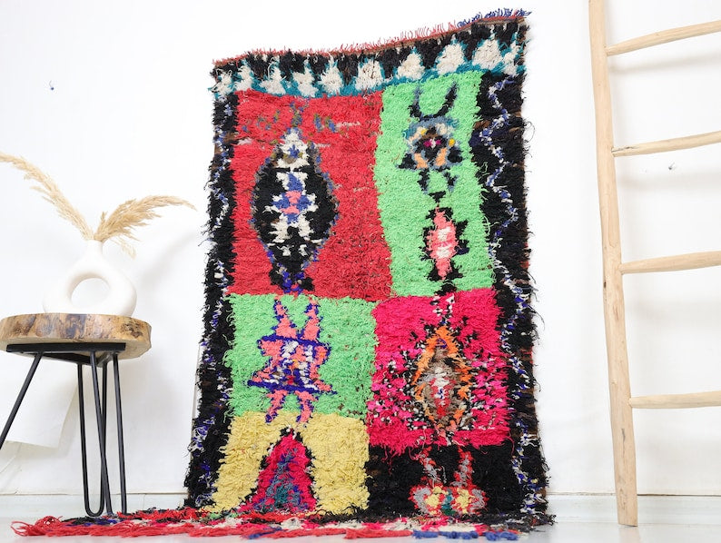 Azilal rugs boast abstract, painterly designs reminiscent of rugs from Ourika. What sets them apart is a vibrant color palette, achieved through the incorporation of cotton alongside wool..
