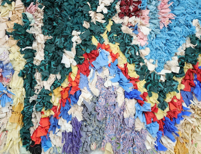 Azilal rugs boast abstract, painterly designs reminiscent of rugs from Ourika. What sets them apart is a vibrant color palette, achieved through the incorporation of cotton alongside wool..