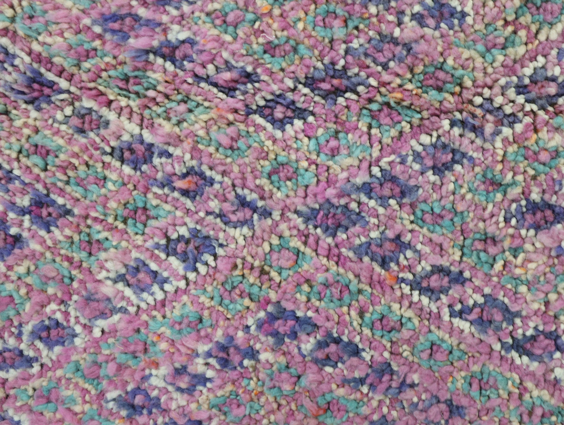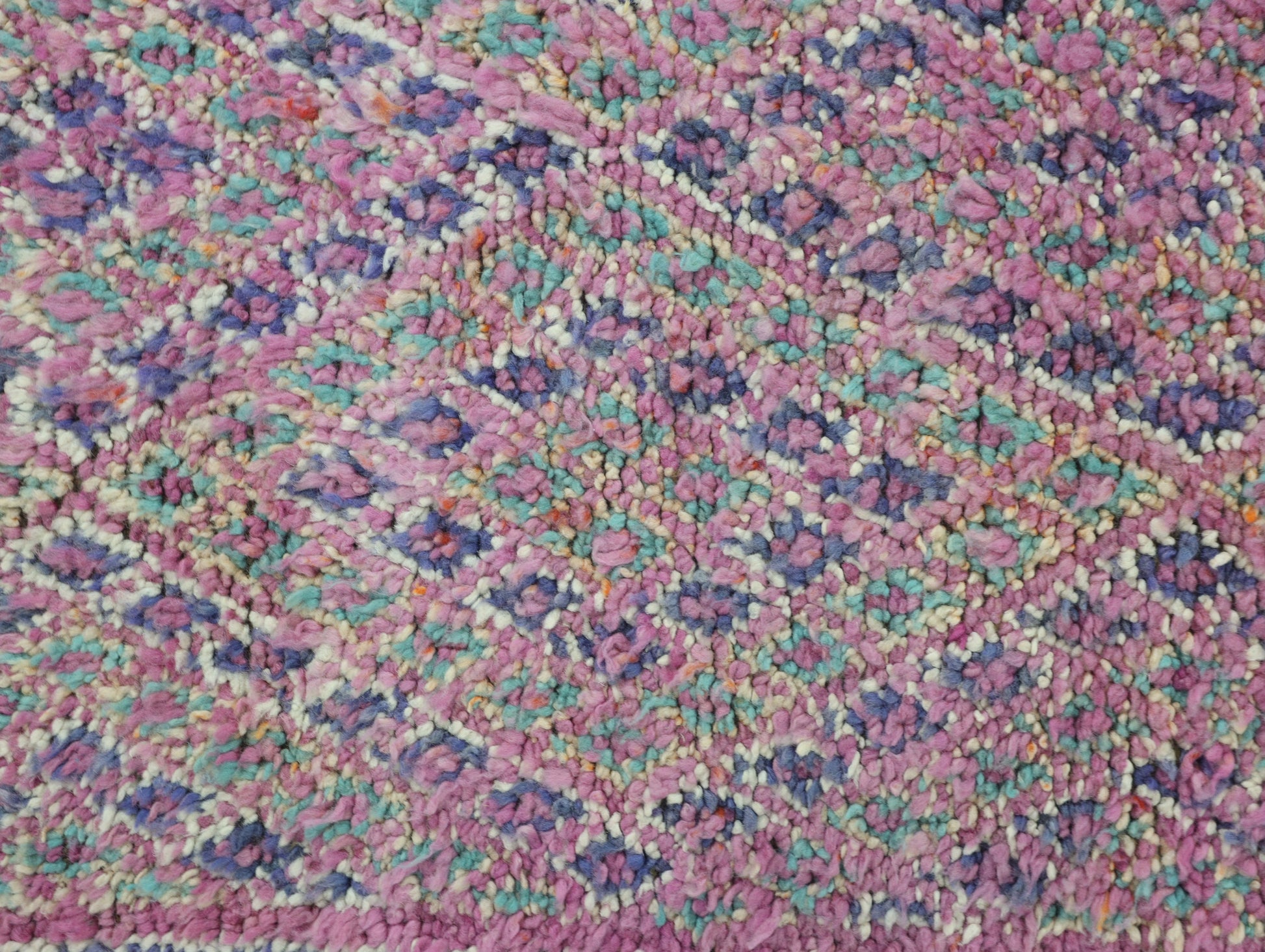 Wool, a sacred material for the Amazigh (Berber) people, forms the cornerstone of Moroccan rug design. Durable, long-lasting, and soft underfoot, wool is both functional and comfortable. In this piece, the wool pile is expertly knotted onto a wool foundation, adding substance and allowing it to gracefully embrace the floor.