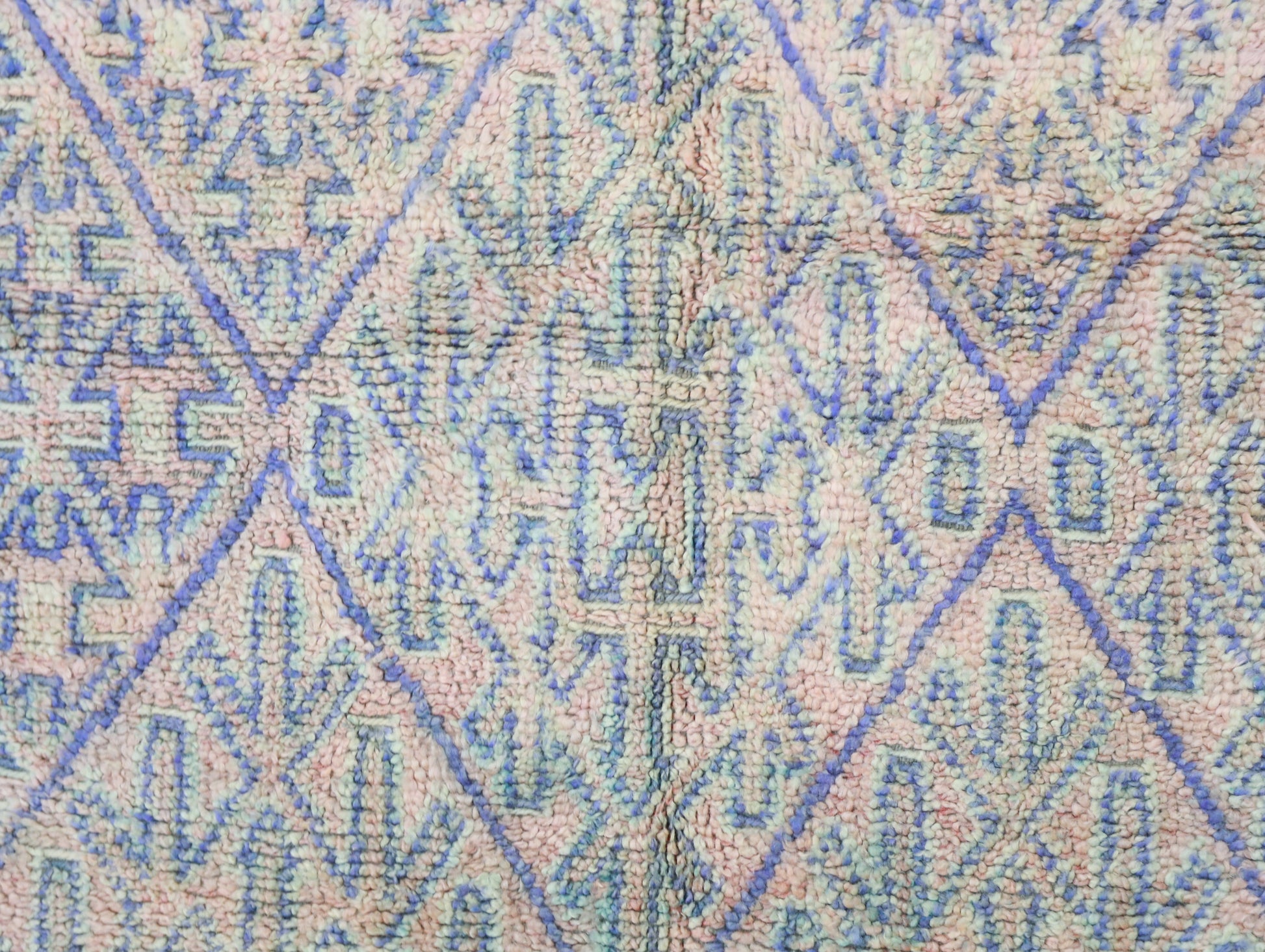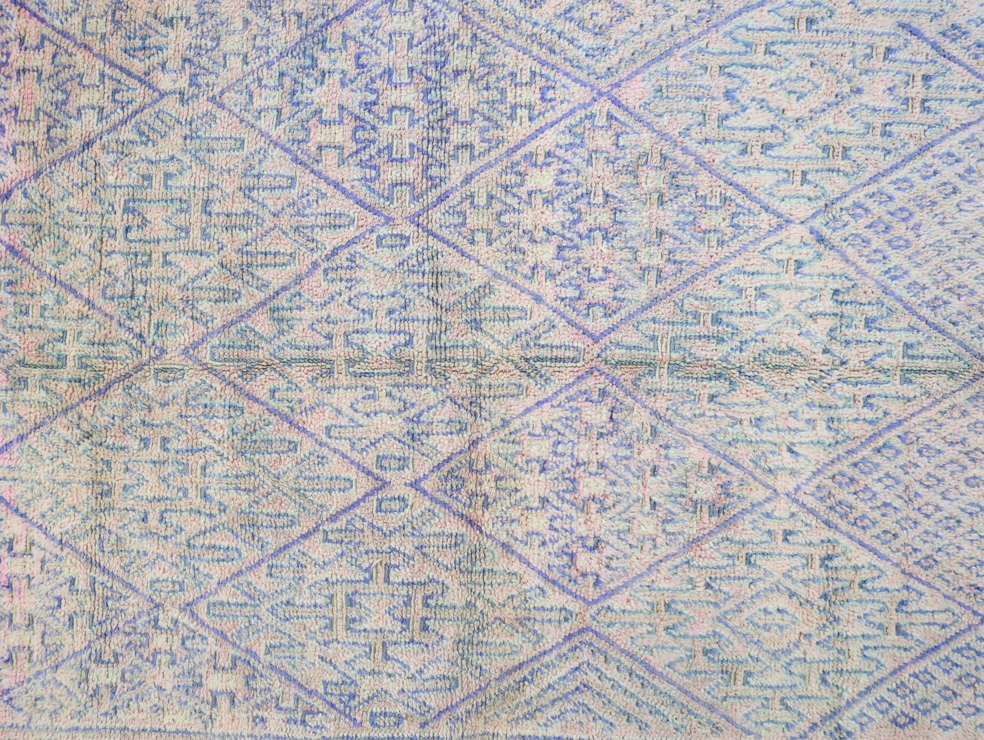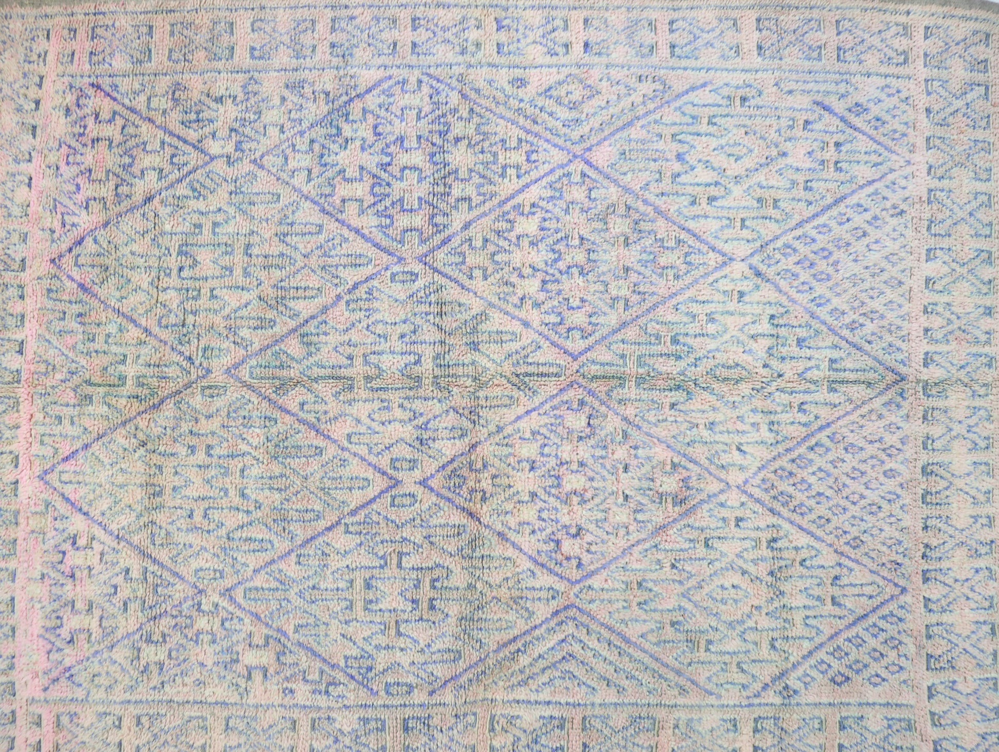 A truly unique vintage rug, meticulously hand-knotted by the Zemmour tribes from Morocco's Middle Atlas range. Size:  6'6" x9'2" (200 cm x280 cm),