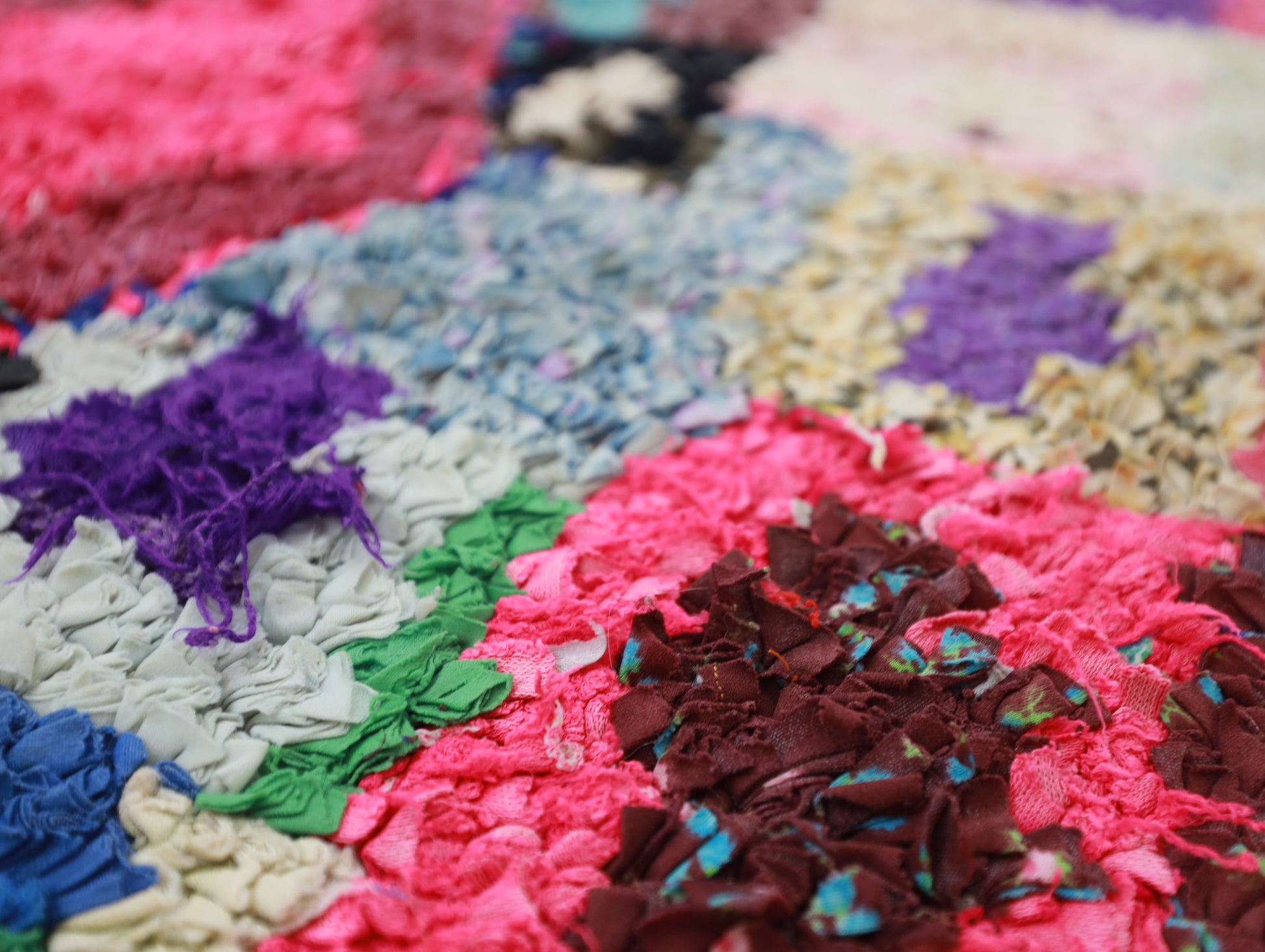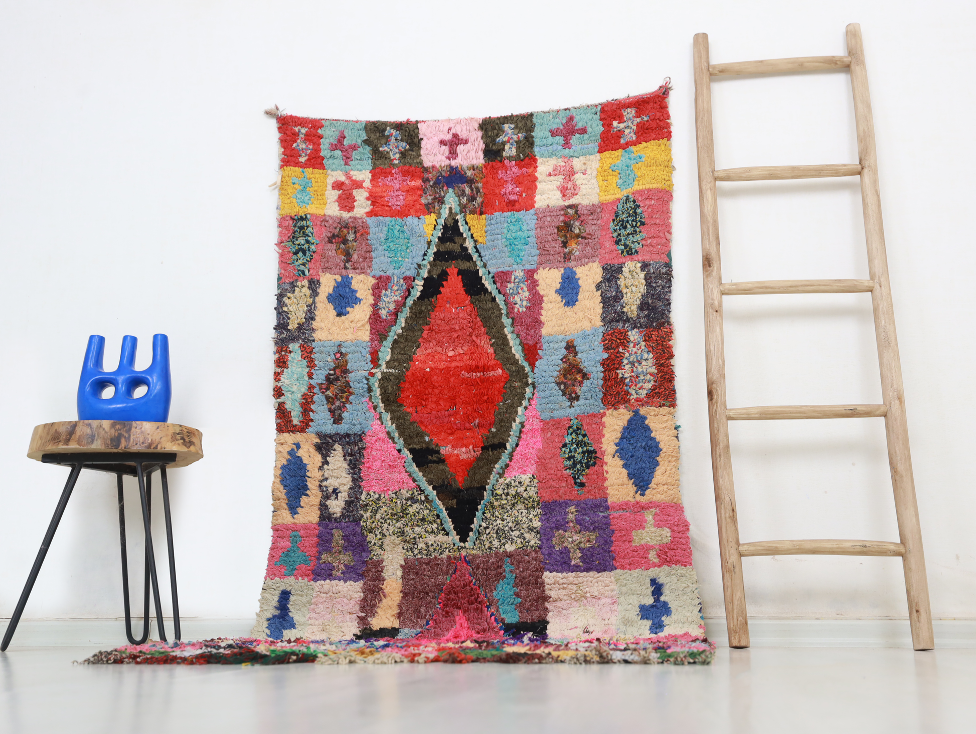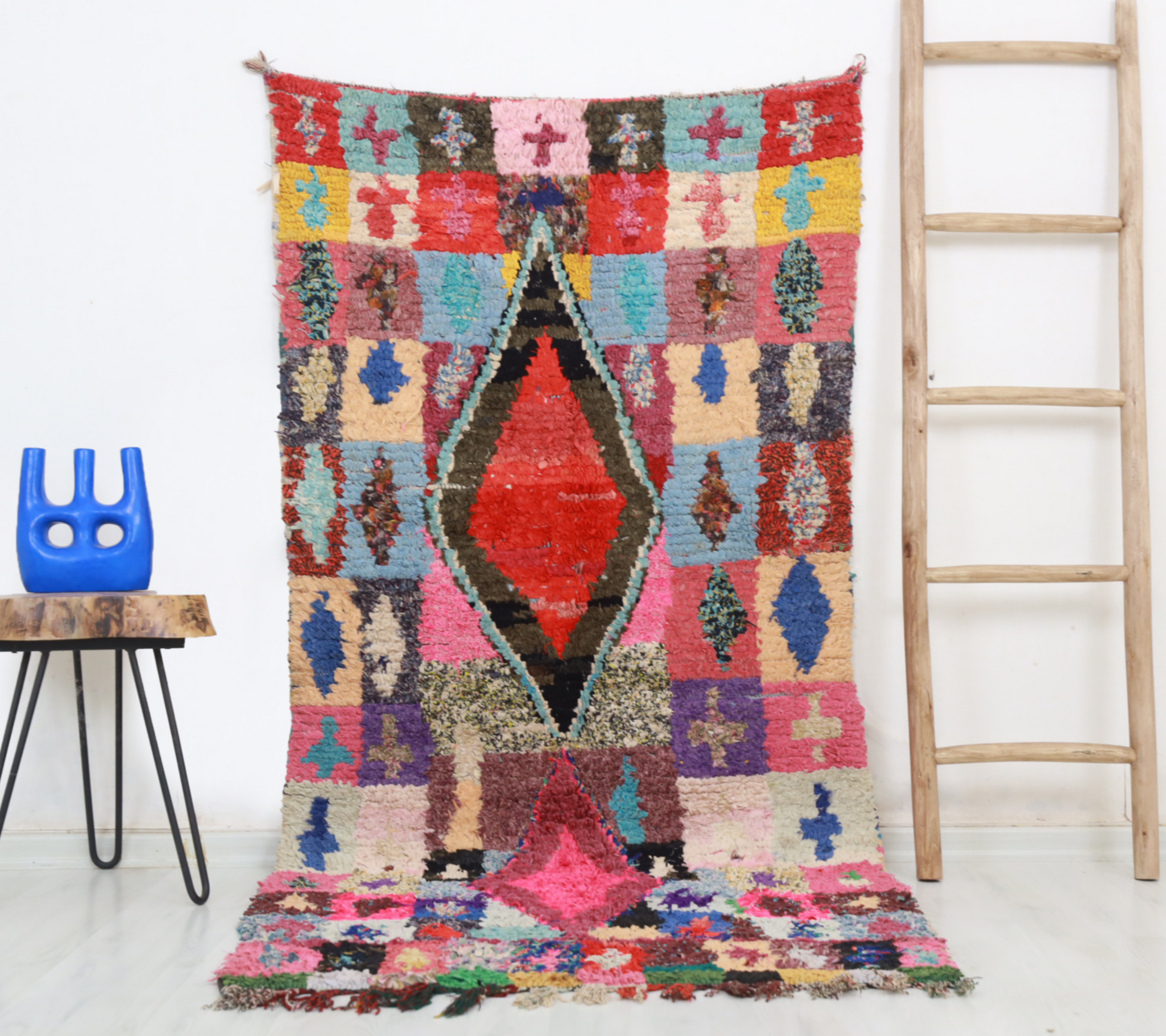 Azilal rugs boast abstract, painterly designs reminiscent of rugs from Ourika. What sets them apart is a vibrant color palette, achieved through the incorporation of cotton alongside wool..