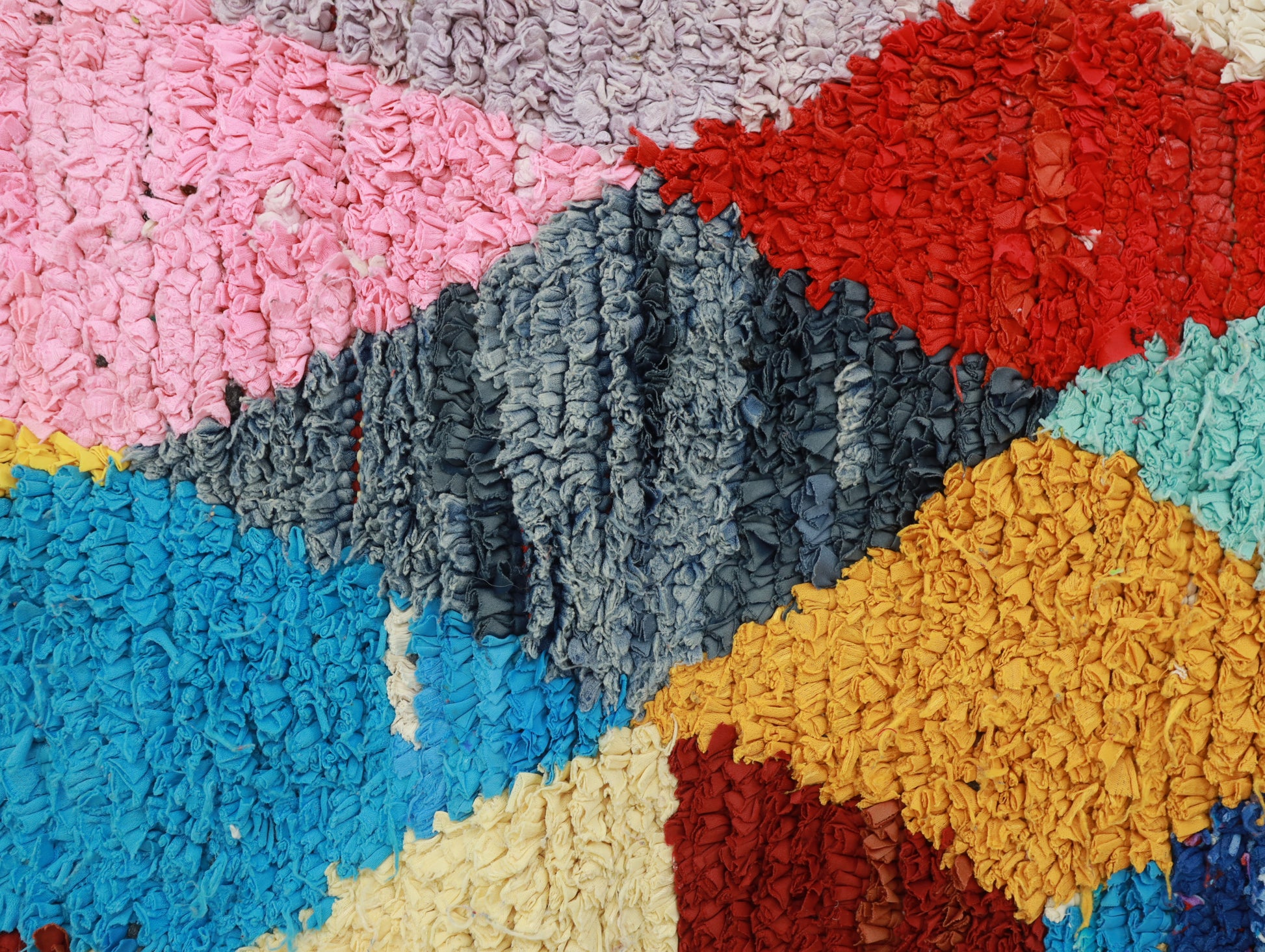 Azilal rugs boast abstract, painterly designs reminiscent of rugs from Ourika. What sets them apart is a vibrant color palette, achieved through the incorporation of cotton alongside wool..