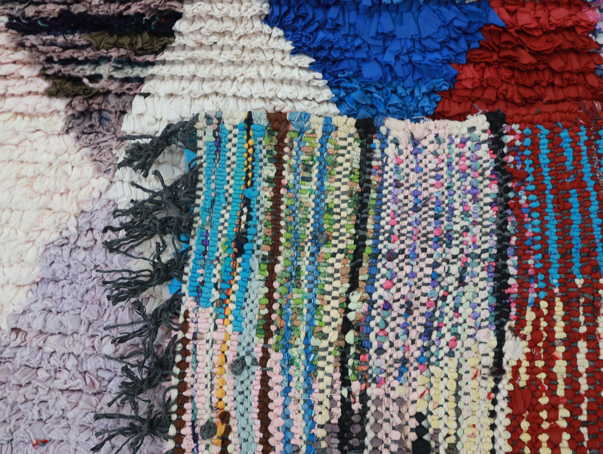An unparalleled vintage masterpiece, carefully crafted by Berber Tribes in the Boucherouite style using upcycled textiles. Measurements: 3'2" x 7'7" (97 cm x 234 cm),