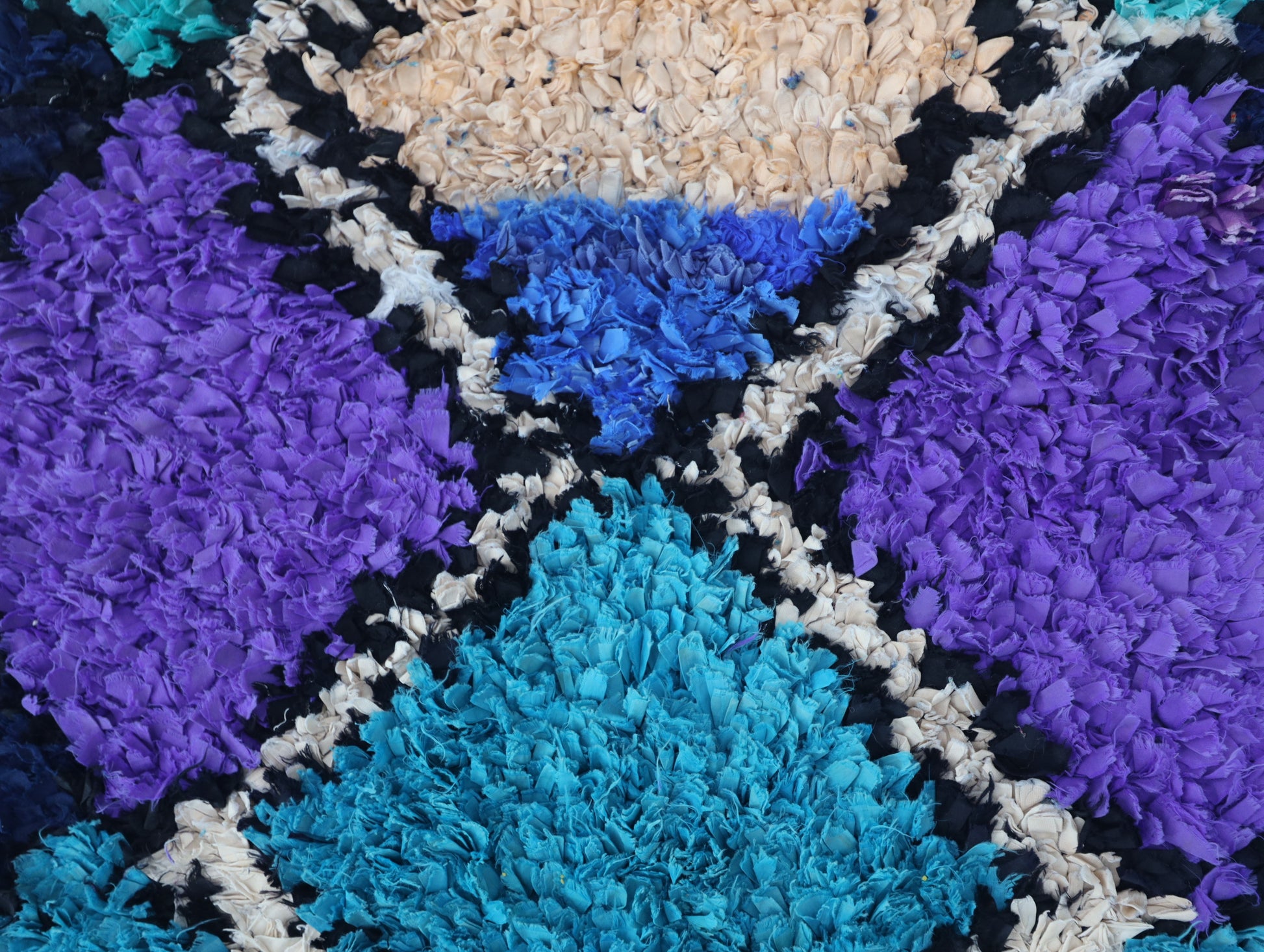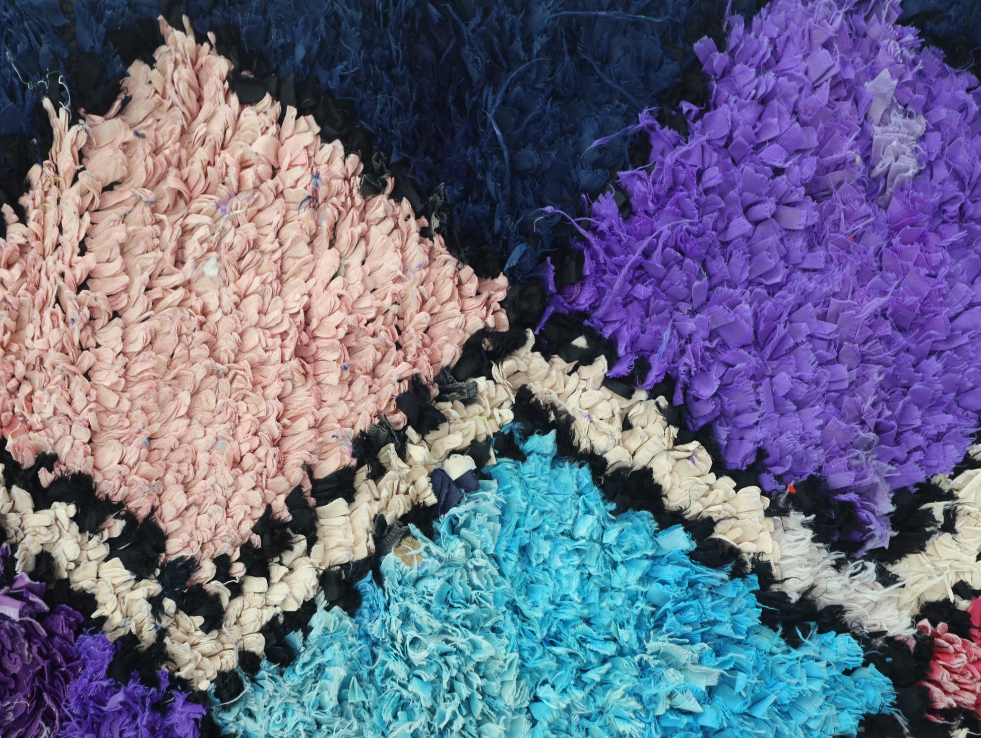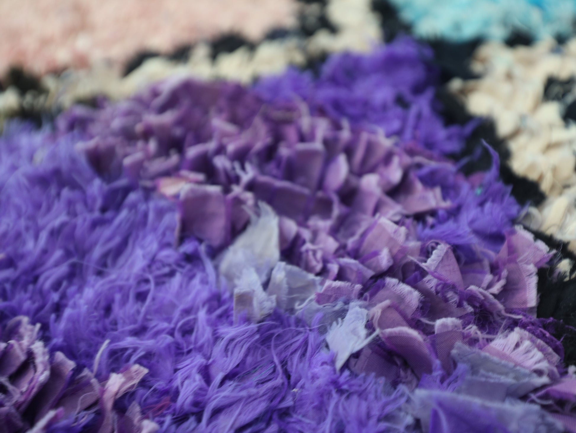 Azilal rugs boast abstract, painterly designs reminiscent of rugs from Ourika. What sets them apart is a vibrant color palette, achieved through the incorporation of cotton alongside wool..