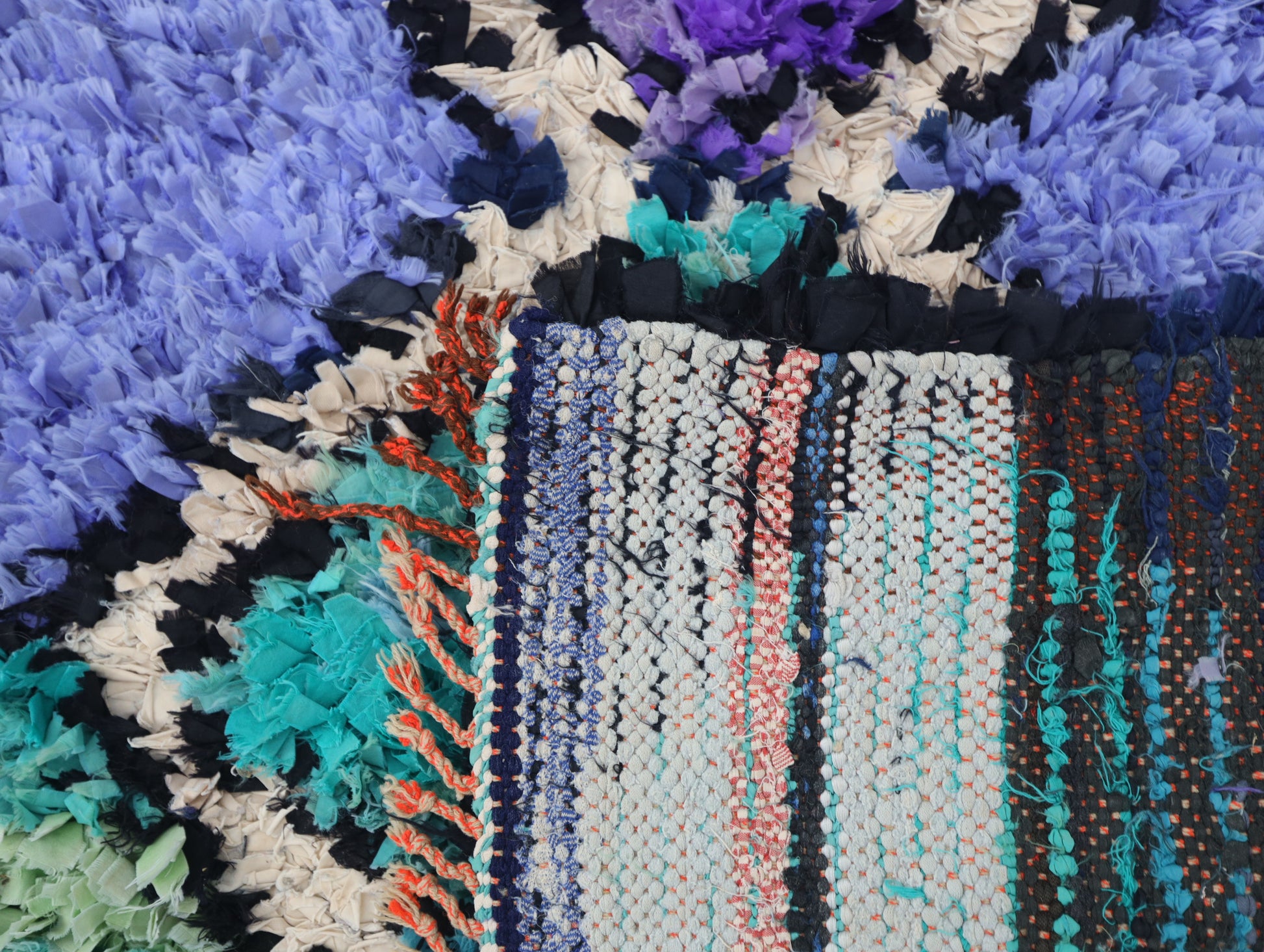 An unparalleled vintage masterpiece, carefully crafted by Berber Tribes in the Boucherouite style using upcycled textiles. Measurements: 2'5" x 8'2" (75 cm x 250 cm),