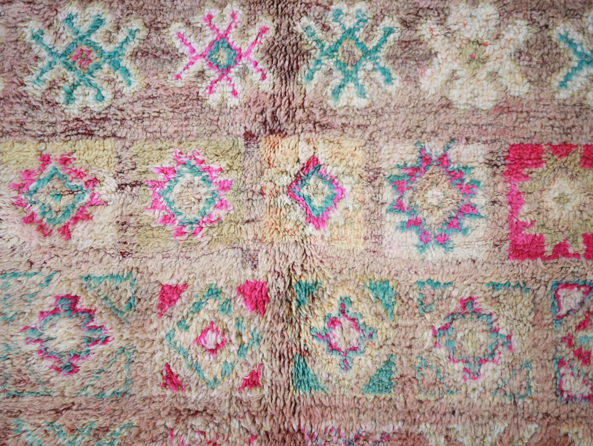 A truly unique vintage rug, meticulously hand-knotted by the Zemmour tribes from Morocco's Middle Atlas range. Size:  5'8" x9'3" (178 cm x 284 cm),