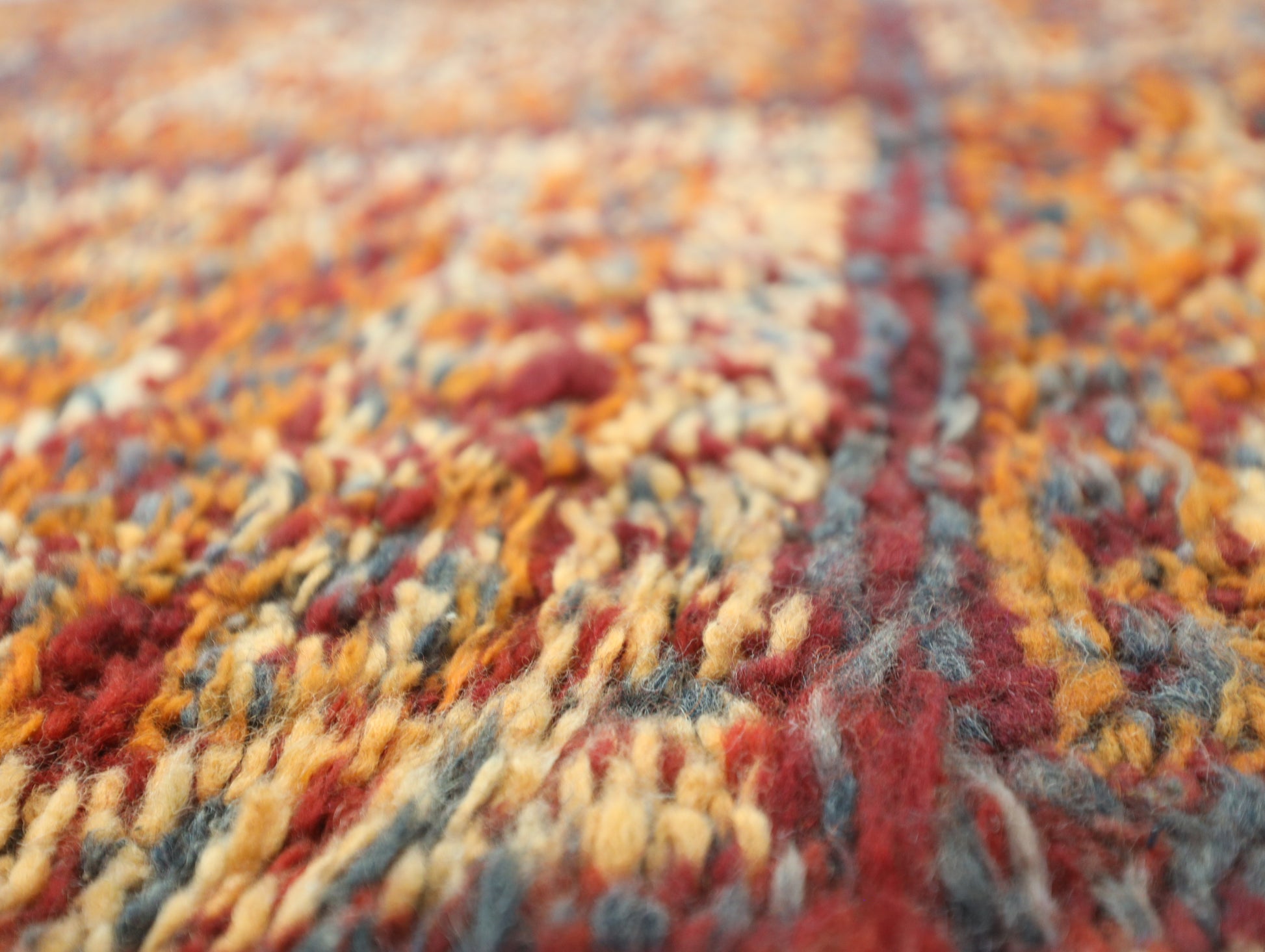 Locally sourced Moroccan wool produces a thick, strong pile with a soft feel underfoot. Having weathered time, this hand-processed wool exudes an untamed, nubby appearance, a testament to its journey through diverse environments.